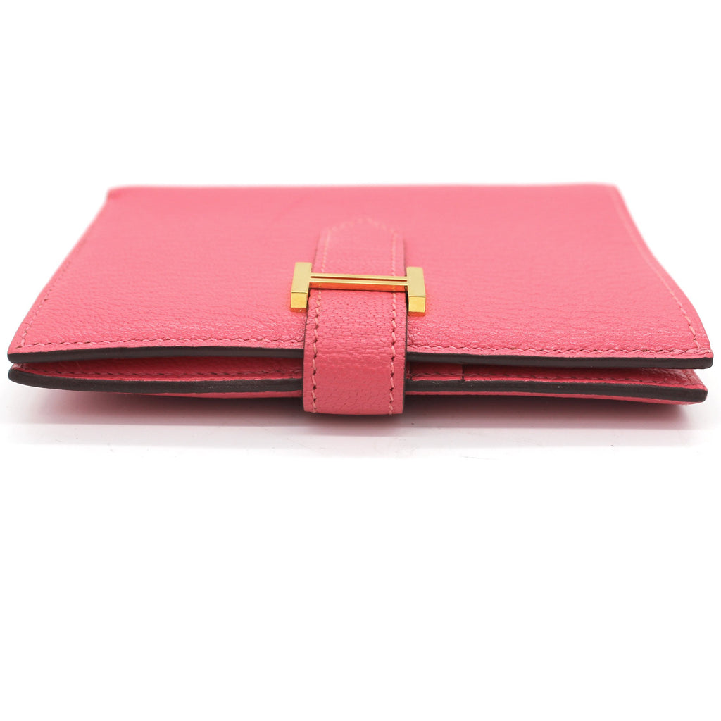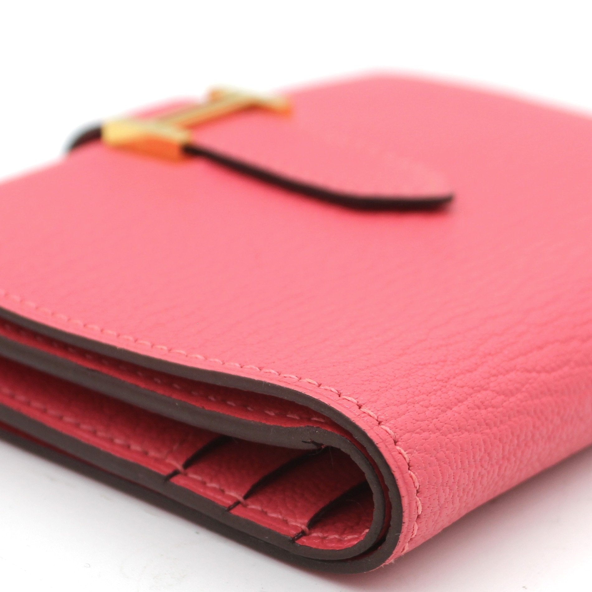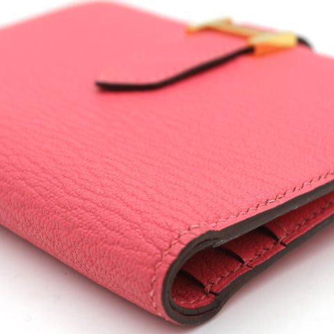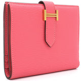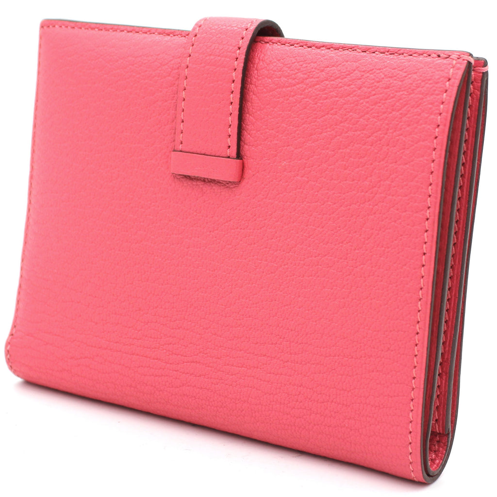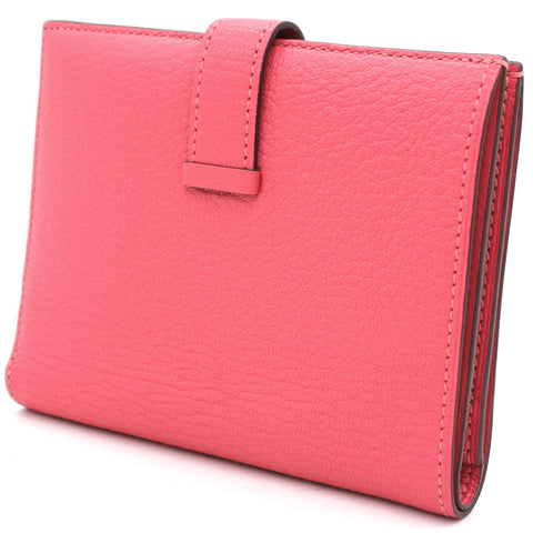 | Compact wallet in Mysore goatskin with 4 credit card slots, 4 pockets, zipped change purse and gold plated 'H' tab closure |