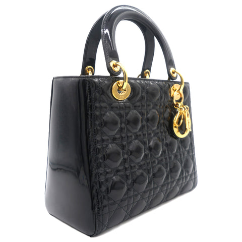 | The Lady Dior tote is a Dior creation that has gained recognition worldwide and is today a coveted bag that every fashionista craves to possess. This black tote has been crafted from leather and it carries the signature Cannage quilt. It is equipped with a fabric interior and two top handles. The gorgeous piece is complete with the classic Dior letter charms in gold. |