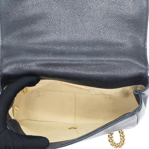Exterior Material: Black caviar exterior with a raised CC turnlock and a shoulder strap. Interior Material: Beige canvas lining with one main compartment and one zipped pocket. Accessories: Dust Bag; Serial Number: 24647915 Bought Year: 2017 |