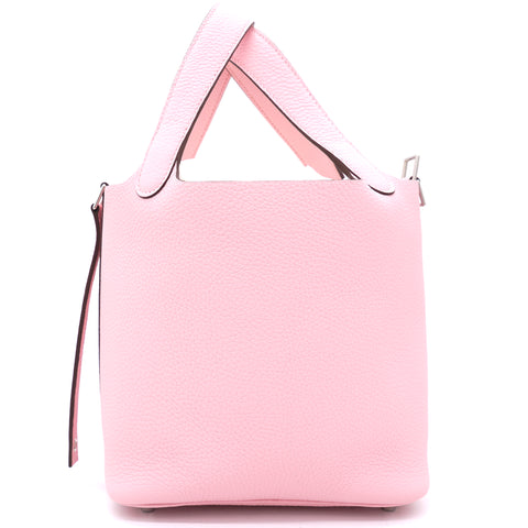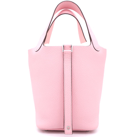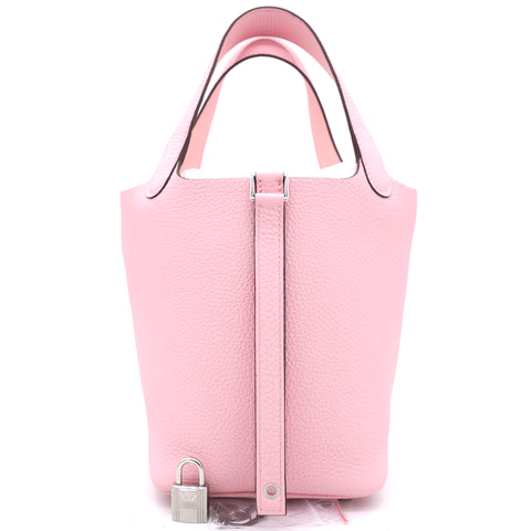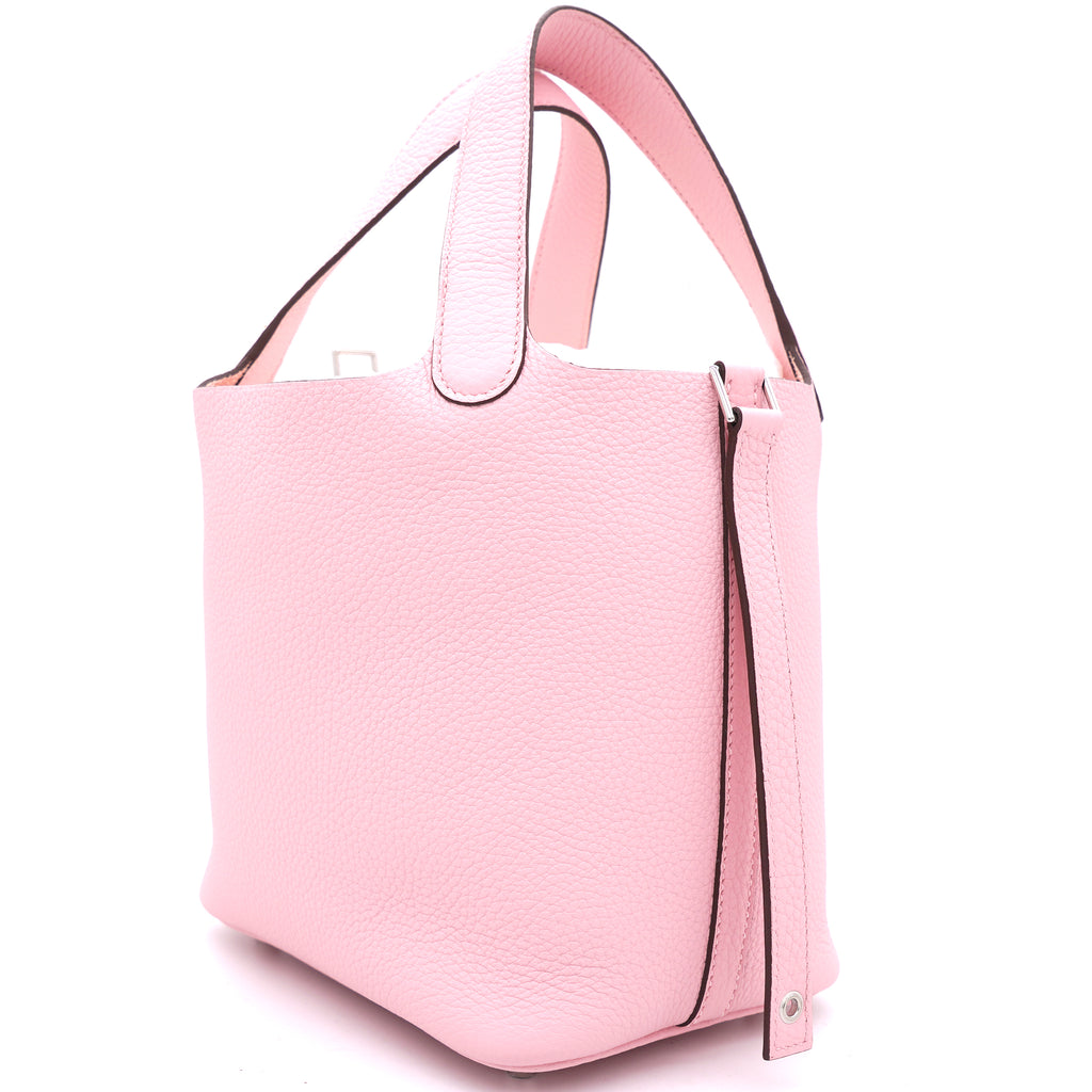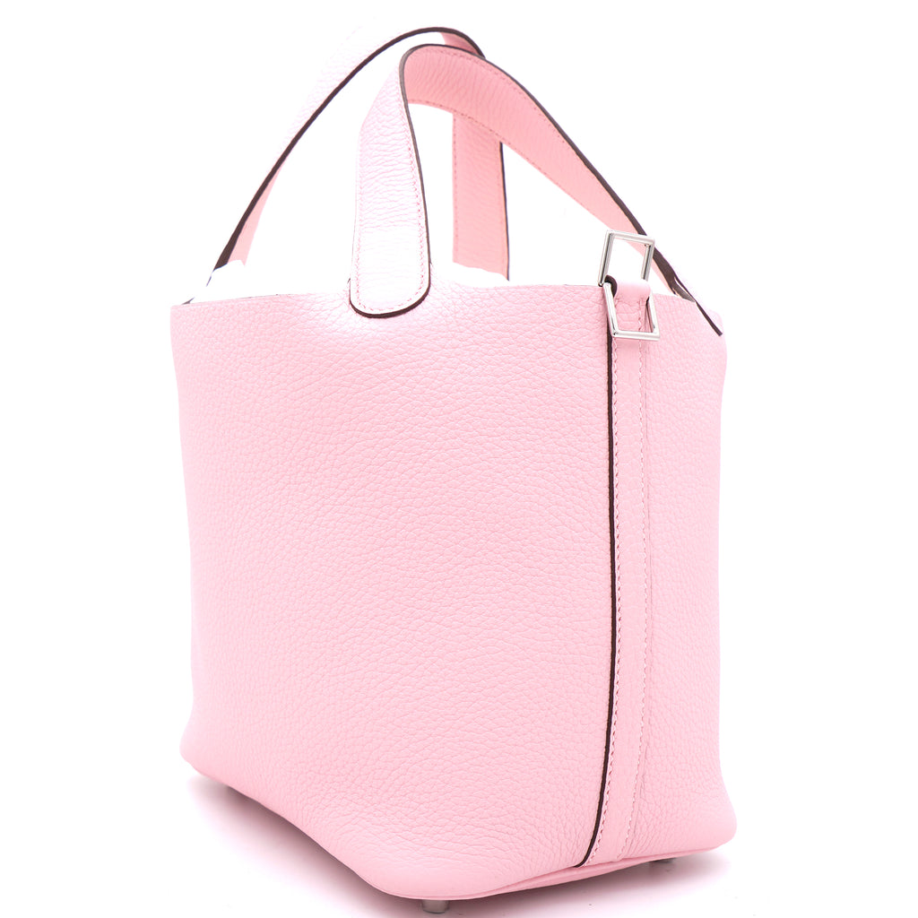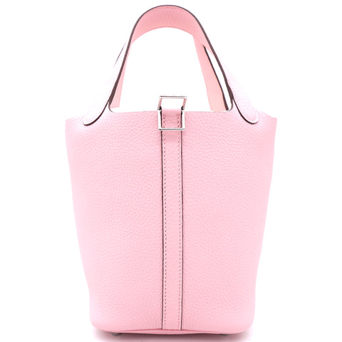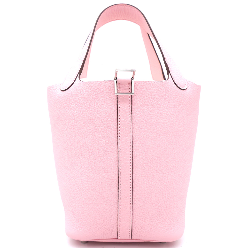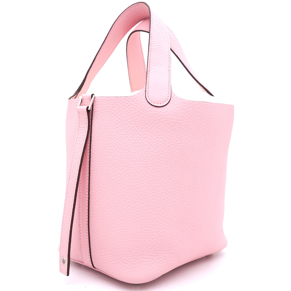 | Wonderfully crafted from Clemence leather, this Picotin from Hermes is a creation for people who love a perfect blend of luxury and style. It comes in Rose Sakura and it sits in a relaxed shape with two handles and a spacious leather interior. Armed with protective metal feet as a finishing touch, this bag is ideal for everyday usage. |