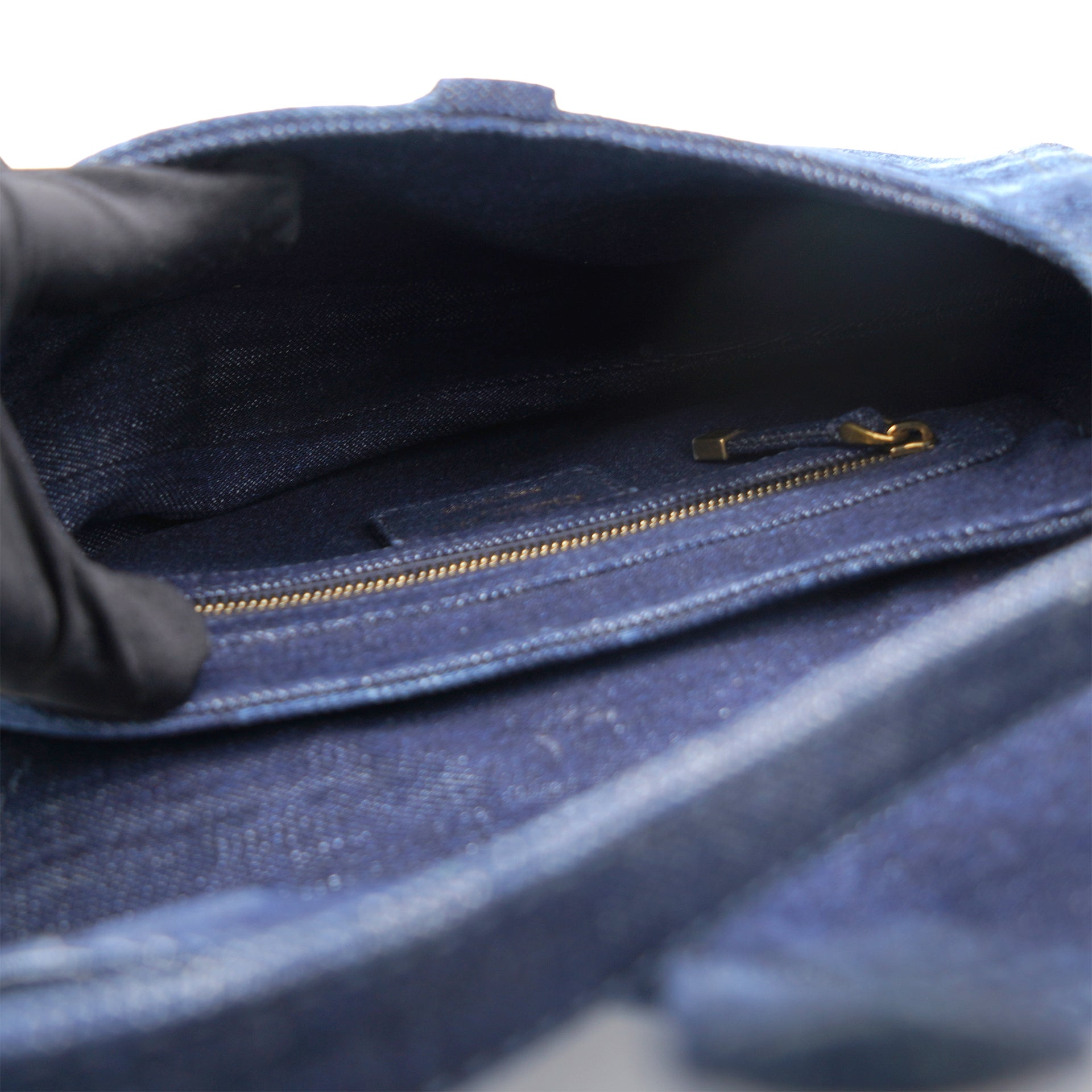 Material: Denim Lining: Denim Hardware: Gold-color Finish Metal Accessories: Dust Bag
