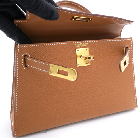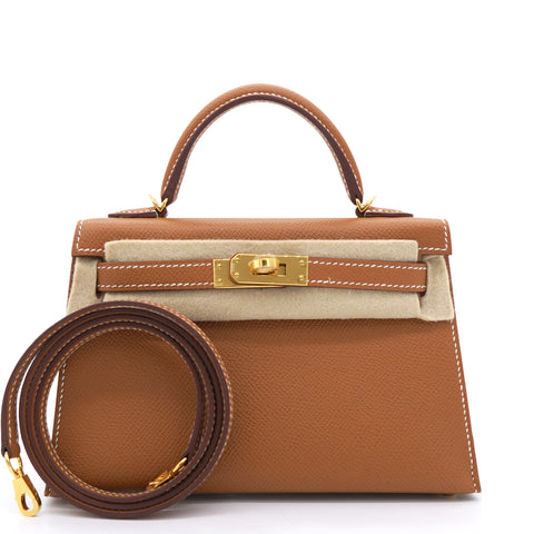 Gold Epsom Leather Gold Hardware Mini II Kelly Bag