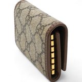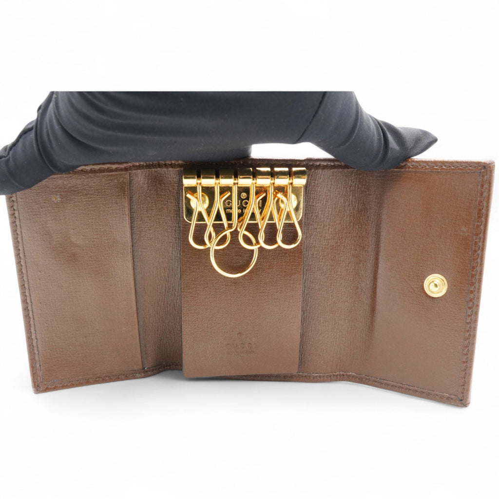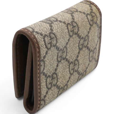 Crafted from GG Supreme canvas and accented with leather, this Gucci key case embodies timeless luxury. Featuring the iconic Horsebit detail, it effortlessly blends classic design with modern functionality, providing a refined way to organize keys. A stylish accessory that enhances any collection with its exquisite craftsmanship.