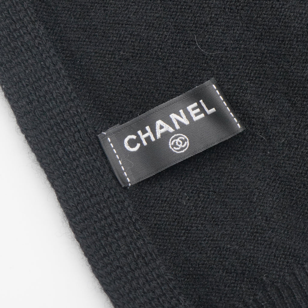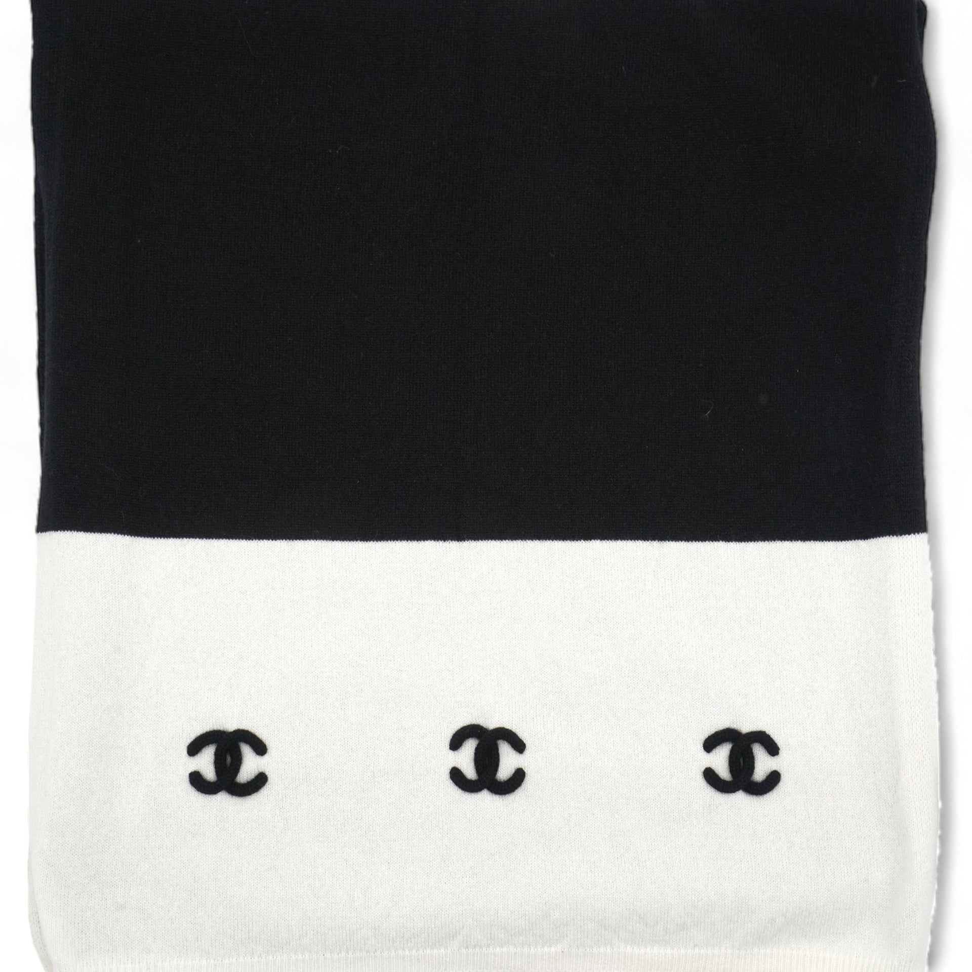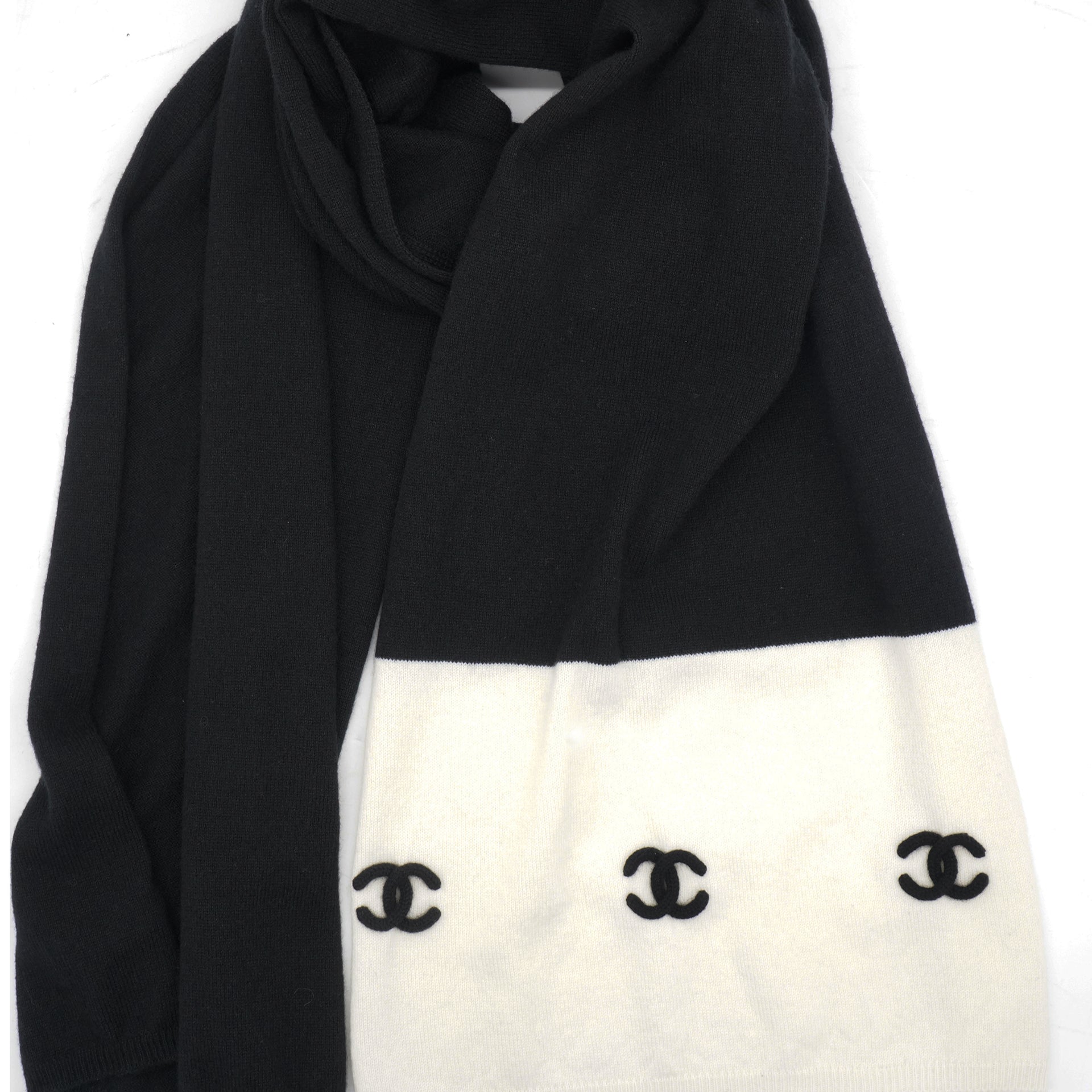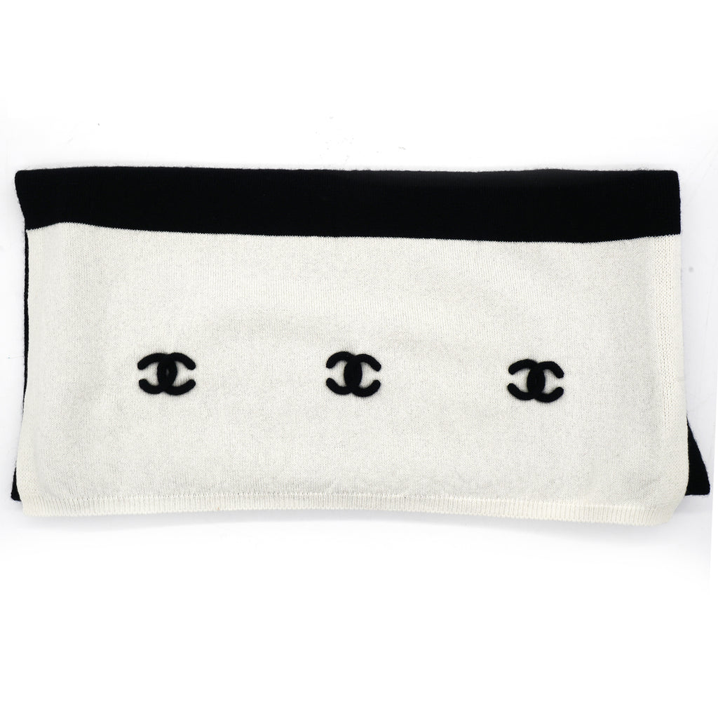 | Made from high-quality material, this CHANEL scarf features a classic black and white design, perfect for any outfit. Its knitted texture provides warmth and comfort while adding a touch of luxury to your wardrobe. Stay stylish and cozy with this versatile accessory. |