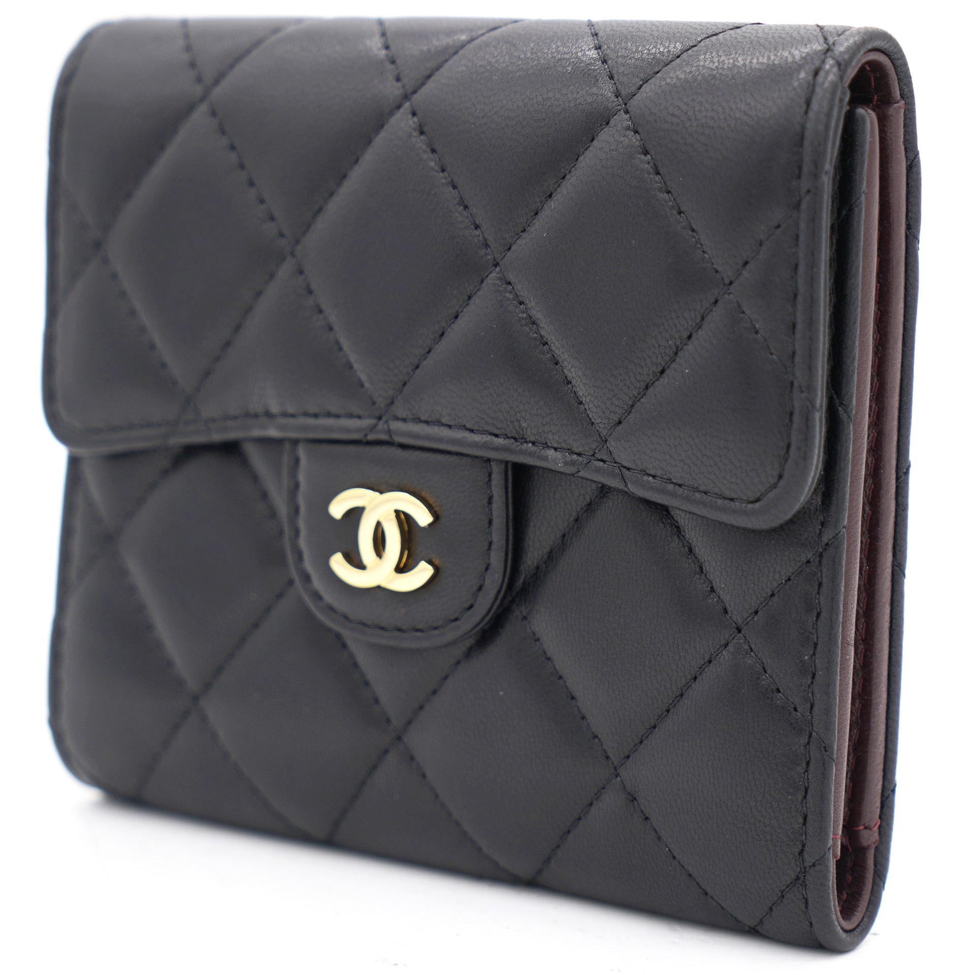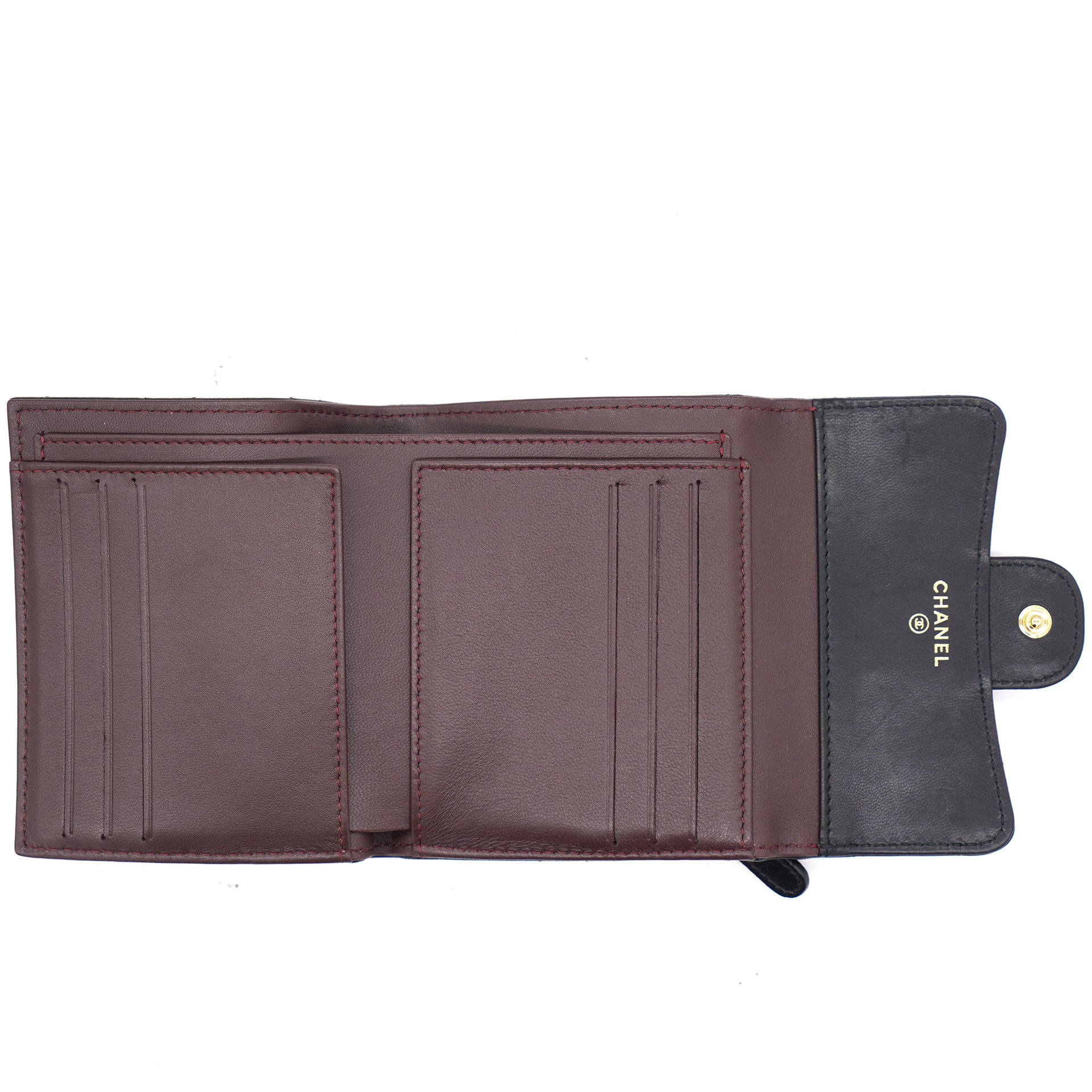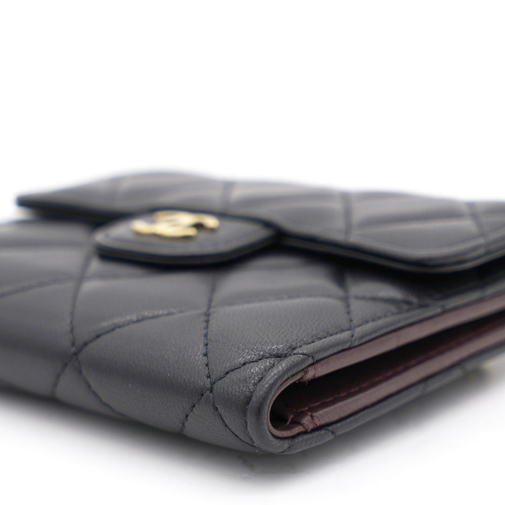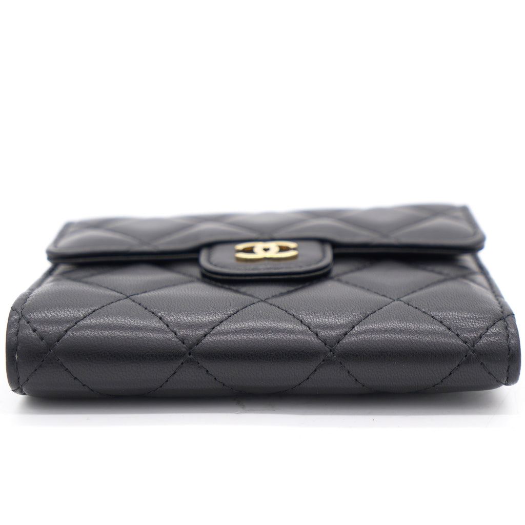 | This gorgeous wallet from the house of Chanel is crafted from leather and carries the signature quilted pattern all over the exterior. Styled with a CC-adorned flap, the wallet is equipped with card slots and a pocket to carry your necessities. Complete with a rear zipped pocket and silver-tone hardware, this wallet is definitely chic and posh. |