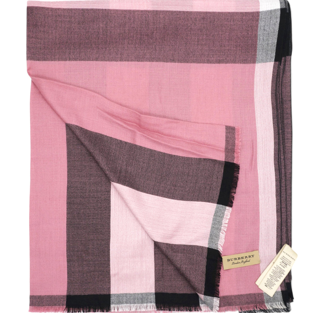 Expertly crafted with 100% cashmere, this stylish scarf boasts a bold giant check pattern on a shimmering pink background. Keep warm in luxurious comfort and make a fashion statement with this Cashmere Giant Check Scarf in Ash Rose.