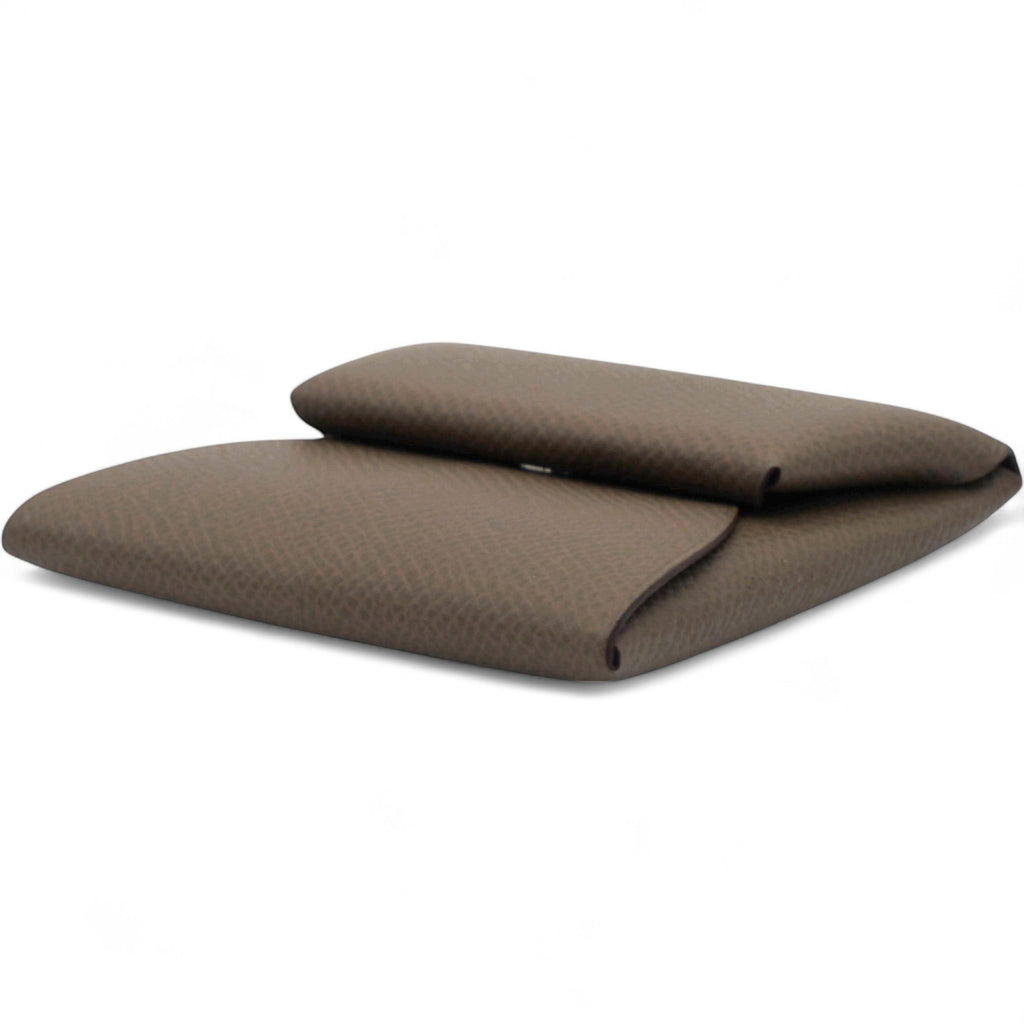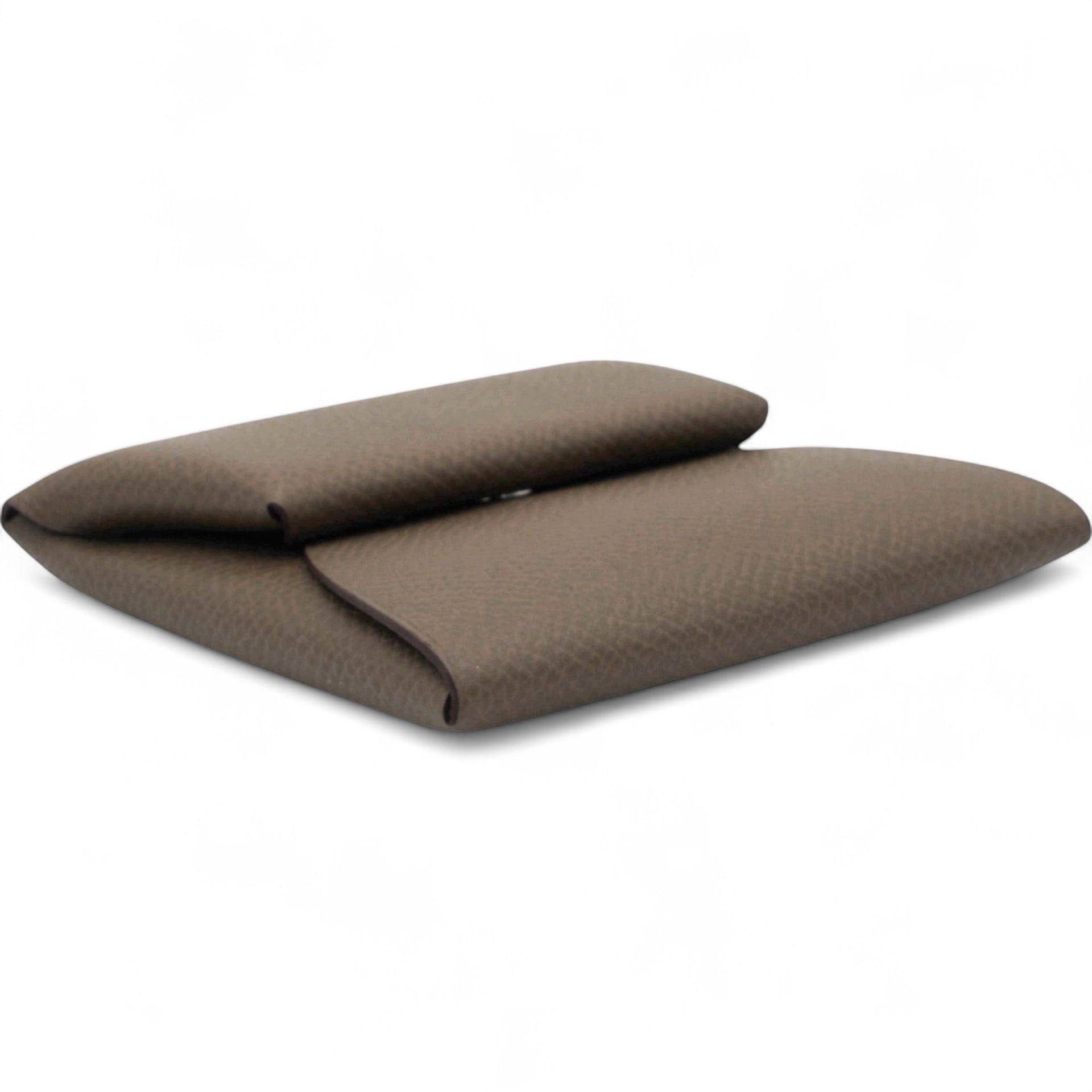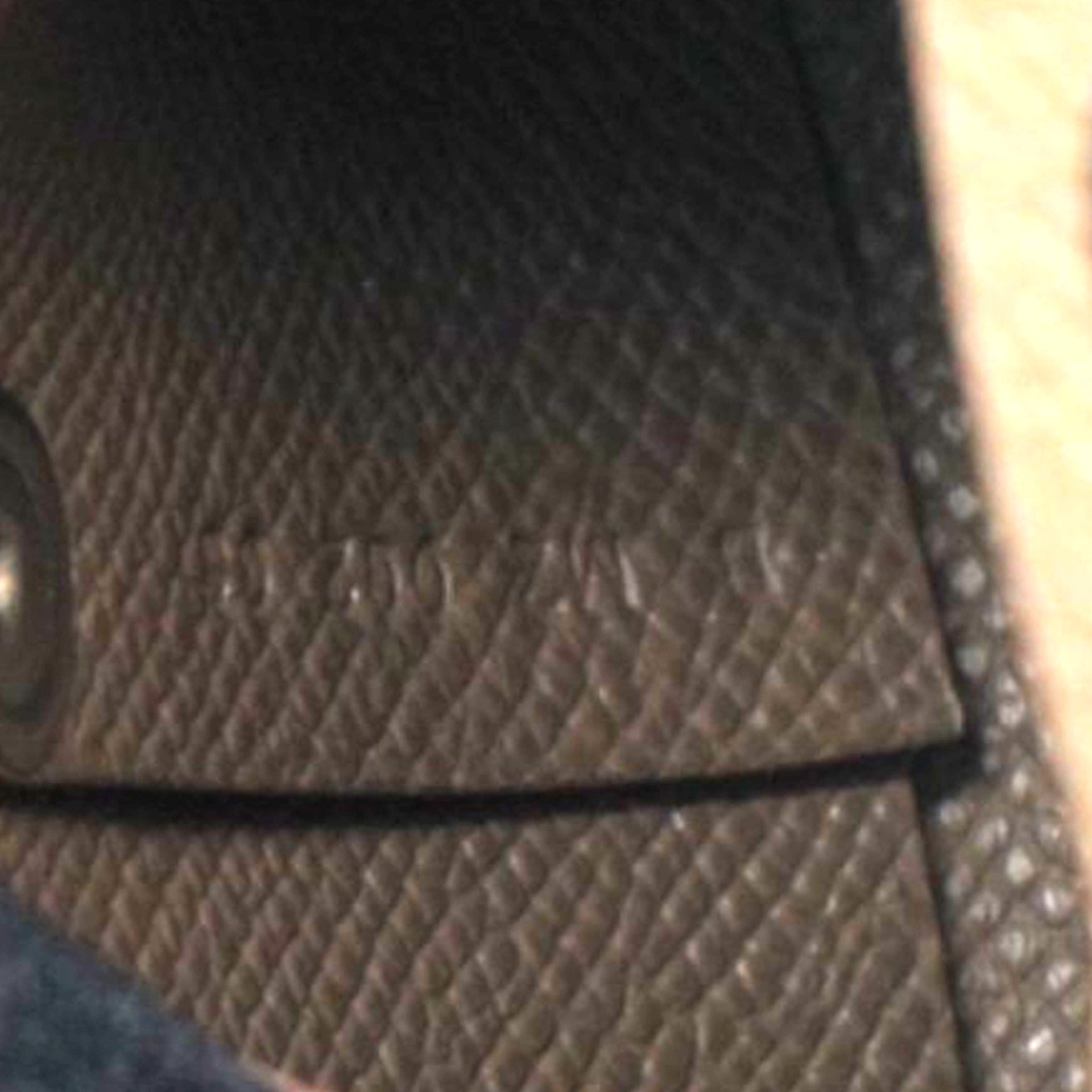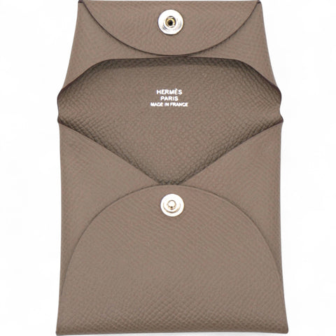 | This chic coin purse is crafted of grained epsom calfskin leather in grey and opens with a snap closure to a matching interior. |