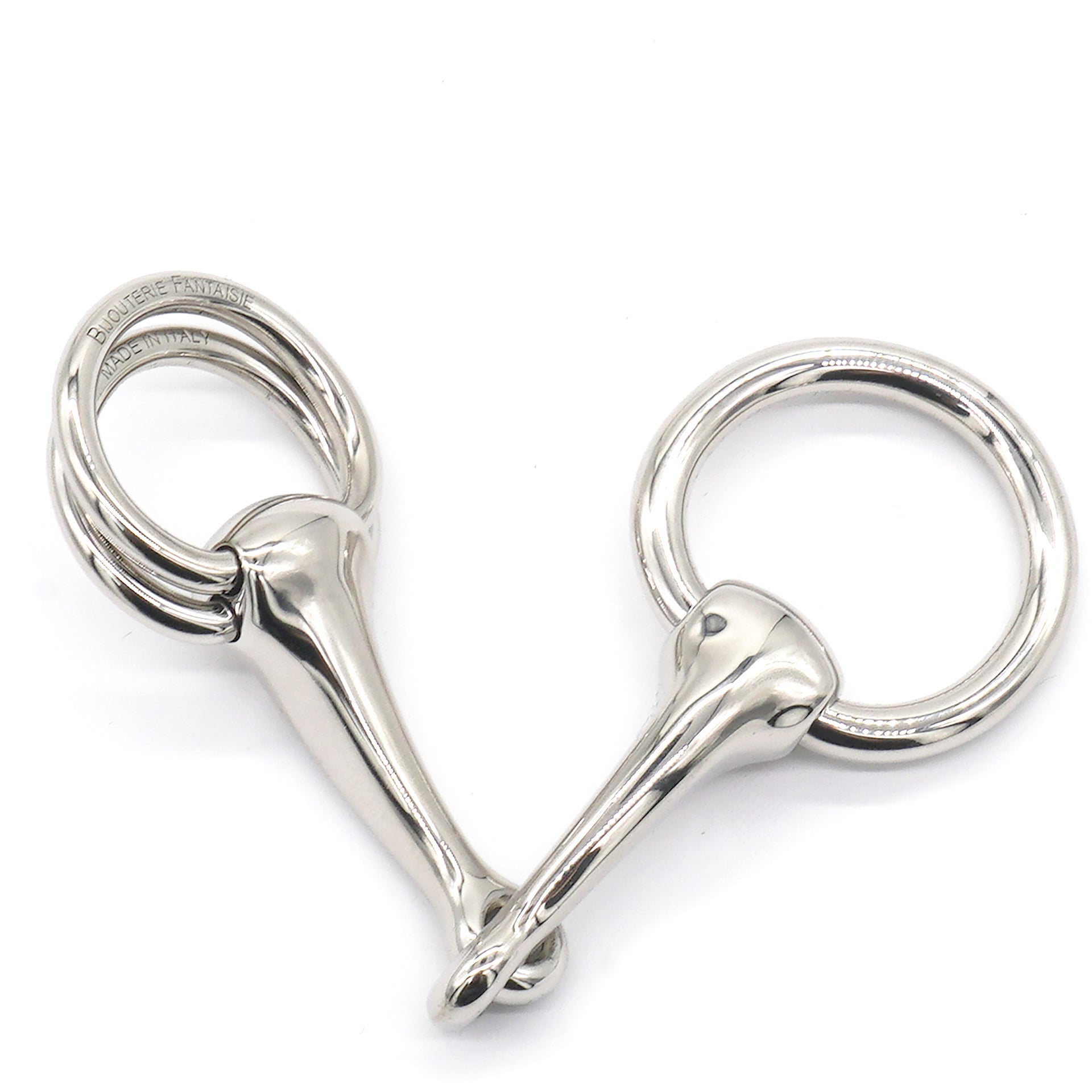 | This elegant scarf ring is crafted of palladium and features a horse riding bit detail. This is a marvelous embellishment holder for your scarf only from Hermes! |