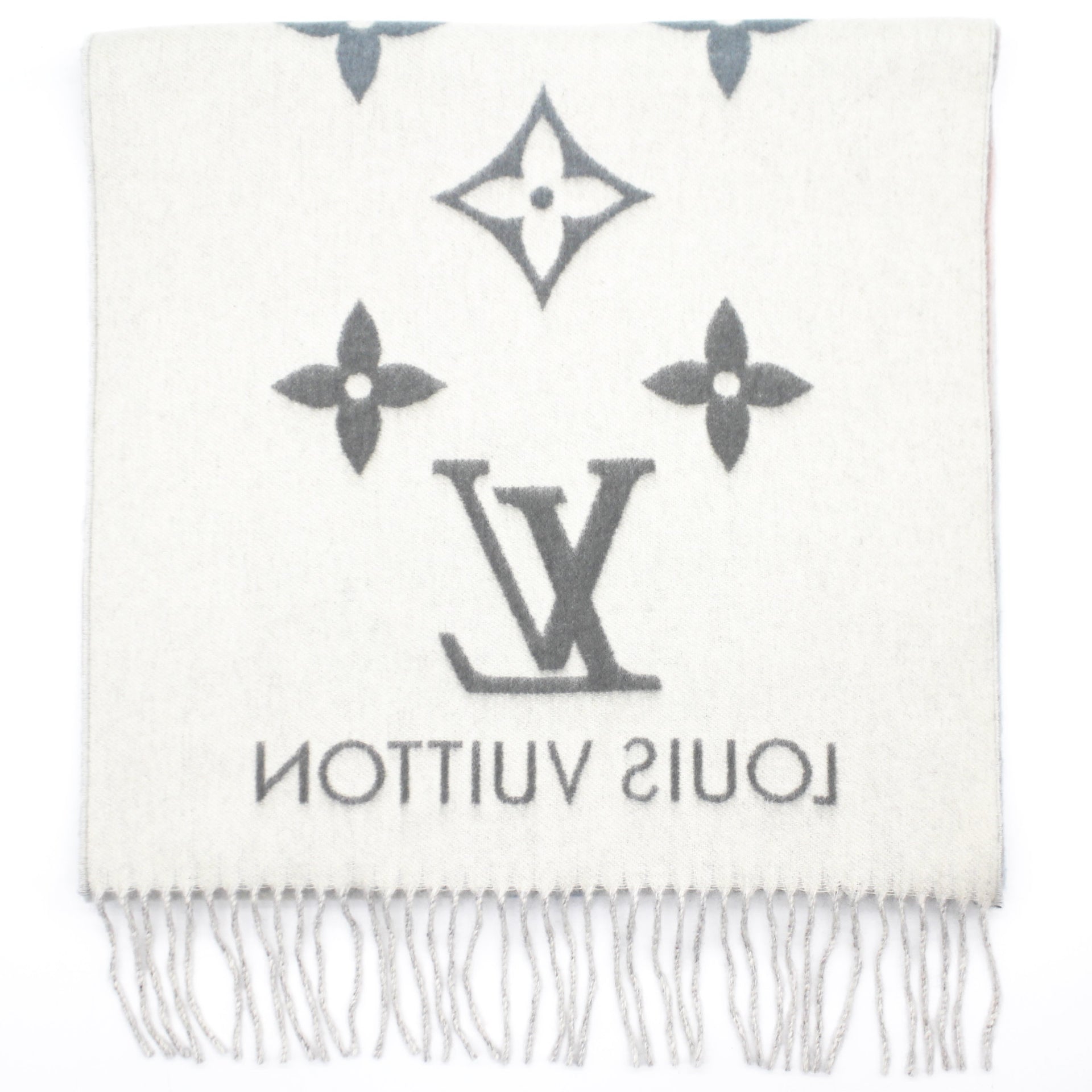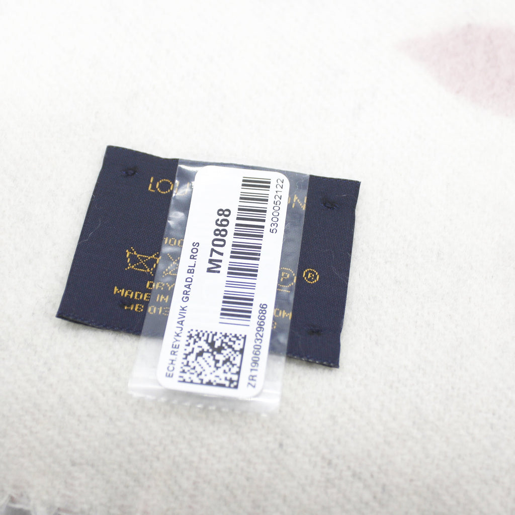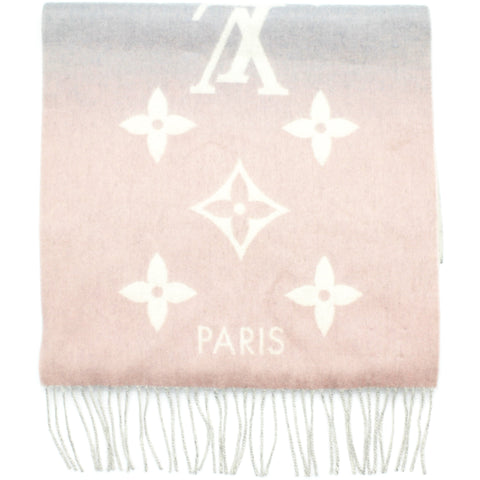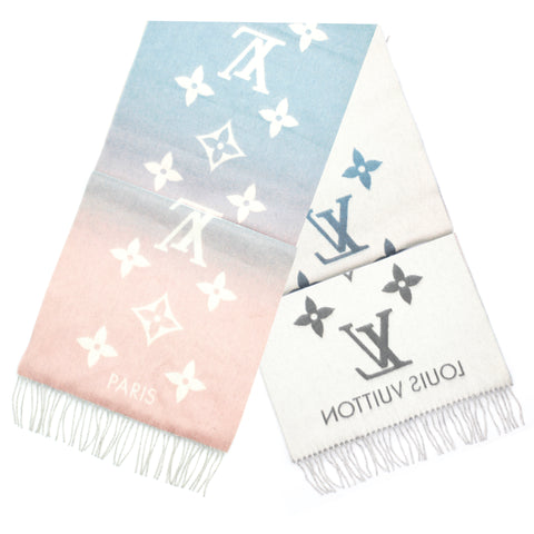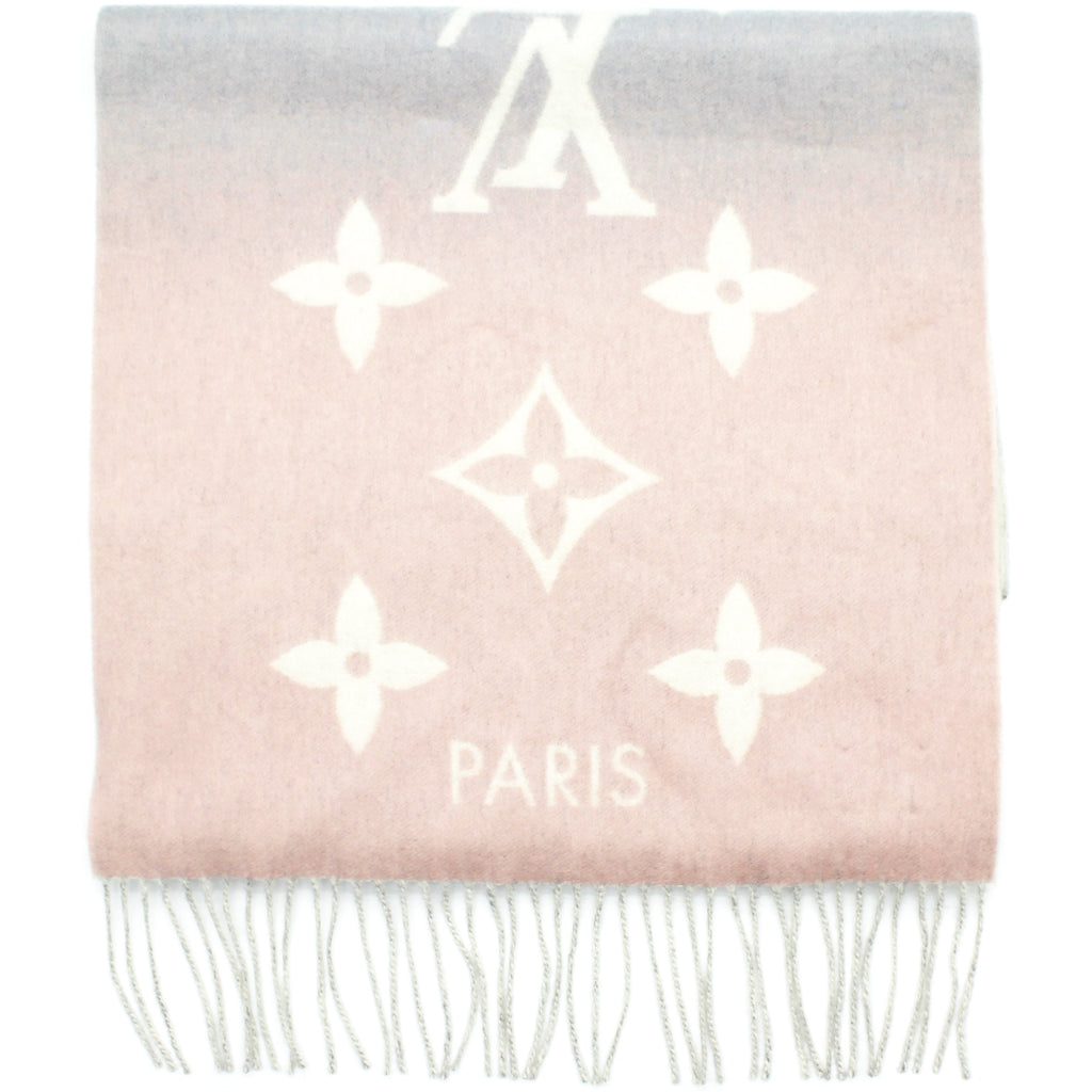 | A variation on a classic Louis Vuitton design, the Reykjavik Gradient scarf features a refined gradation effect in two feminine colorways: pastel pink and blue or easy to match grey and black. Soft and warm in pure cashmere, this sophisticated scarf is woven using a jacquard technique to create a large-scale version of the iconic Monogram pattern. |