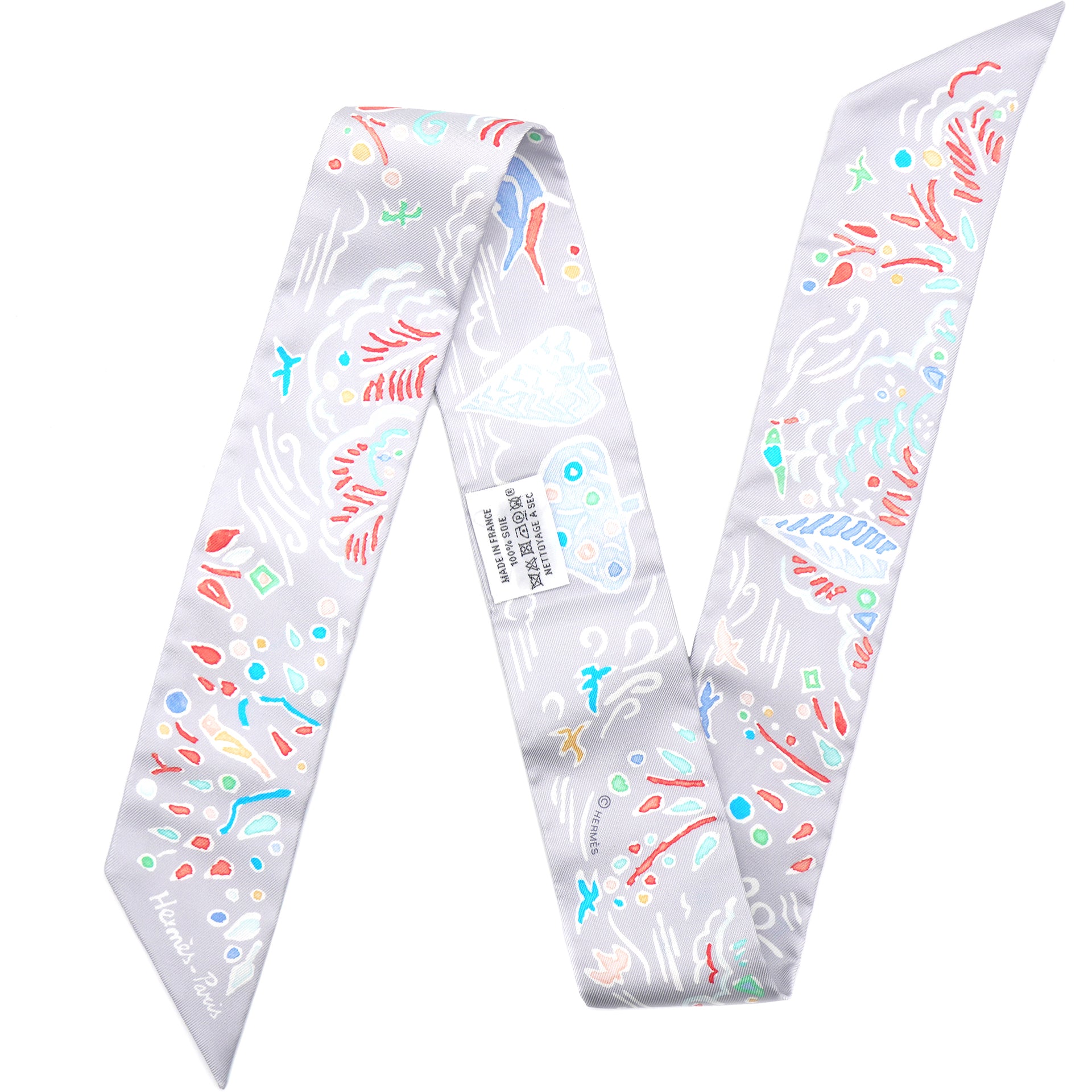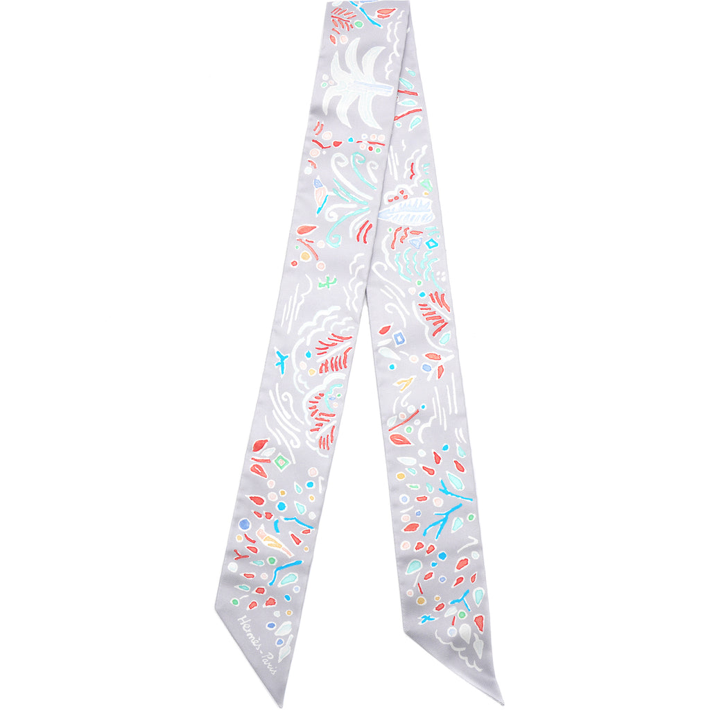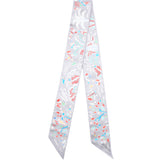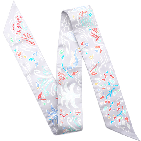 | This scarf is the thin Twilly style, which allows many use, such as wrapping it around your head or tying it onto your favorite Hermes bag. Perfect as a gift for yourself or a friend! |