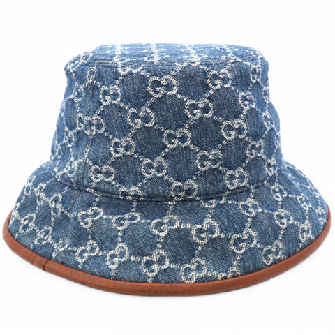 Washed Jacquard Denim Nappa GG Monogram Oscar Bucket Hat Denim Cuir 58/M