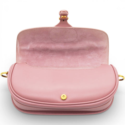 | The Bobby East West crossbody bag features a leather body, a detachable and adjustable flat leather shoulder strap, a front flap with buckle closure, an exterior back slip pocket, and an interior slip pocket. |