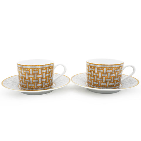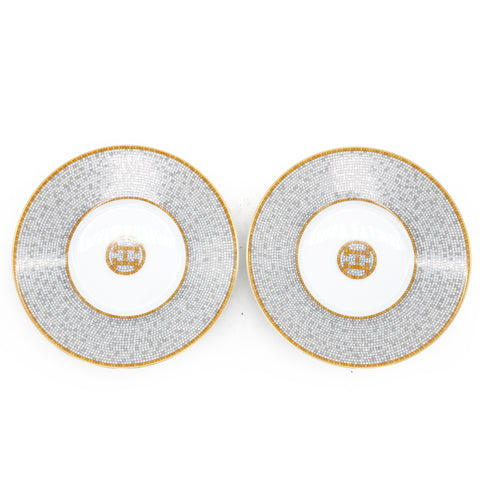 | Decorative mosaics are screen-printed and applied by hand using 24-carat platinum tiles. Benoit Pierre Emery's design and geometric pattern in the Mosaique au 24 platinum collection reflects the original decor of 24 Faubourg Saint-Honore in Paris |