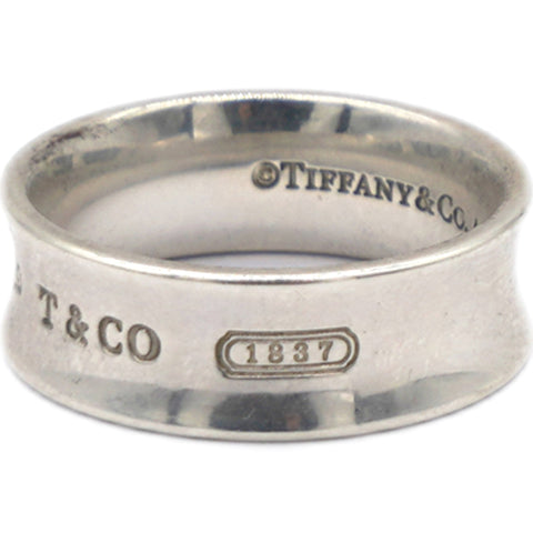 This stunning ring is crafted of lovely sterling silver with a concave exterior and the usual markings of “Tiffany 1837.” This is a marvelous Tiffany & Co classic that will always be a classic only from Tiffany & Co.