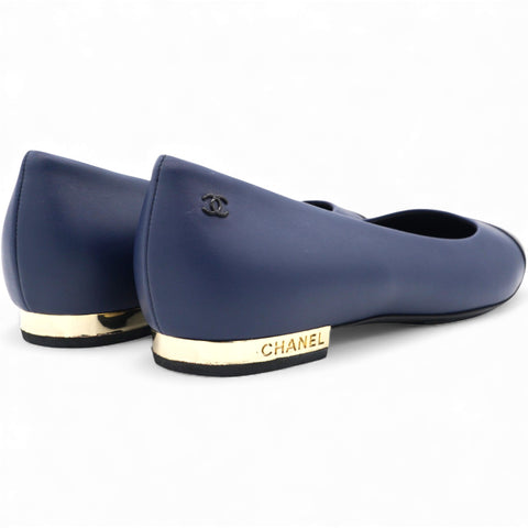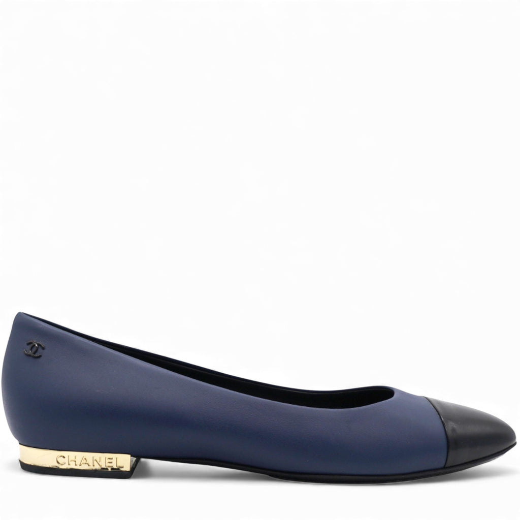 Timeless Chanel Cap Toe Flats in Blue and Black Leather Size38.5