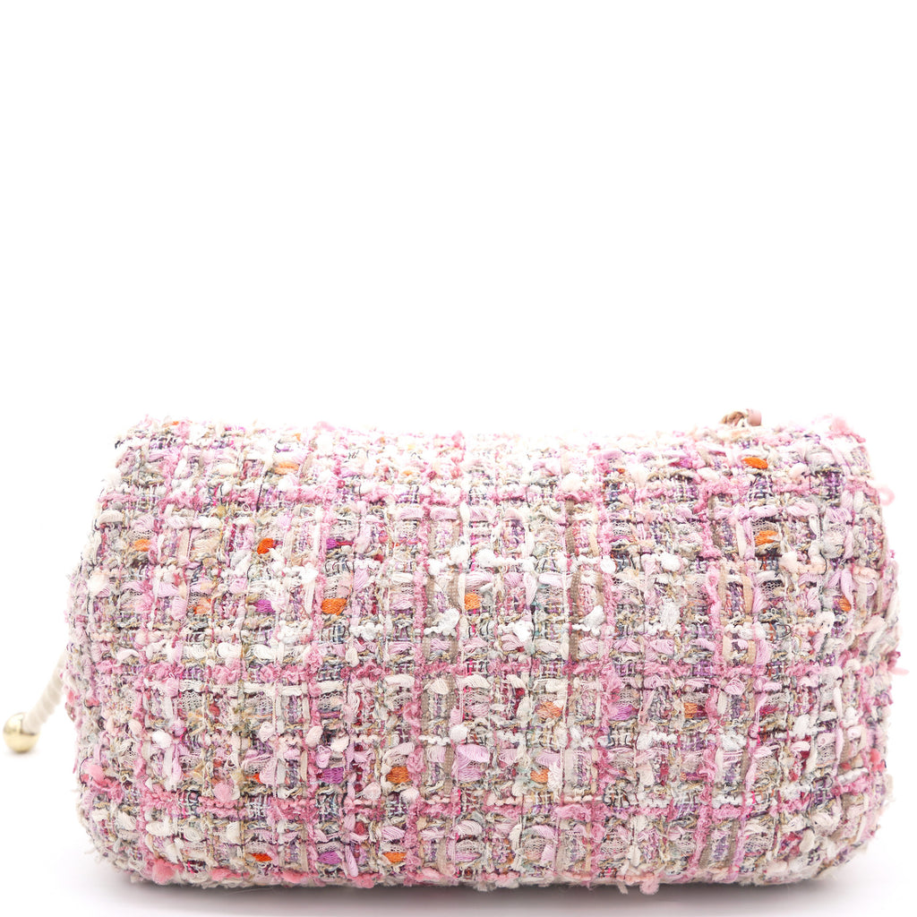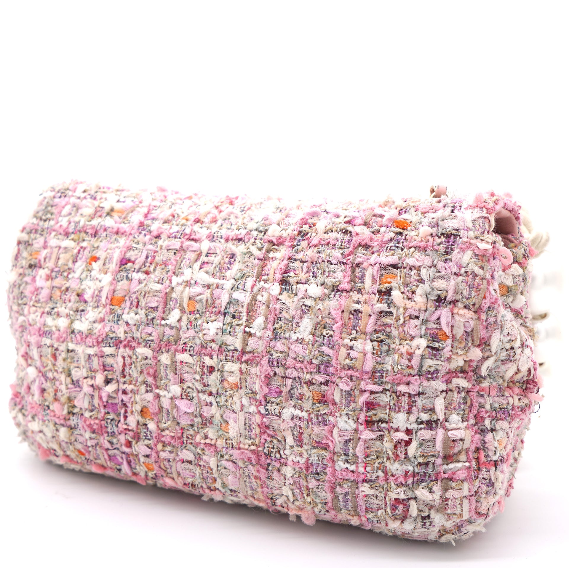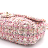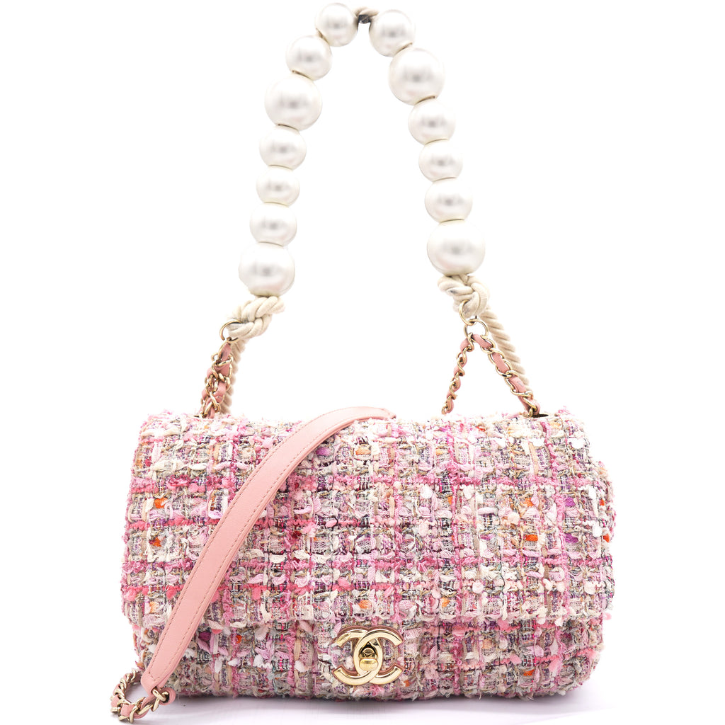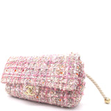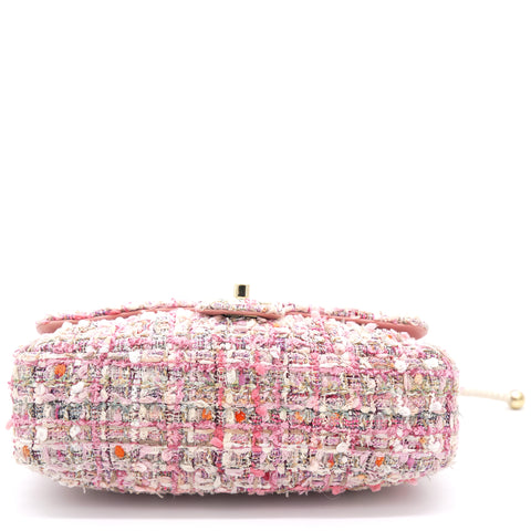 2019 Pink Tweed Fabric & Pearls Classic Single Flap Bag