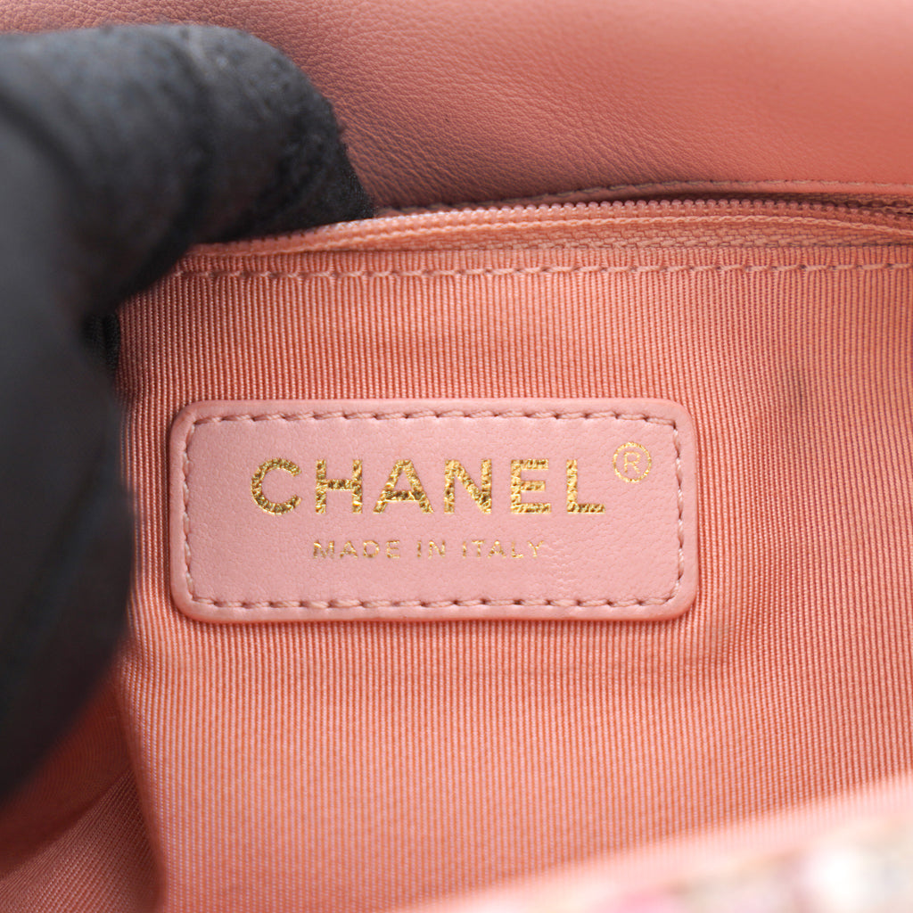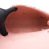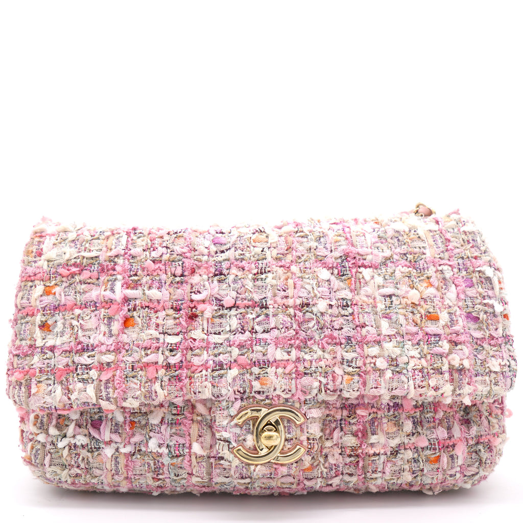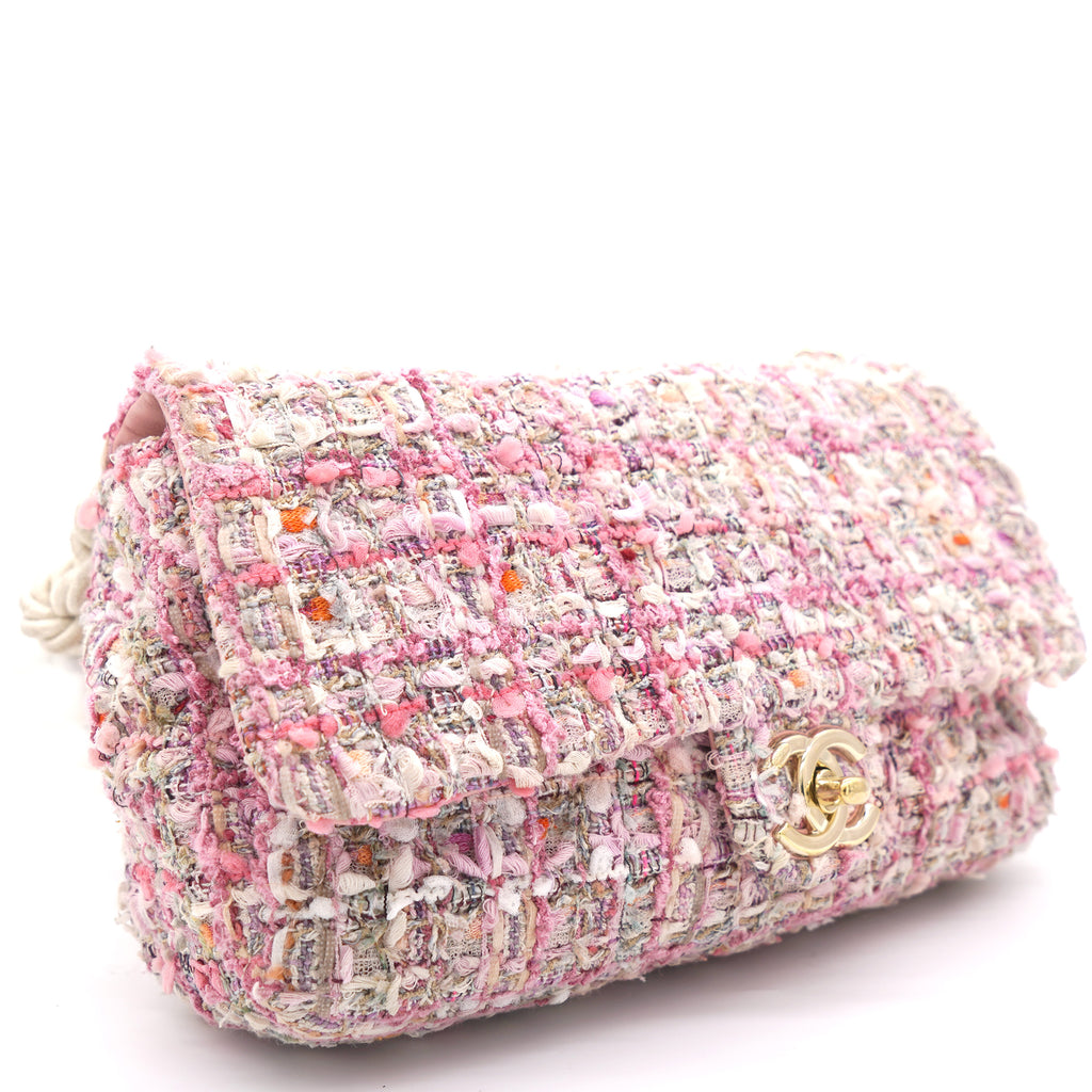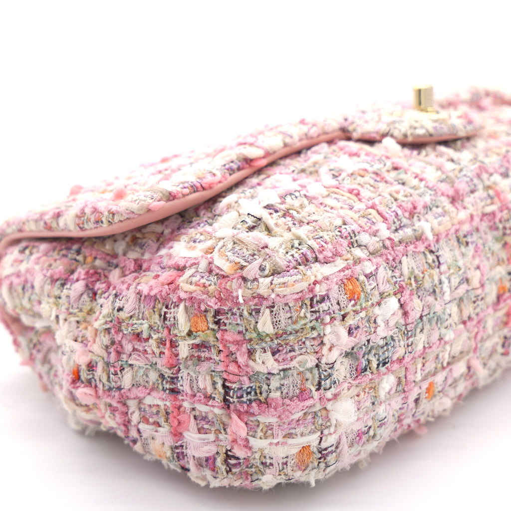 2019 Pink Tweed Fabric & Pearls Classic Single Flap Bag