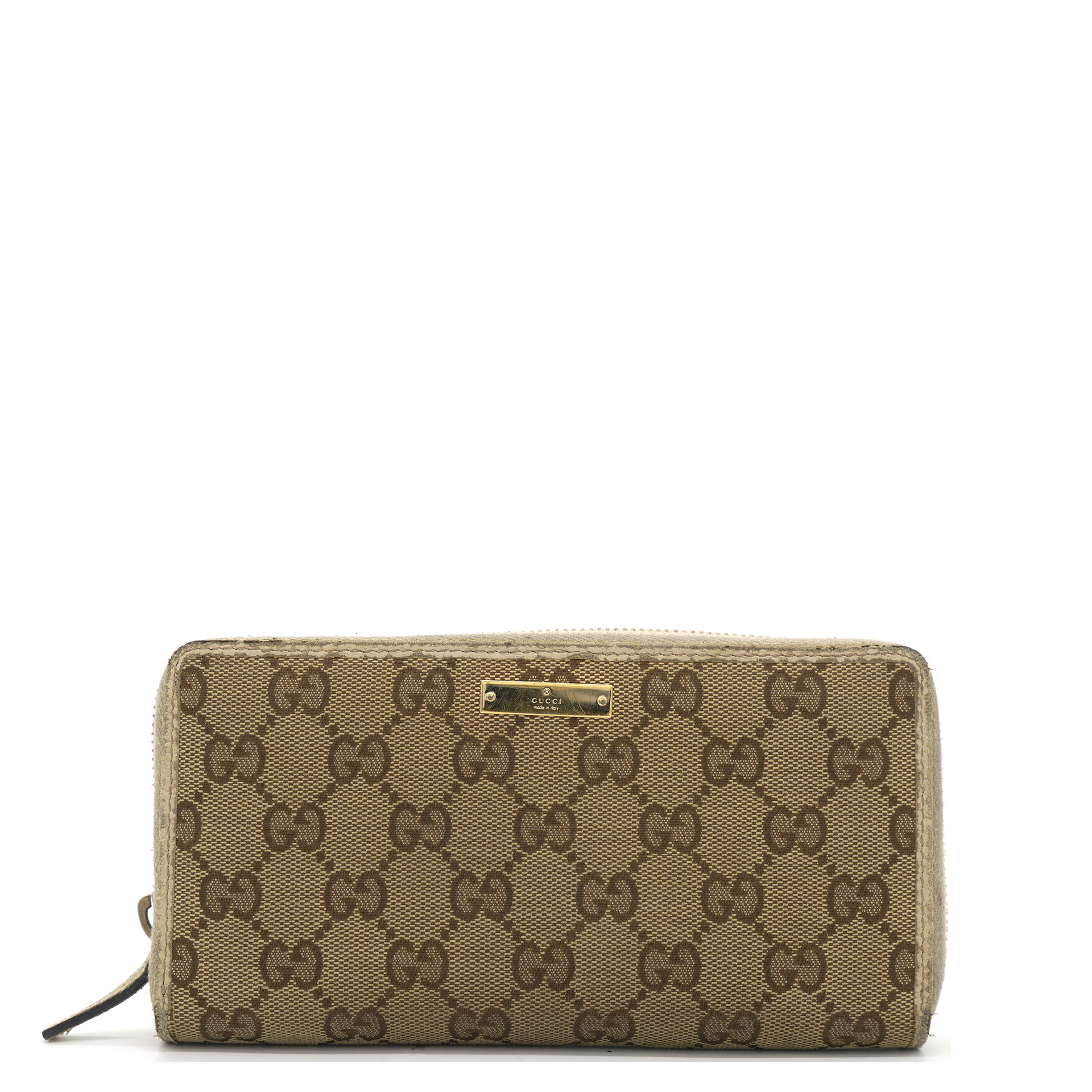 | Suave and stylish, this French wallet from Gucci effortlessly fits in your essentials. Crafted from GG Supreme canvas & leather, it comes in lovely shades of beige and white. It has a front flap, a bi-fold silhouette, and a well-designed leather & fabric interior. |