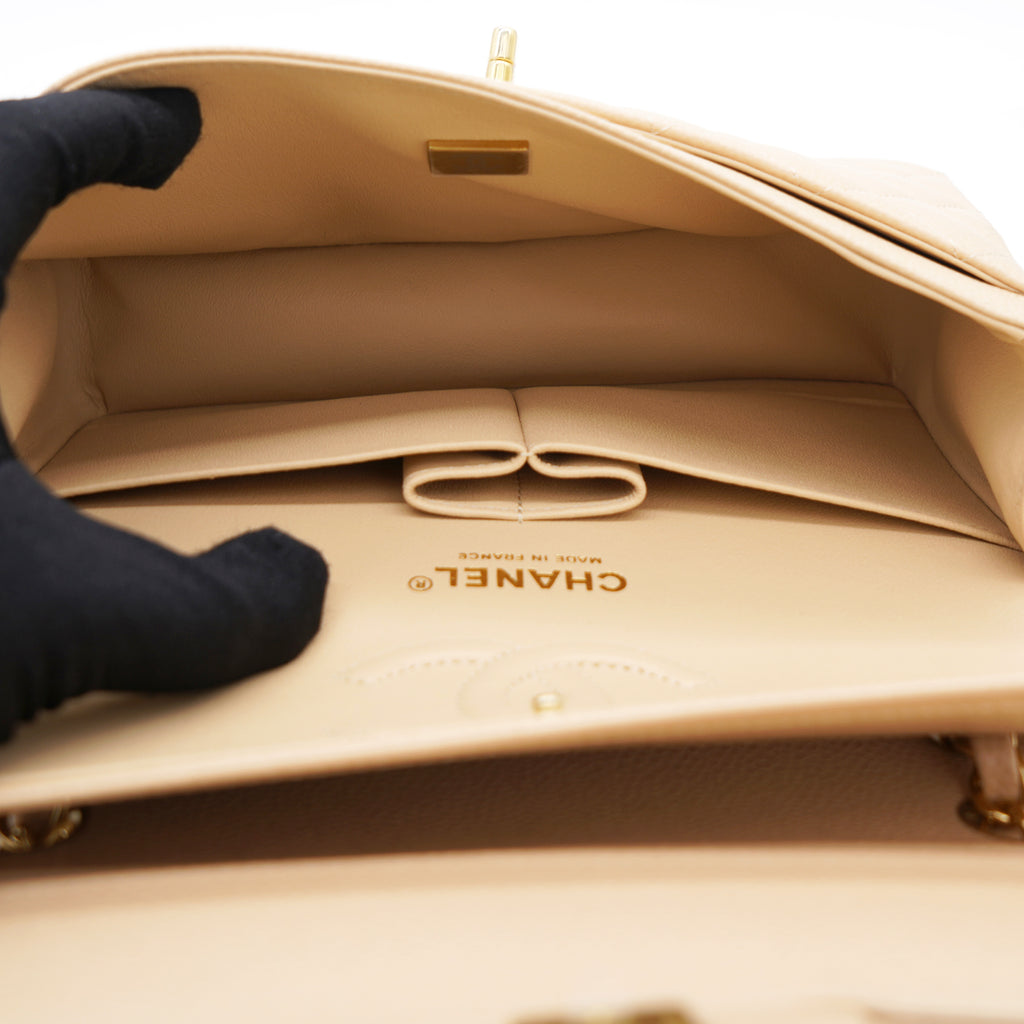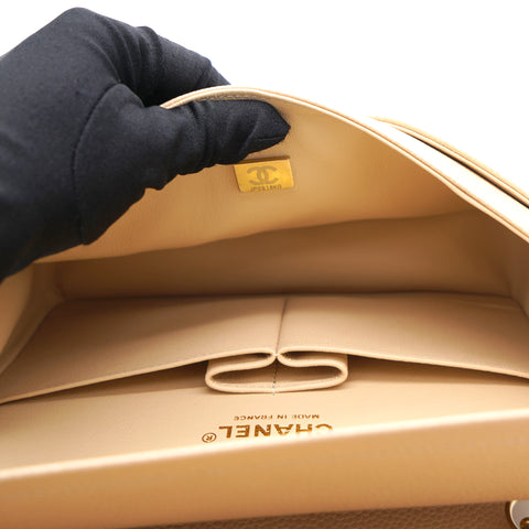 | This chic shoulder bag is crafted of diamond quilted caviar leather in navy. The bag features a long silver chain link leather threaded shoulder strap and front flap with a silver Chanel CC turn lock. The flap opens to a matching leather interior with patch pockets. |