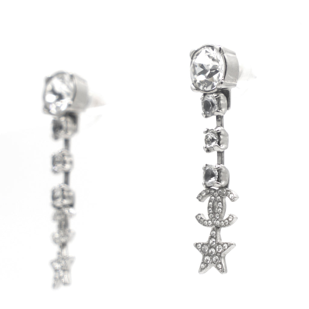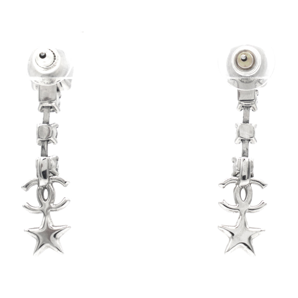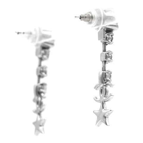 | The textured Chanel logo enhanced by a chic CC logo and stars design makes this pair of earrings an accessory to embrace the glamourous look. Crafted exquisitely with luxe silver-tone metal that impart a graceful élan to your look, these earrings can perfectly be paired with your evening gowns and dresses for that bit of bling. |
