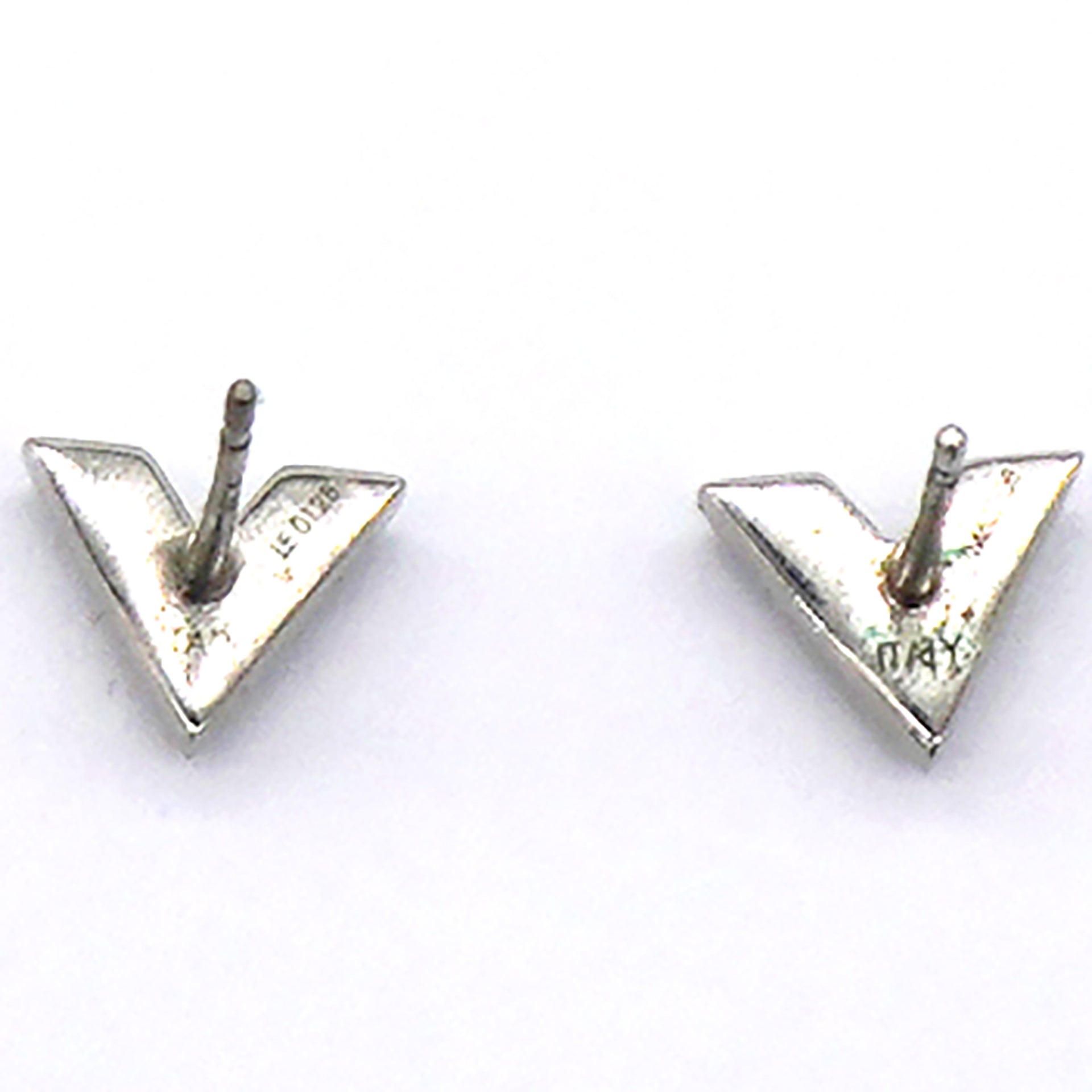 | These signature V studs are nicely crafted of brass metal in silver tone. |