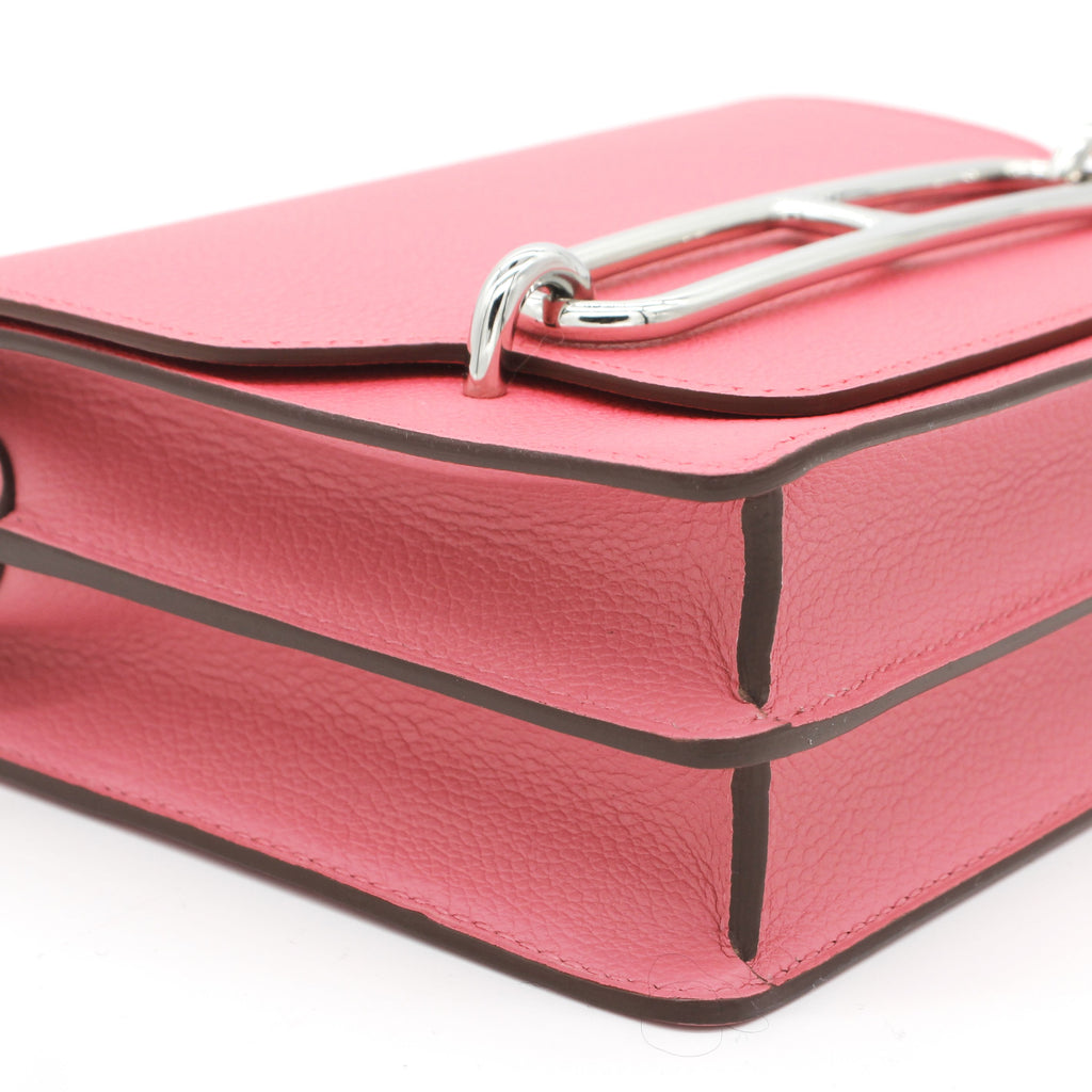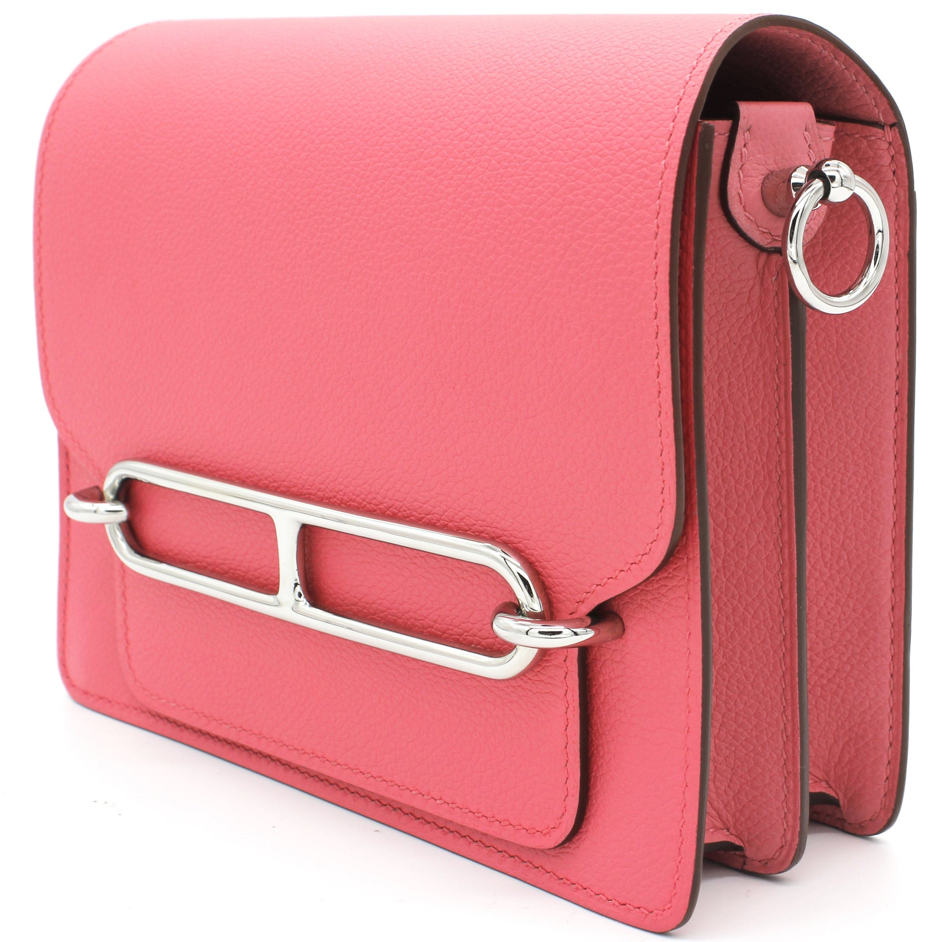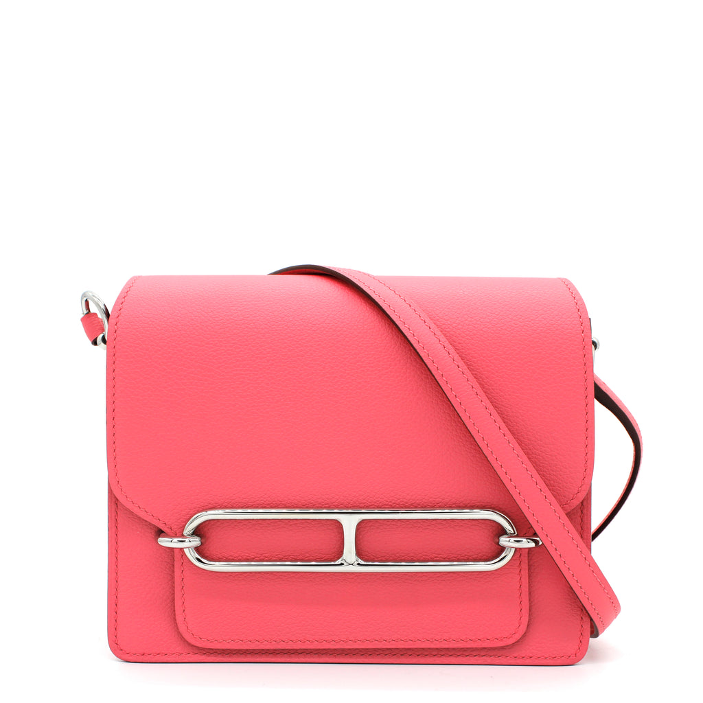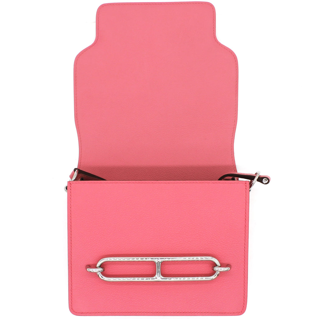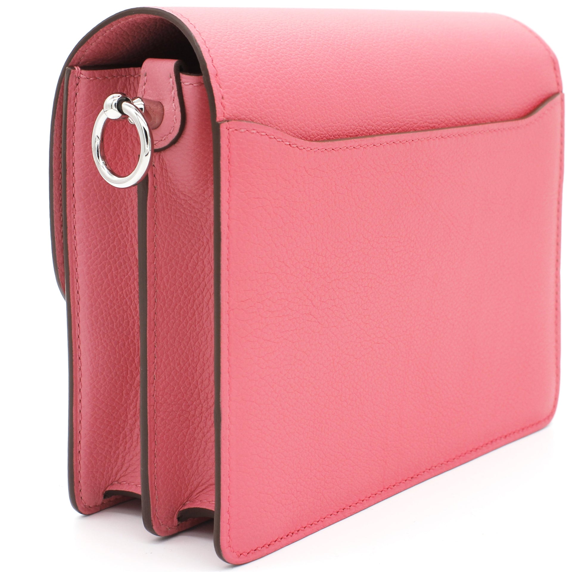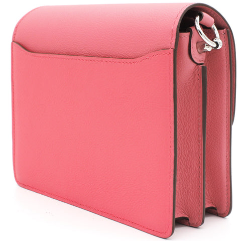 Exterior Material: Pink Evercolor leather exterior with an oblong palladium link hardware closure and a long leather shoulder strap. Interior Material: Leather lining with two main compartment, a central slip pocket and a patch pocket. Accessories: Dust Bag Date Stamp: D Bought Year: 2019 Color Code: 8W Rose Azalee |