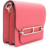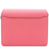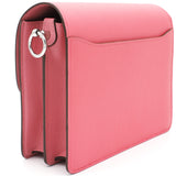 | This stunning shoulder bag is beautifully crafted of textured calfskin leather in Pink. The bag features a long leather shoulder strap with palladium silver links with accordion sides and a front flap that tucks into an oblong palladium link hardware closure. The flap opens to a partitioned leather interior with a pocket, making this suitable for everyday wear |