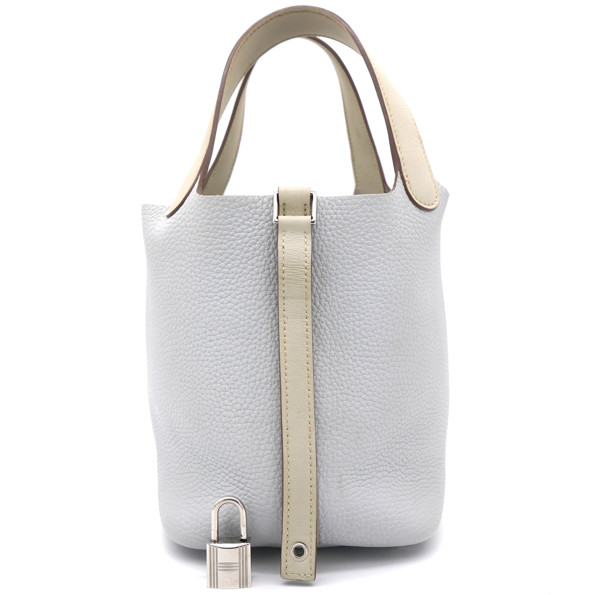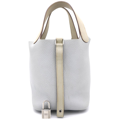 Grey/White Clemence Leather Picotin Lock 18 Bag