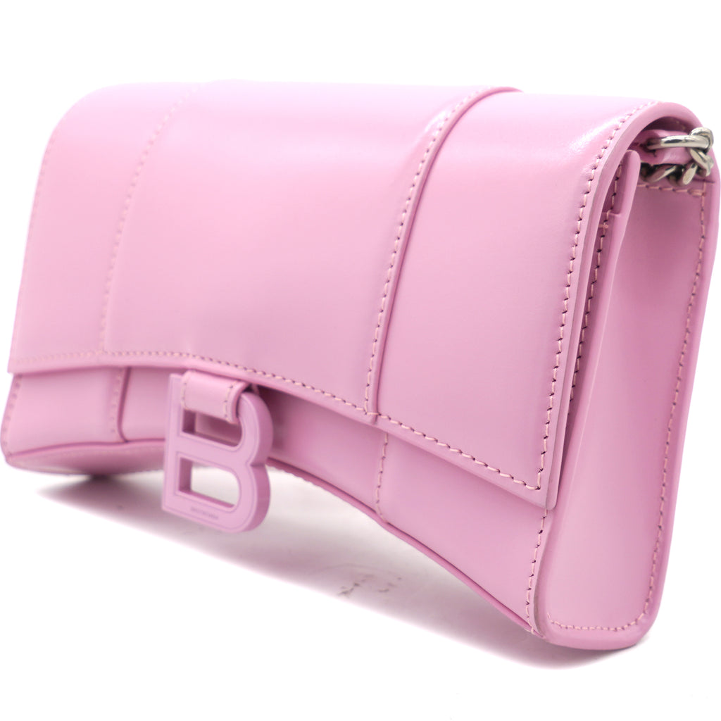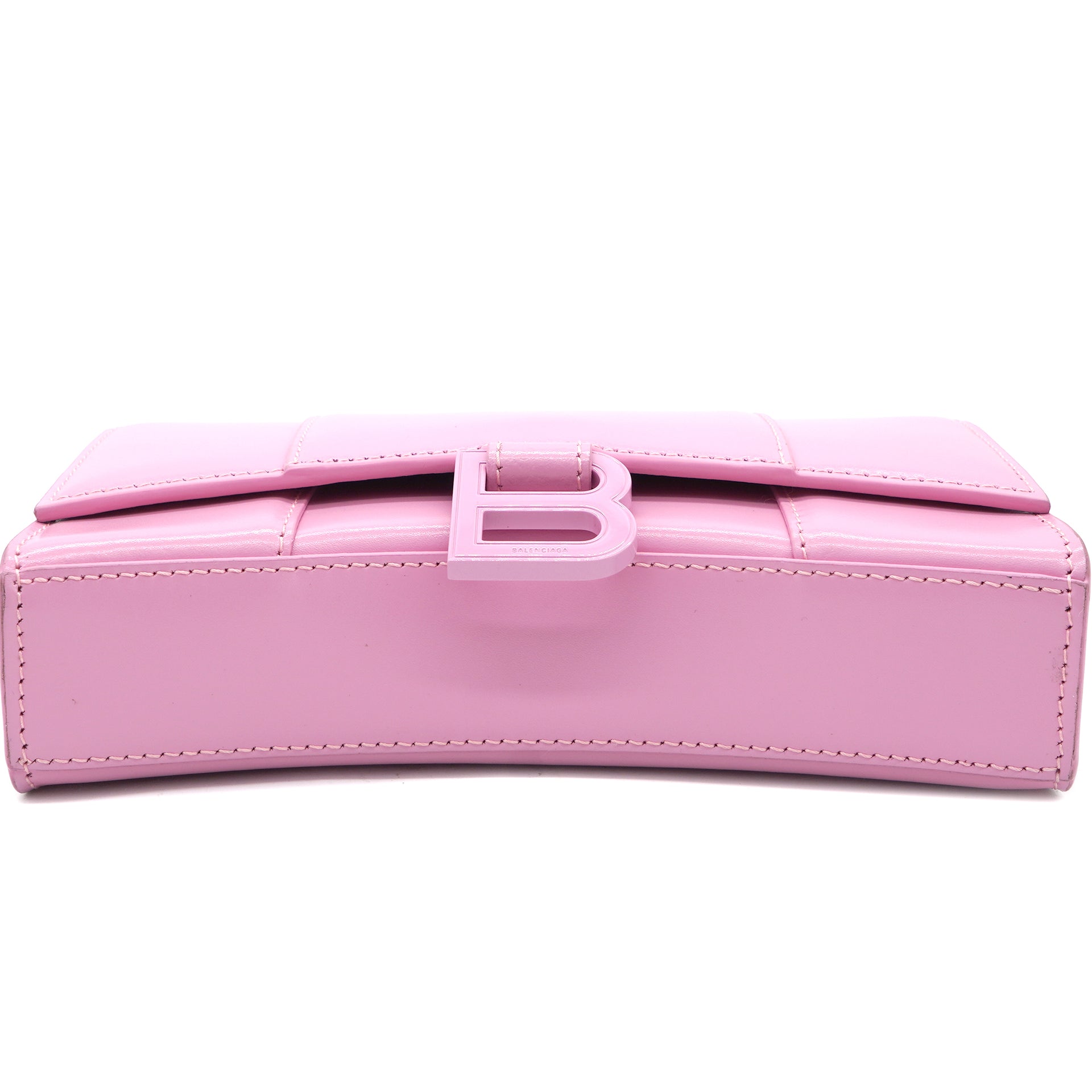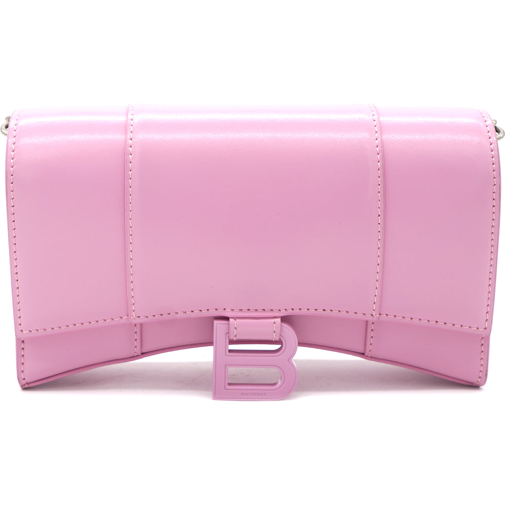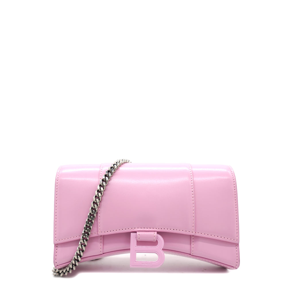 | Balenciaga's 'Hourglass' bags are inspired by the label's sculptural blazers. This shoulder bag has been crafted in Italy from pink smooth leather and detailed with a tonal-tone 'B' at the front flap. The interior has multiple card slots, a zipped compartment and a handy pocket for your phone or keys. Detach the chain strap to hold it as a clutch. |