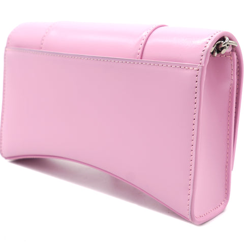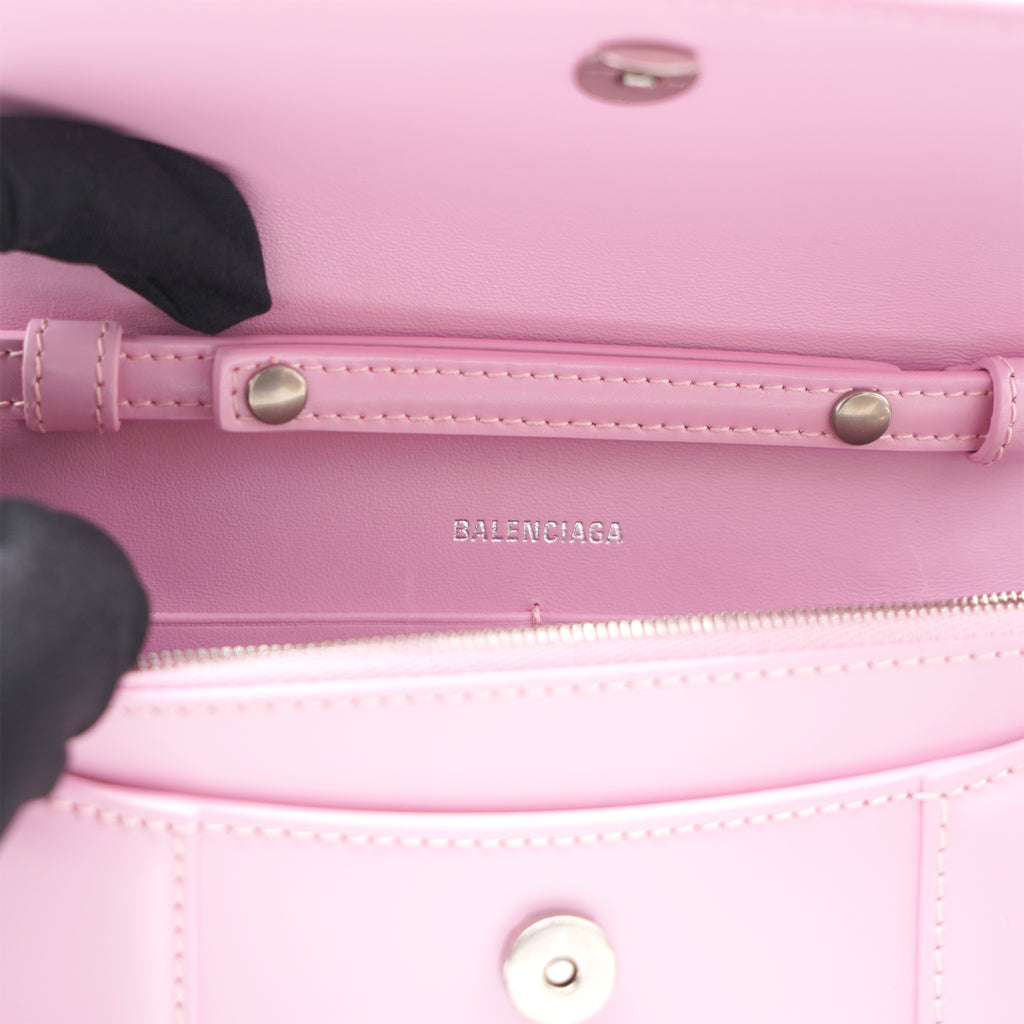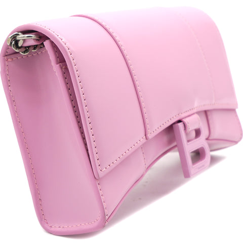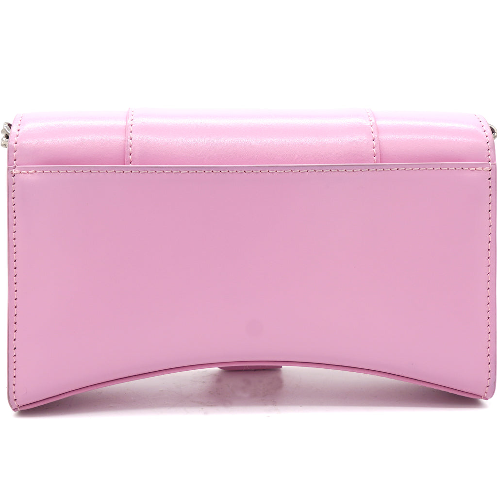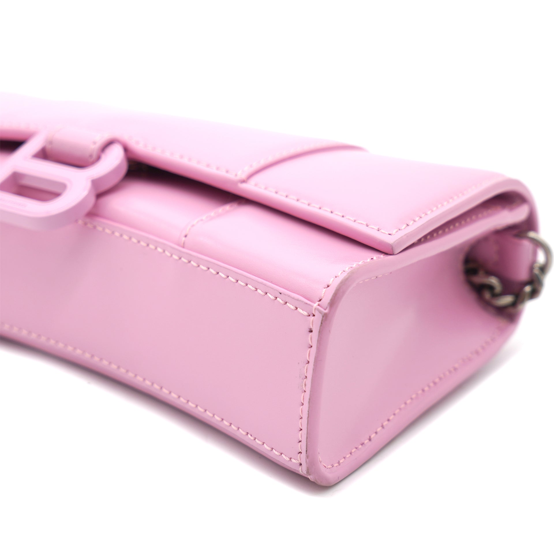 | Balenciaga's 'Hourglass' bags are inspired by the label's sculptural blazers. This shoulder bag has been crafted in Italy from pink smooth leather and detailed with a tonal-tone 'B' at the front flap. The interior has multiple card slots, a zipped compartment and a handy pocket for your phone or keys. Detach the chain strap to hold it as a clutch. |
