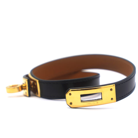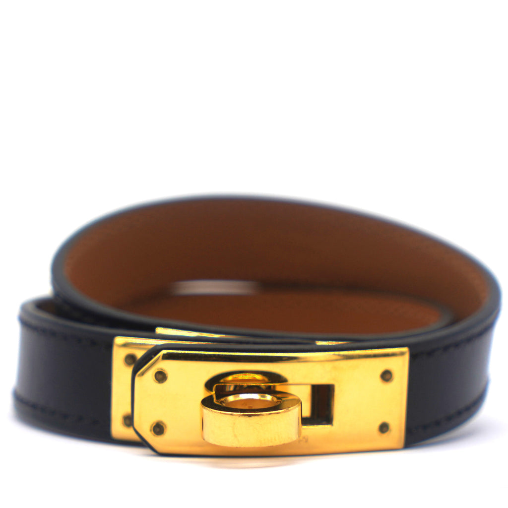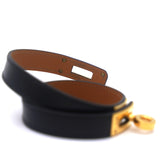 Kelly Double Tour Black Box Leather Yellow Gold-Plated Wrap Bracelet