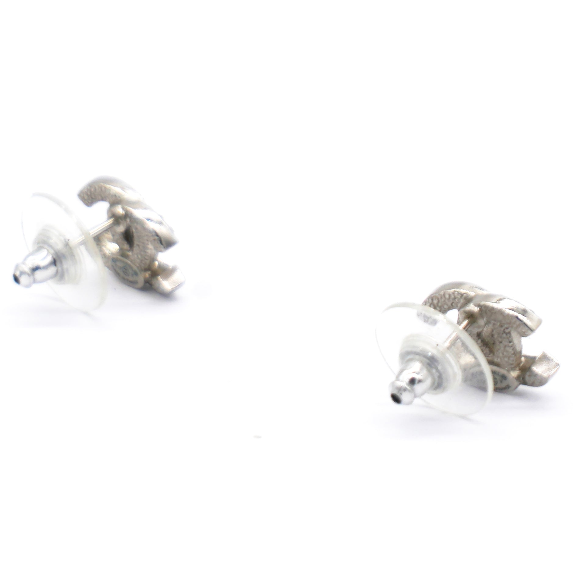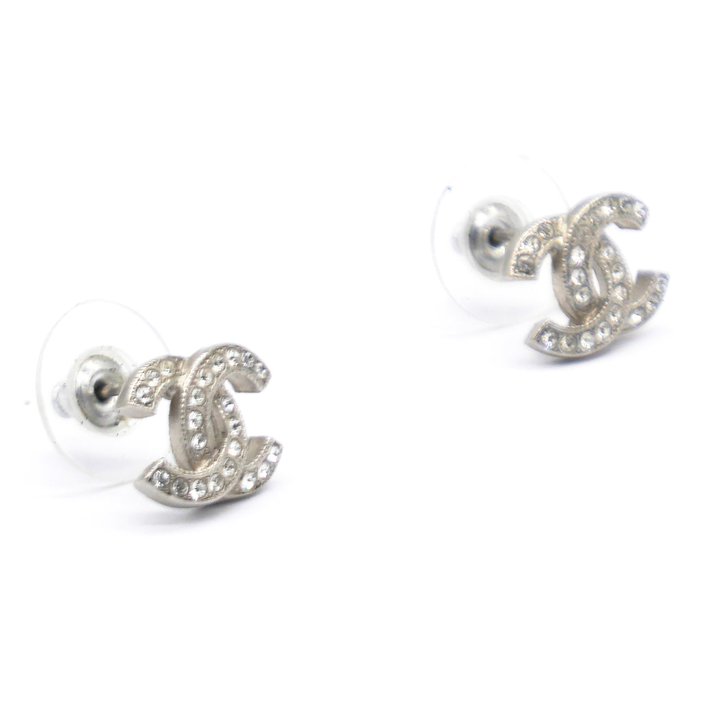 | These Logo Earrings feature a stunning silver and crystal design by Chanel. With high-quality materials and a sophisticated logo, they add a touch of elegance to any outfit. Elevate your style with these expertly crafted earrings that exude luxury and class.collection. |