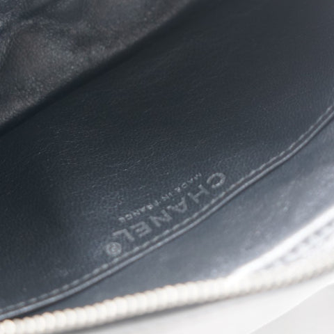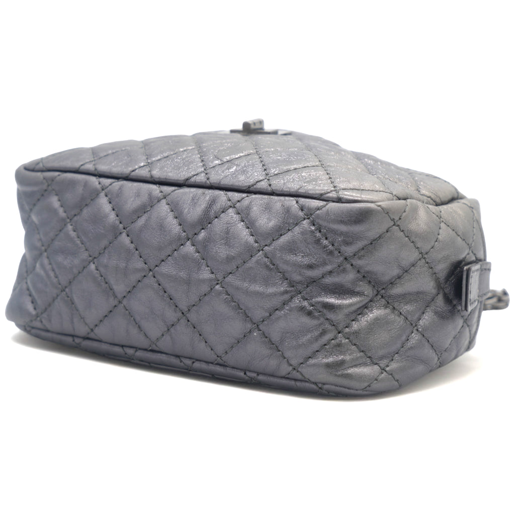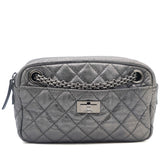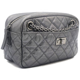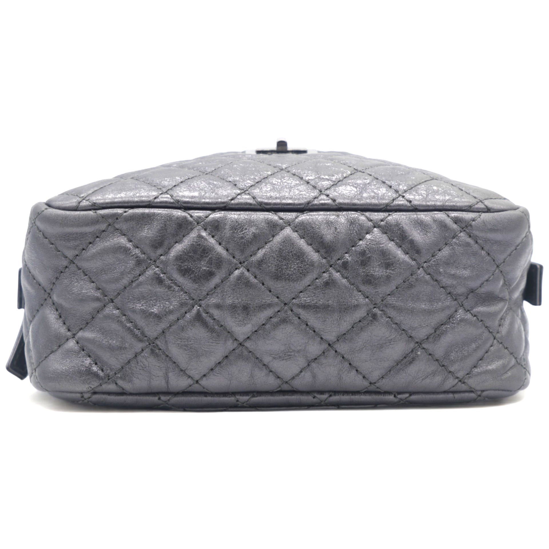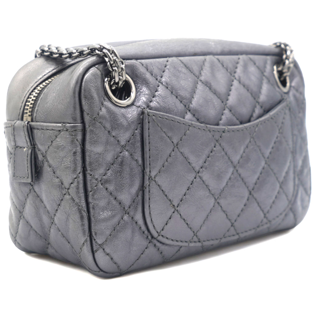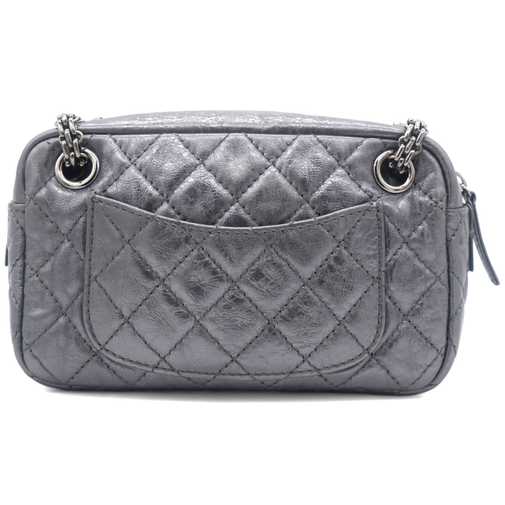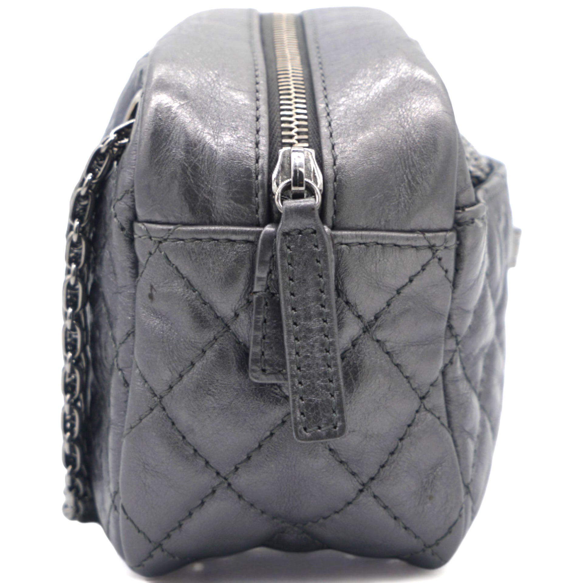 | This chic shoulder bag is crafted of smooth luxurious diamond quilted calfskin leather in metallic silver. The bag features polished ruthenium bijoux chain shoulder straps and a facing squared polished ruthenium Mademoiselle turn lock for the patch pocket. The top zipper opens to a leather interior a patched pocket. |