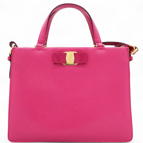The Salvatore Ferragamo Tracy Bow Tote in red Saffiano leather is a sophisticated accessory that combines timeless elegance with practical design. Crafted from durable Saffiano leather, it features the brand's signature Vara bow on the front, adding a touch of femininity.