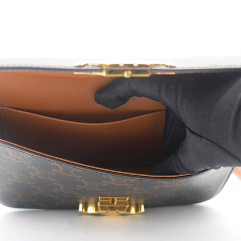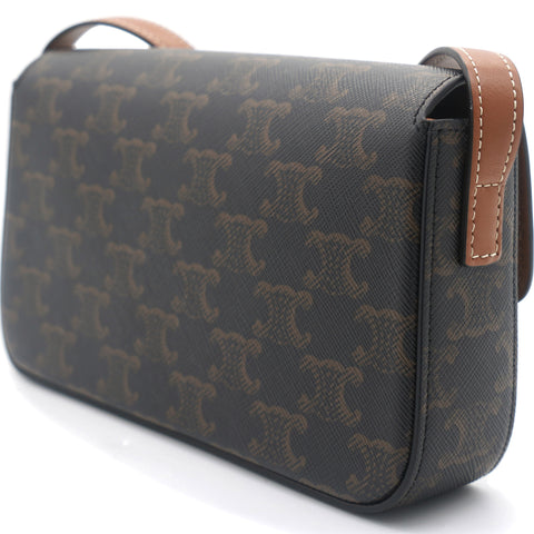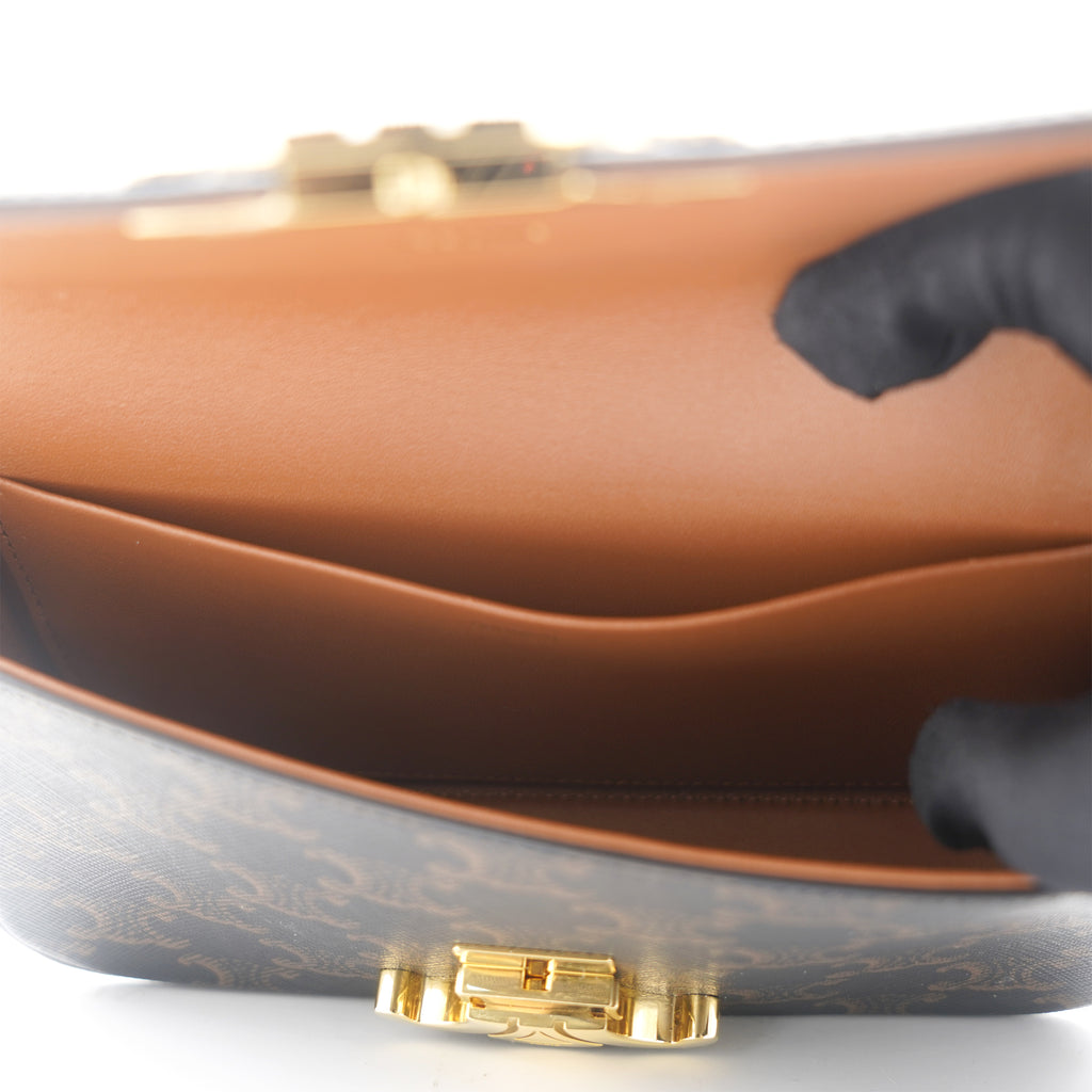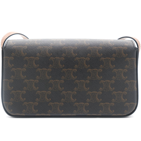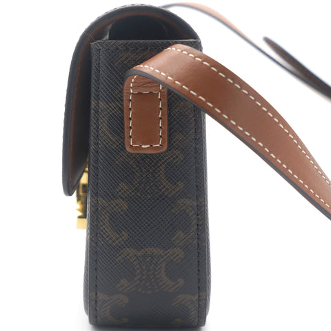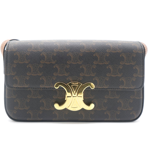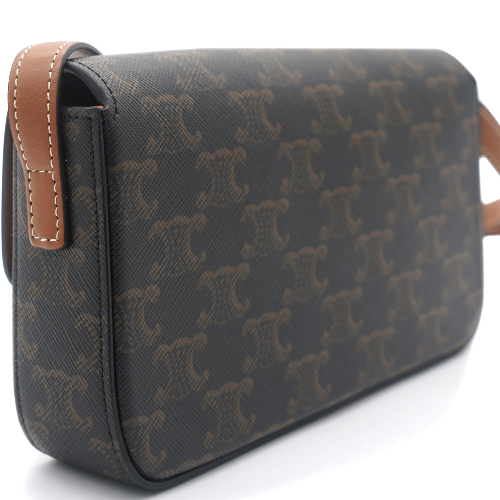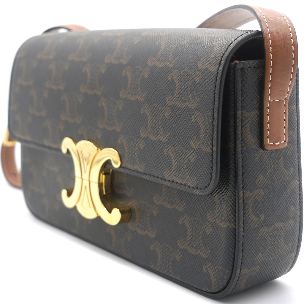| This statement bag is crafted from signature triomphe canvas and with calfskin tan trimming, finished with gold-toned triomphe logo closure and complete with removeable and adjustable leather strap. |