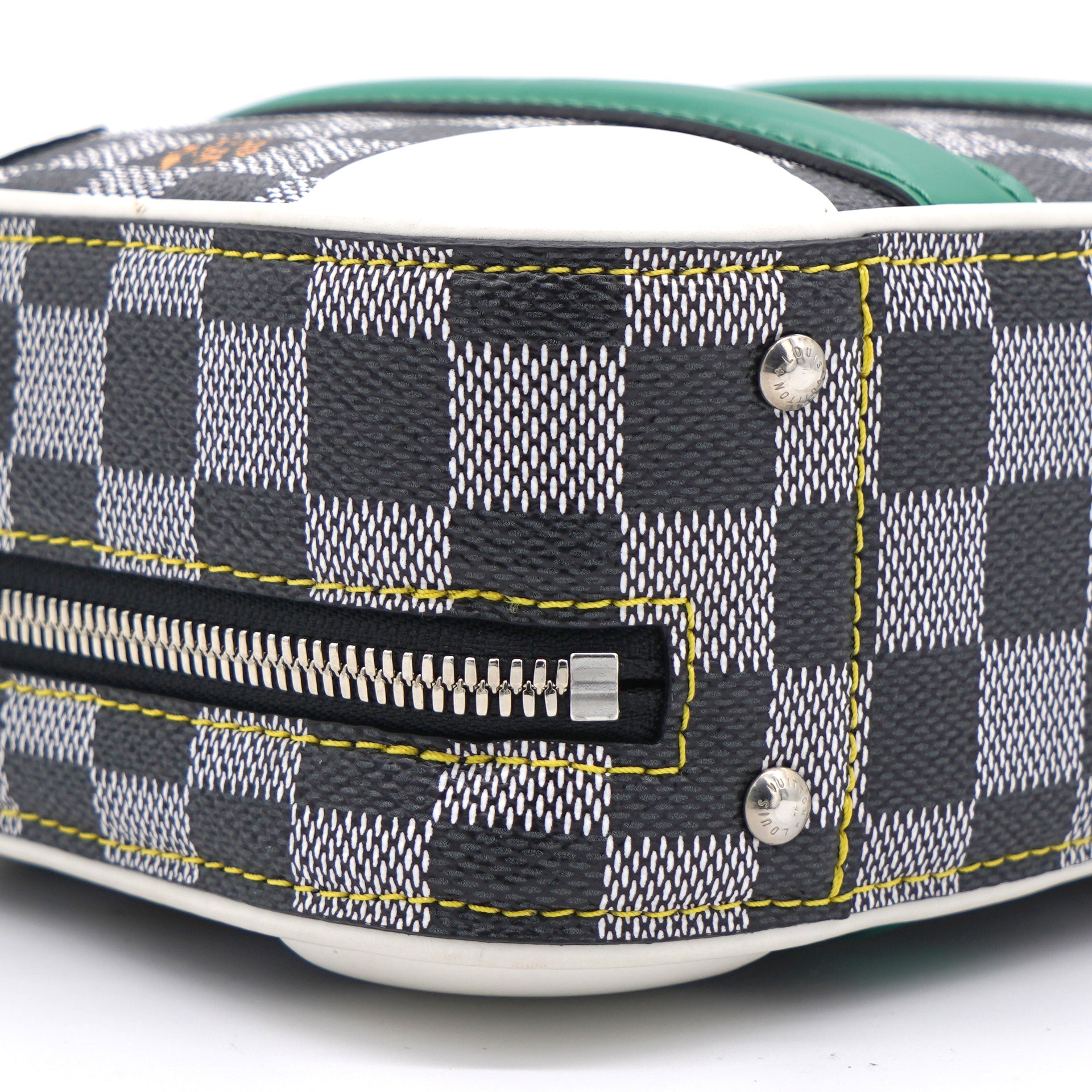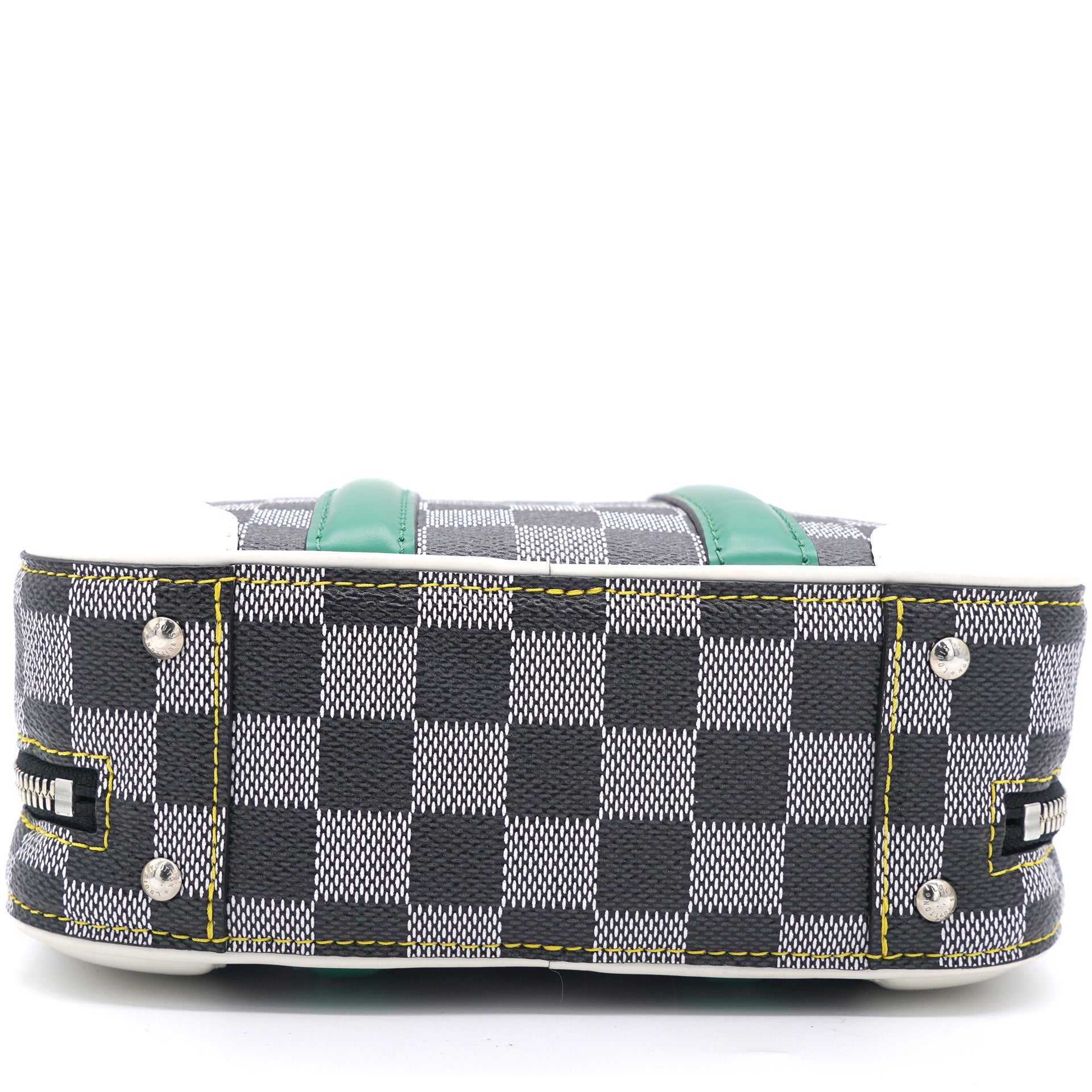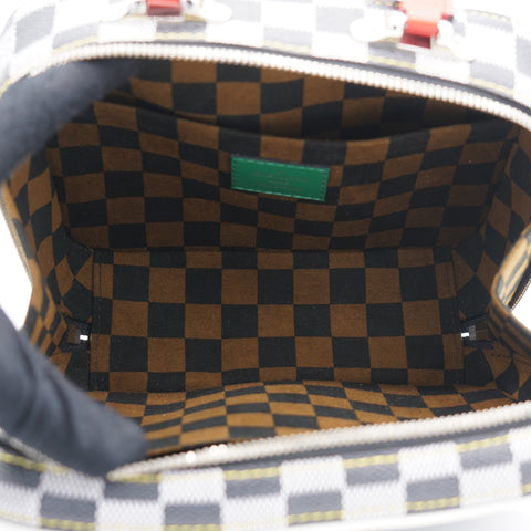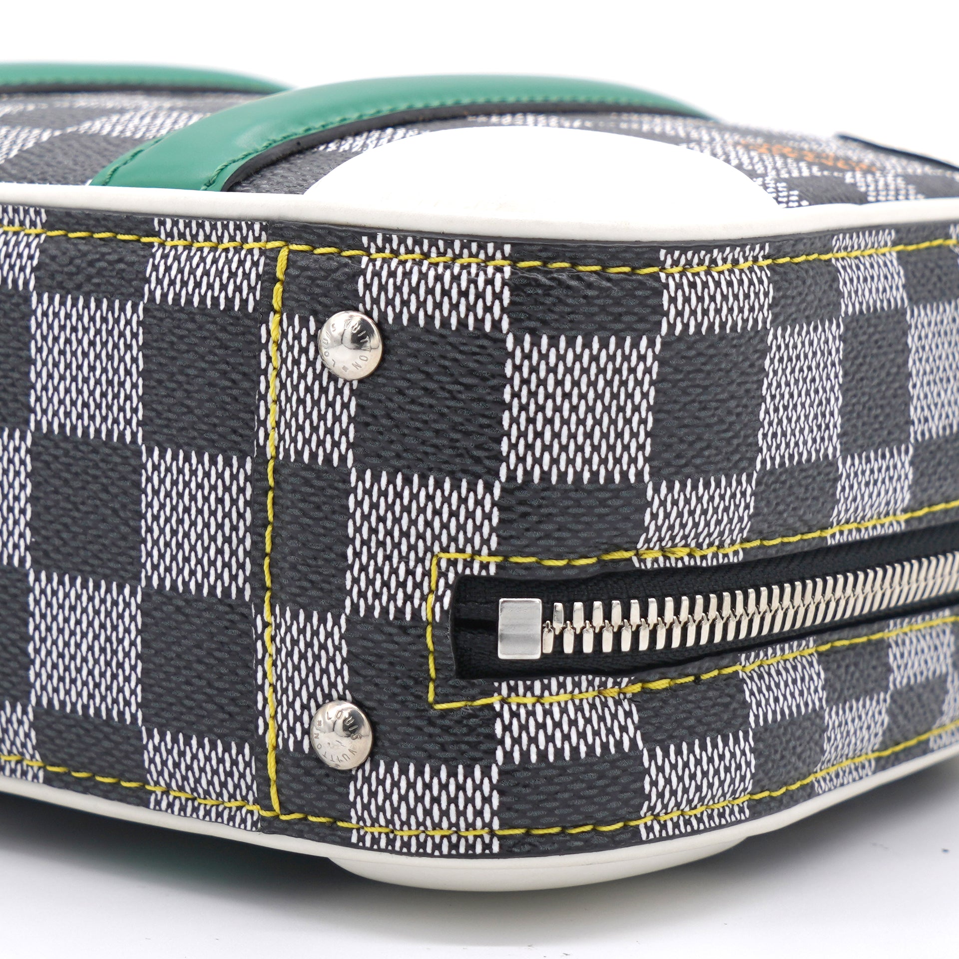 | Nicolas Ghesquière’s new black-and-white reinterpretation of classic Damier canvas is complemented by colorful calf-leather details on this Valisette BB handbag. Inspired by the House’s travel heritage, this structured bag evokes the suitcases created by the House in the middle of the last century. The top handle and removeable strap offer multiple carry options. |