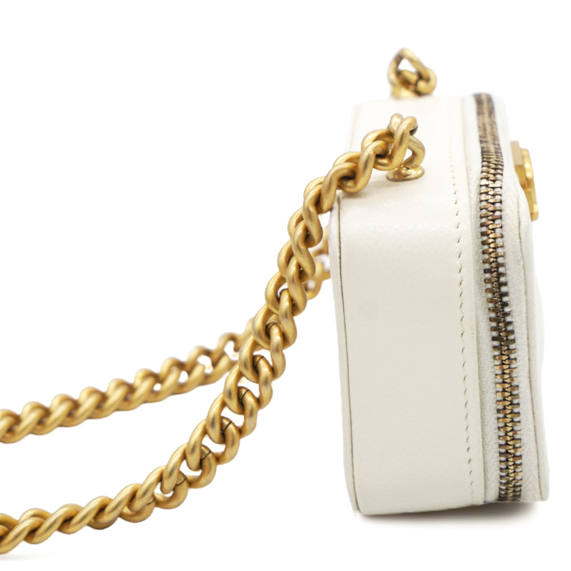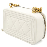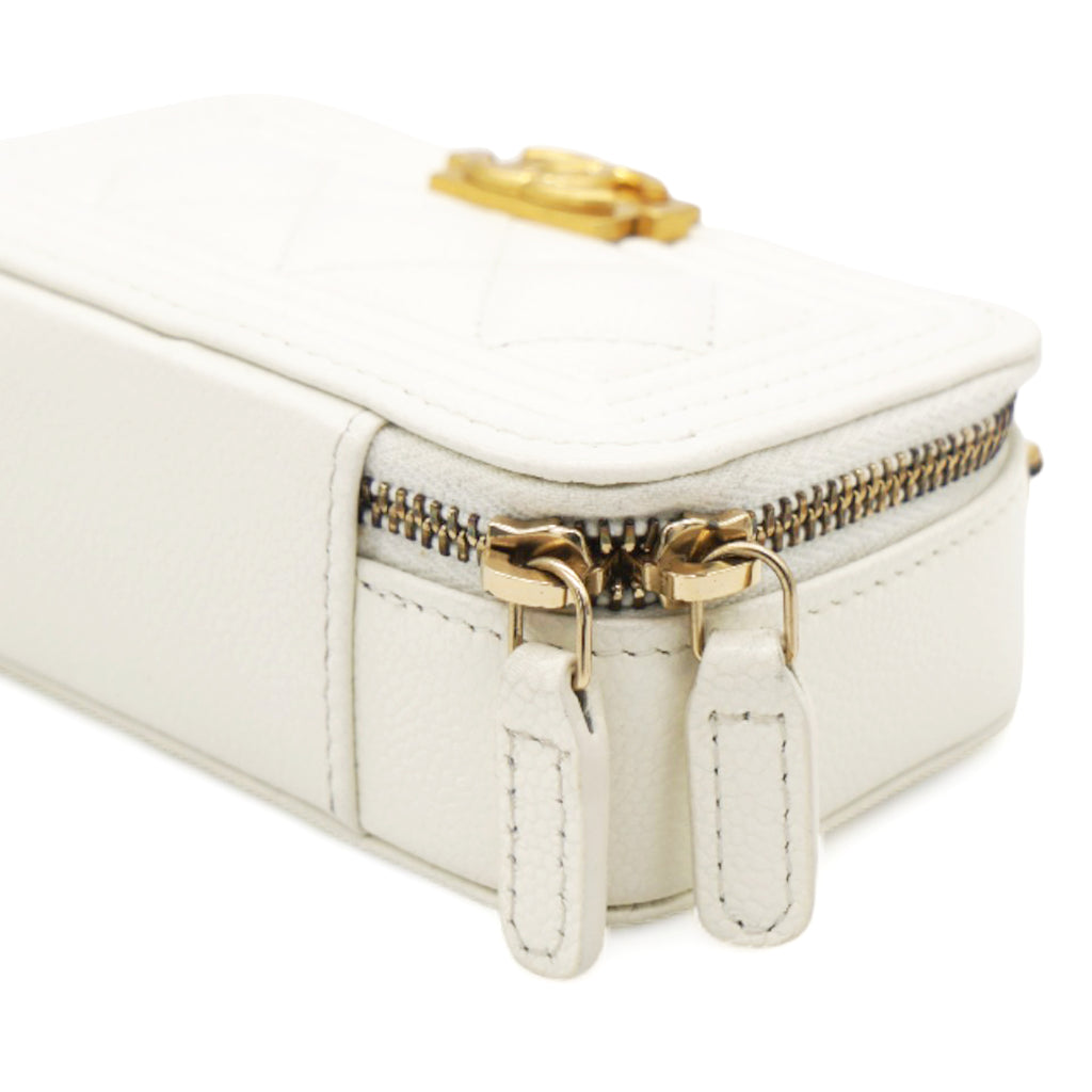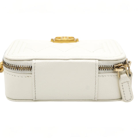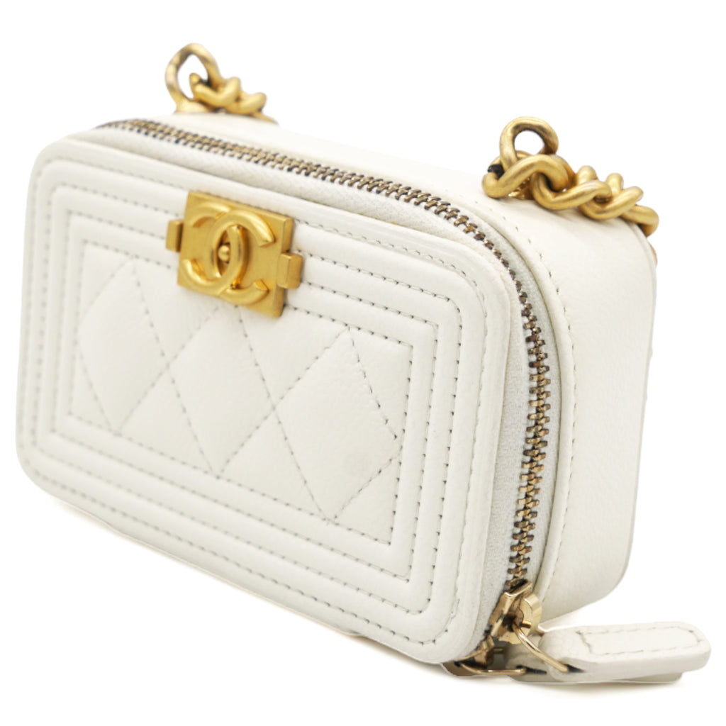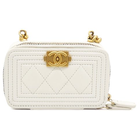 | This cardholder from Chanel is absolutely gorgeous to look at! Crafted from caviar leather in white, it features the signature quilts, the Boy CC logo on the front zip, and a brushed gold chain link for you to parade it in style. Organize your essentials in style with this beautiful creation. |