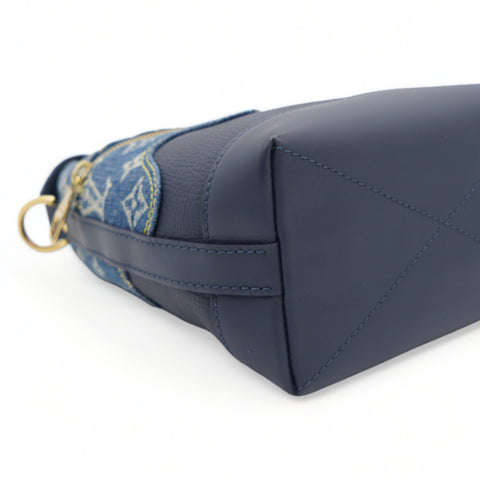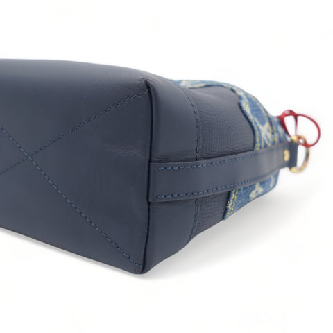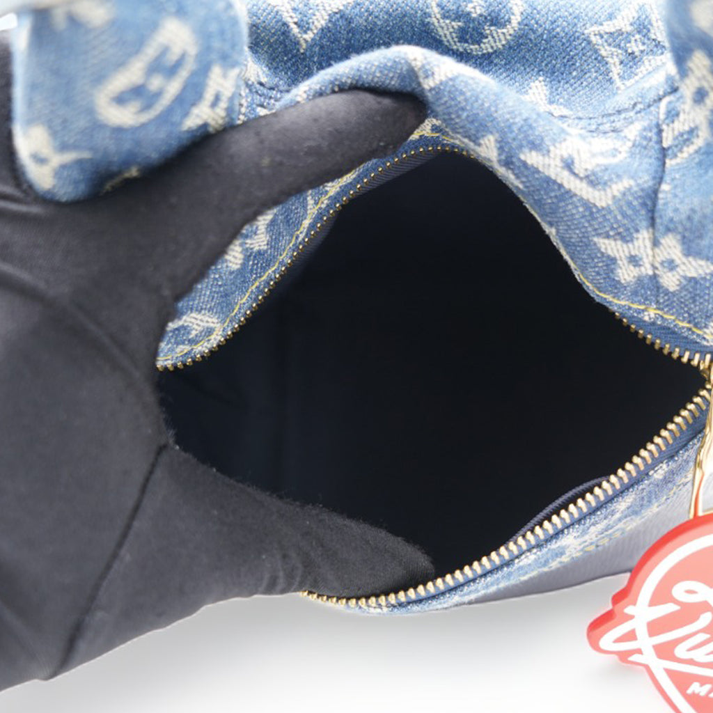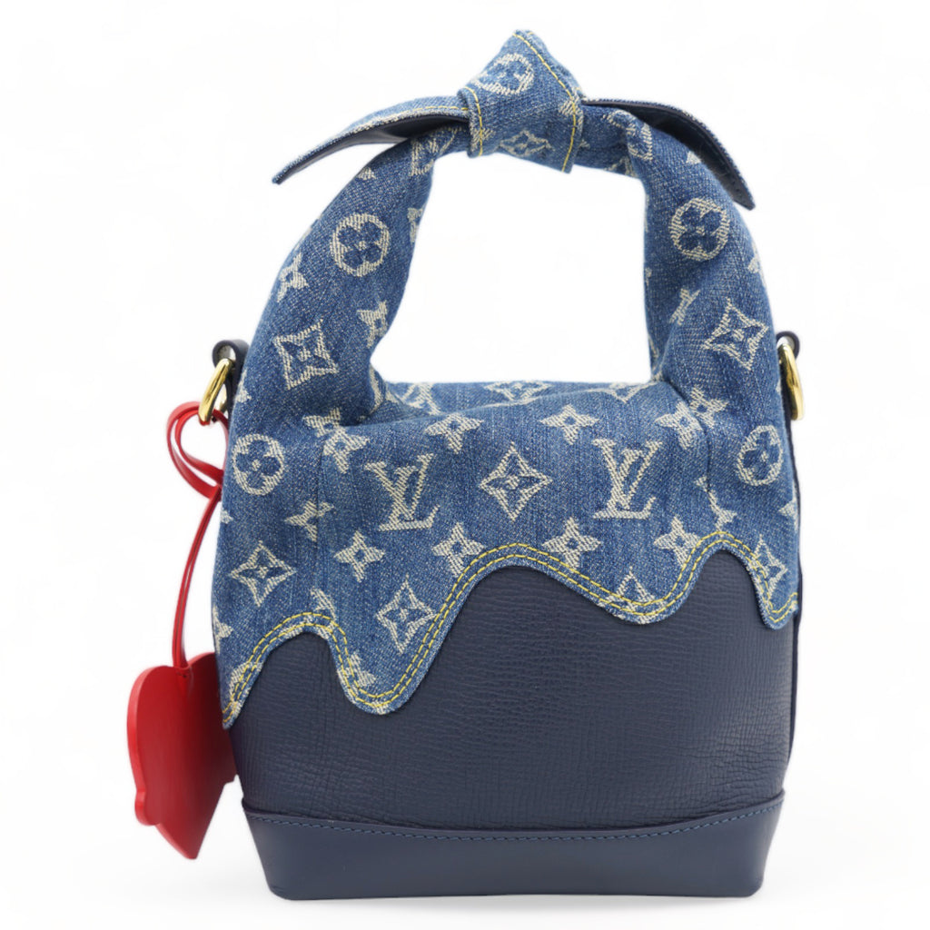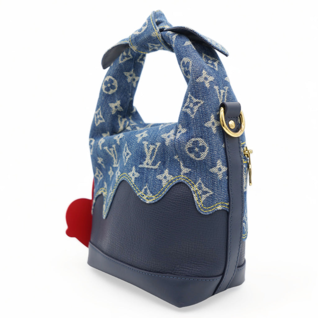 | This is an authentic LOUIS VUITTON X NIGO Taurillon Monogram Denim Japanese Cruiser in Blue. This stylish bag is crafted of grained taurillon leather in dark blue and signature Louis Vuitton monogram on denim canvas with a drip motif. The bag features an optional shoulder strap. The top zippers open to a spacious navy-blue fabric interior. |