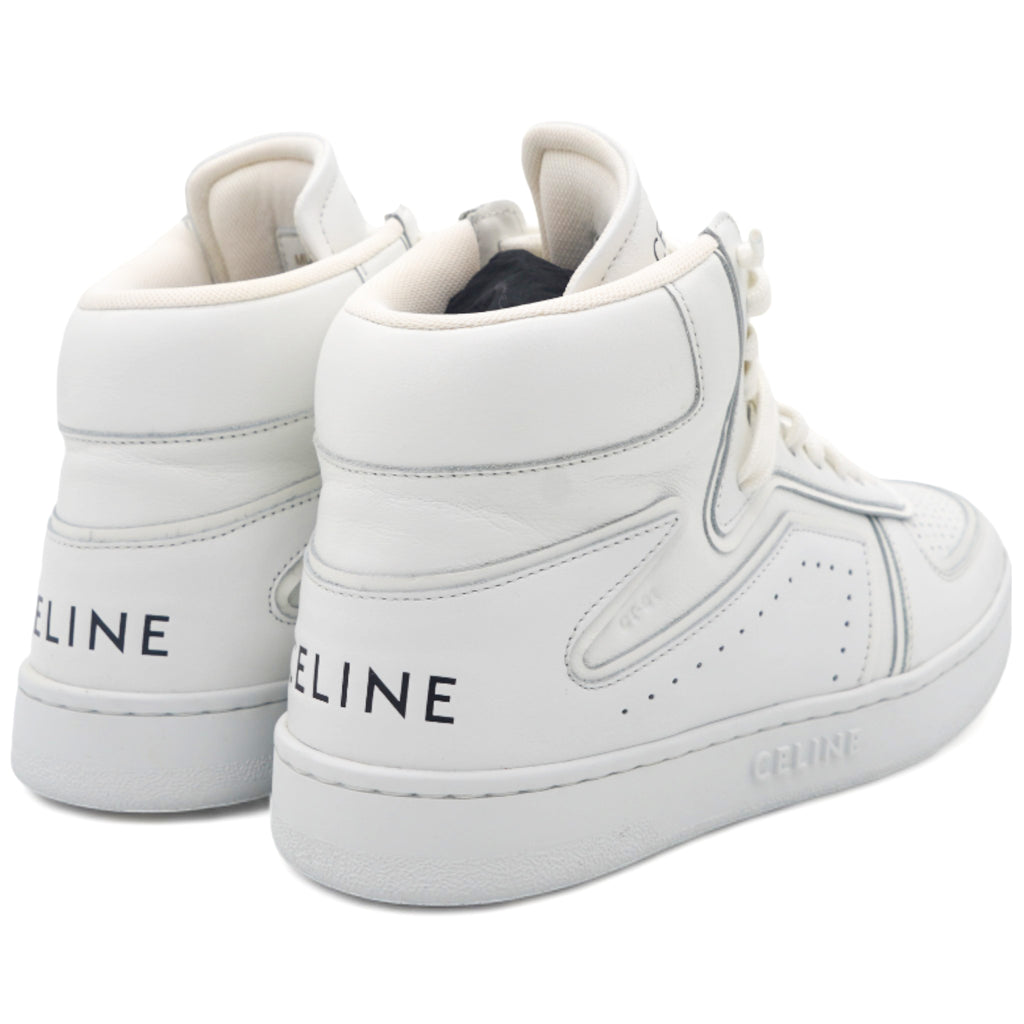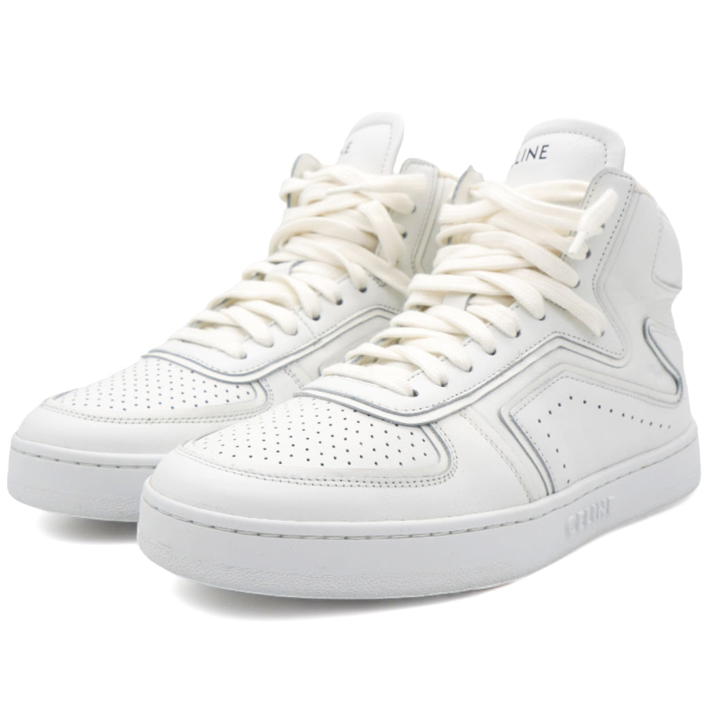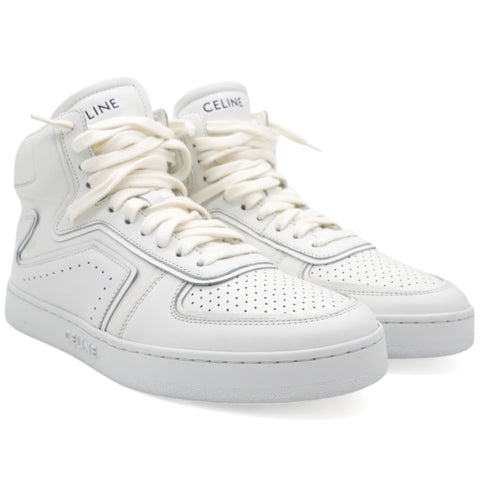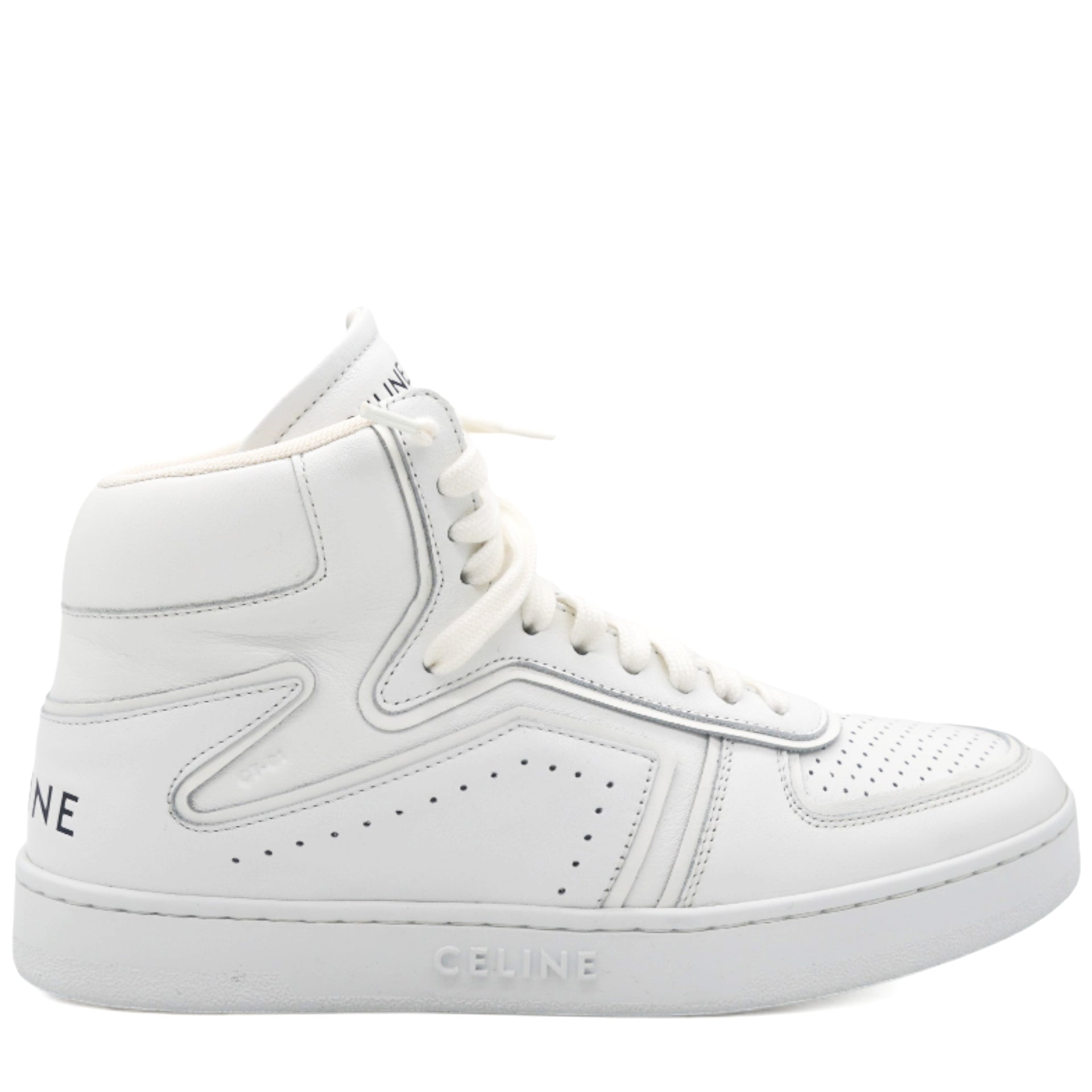 | 100% calfskin in 5mm heel round toe shape thin perforations on the upper-side trimmings with graphic lines Celine signature at the back and on the tongue of the sneaker"ct-01" nomenclature is embossed on the side of the sneaker cotton laces textile insole Celine debossed signature on the external side of the outsole Celine embossed signature under the outsole rubber. |