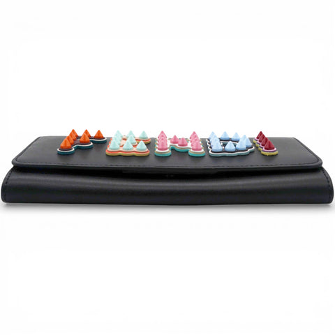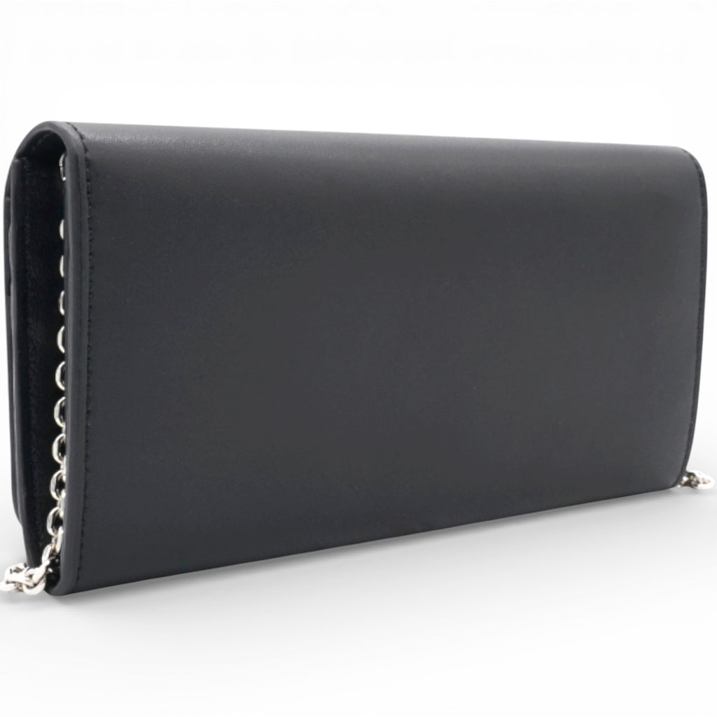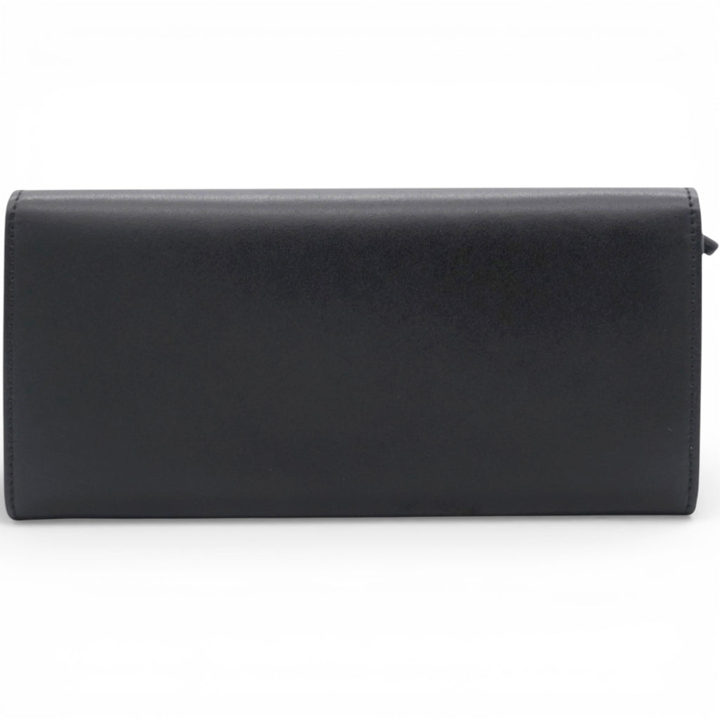 Black Leather Logo Multifunction Wallet on Chain