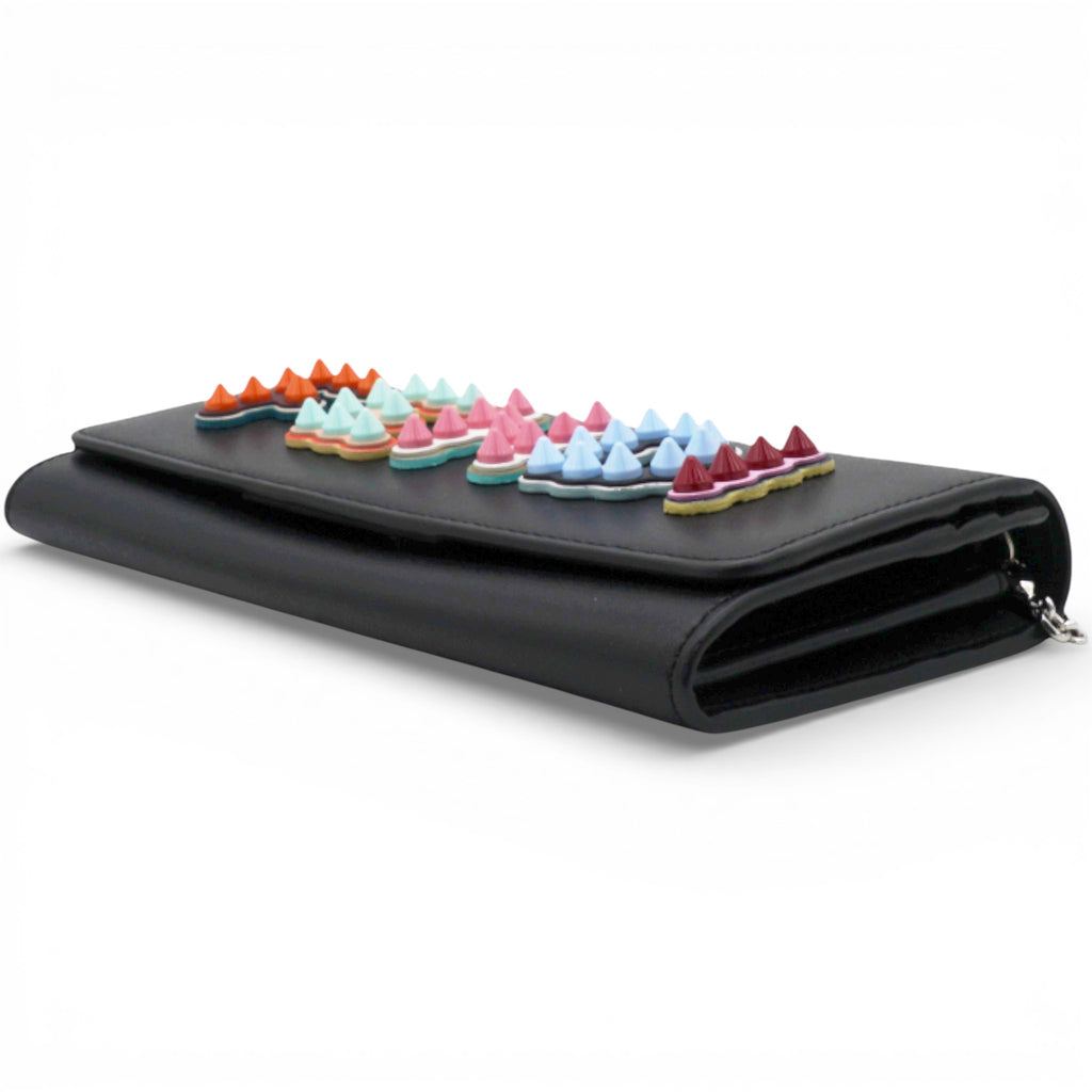 | Crafted from black leather, this FENDI wallet on chain features signature logo detailing and a versatile multifunction interior. Designed with a sleek chain strap, it offers both style and practicality for day-to-evening wear. |