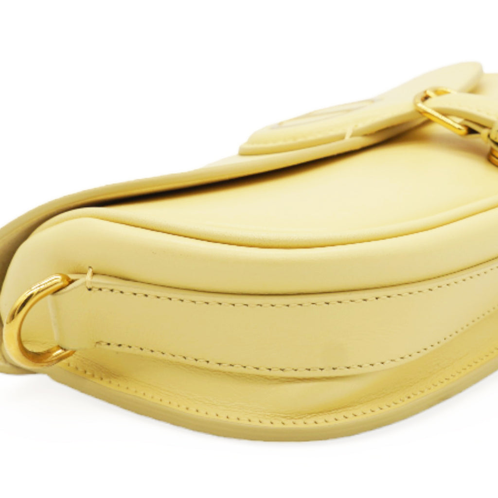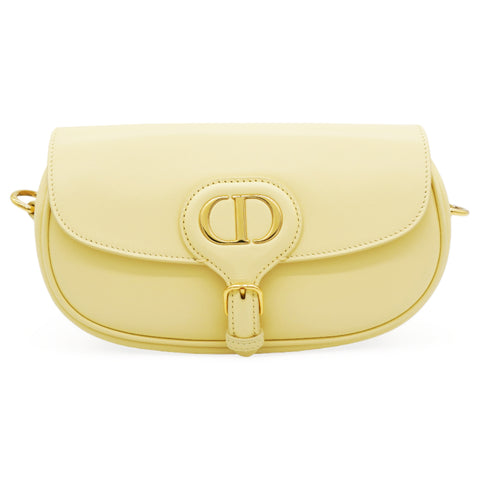 | The pale-yellow box calfskin style features a suede interior for added suppleness as well as antique gold-finish metal hardware. Adorned with a removable and adjustable sliding shoulder strap with a signature military-inspired buckle, the medium Dior Bobby bag can be carried by hand, worn over the shoulder by day or night, or crossbody for a sportier look. |