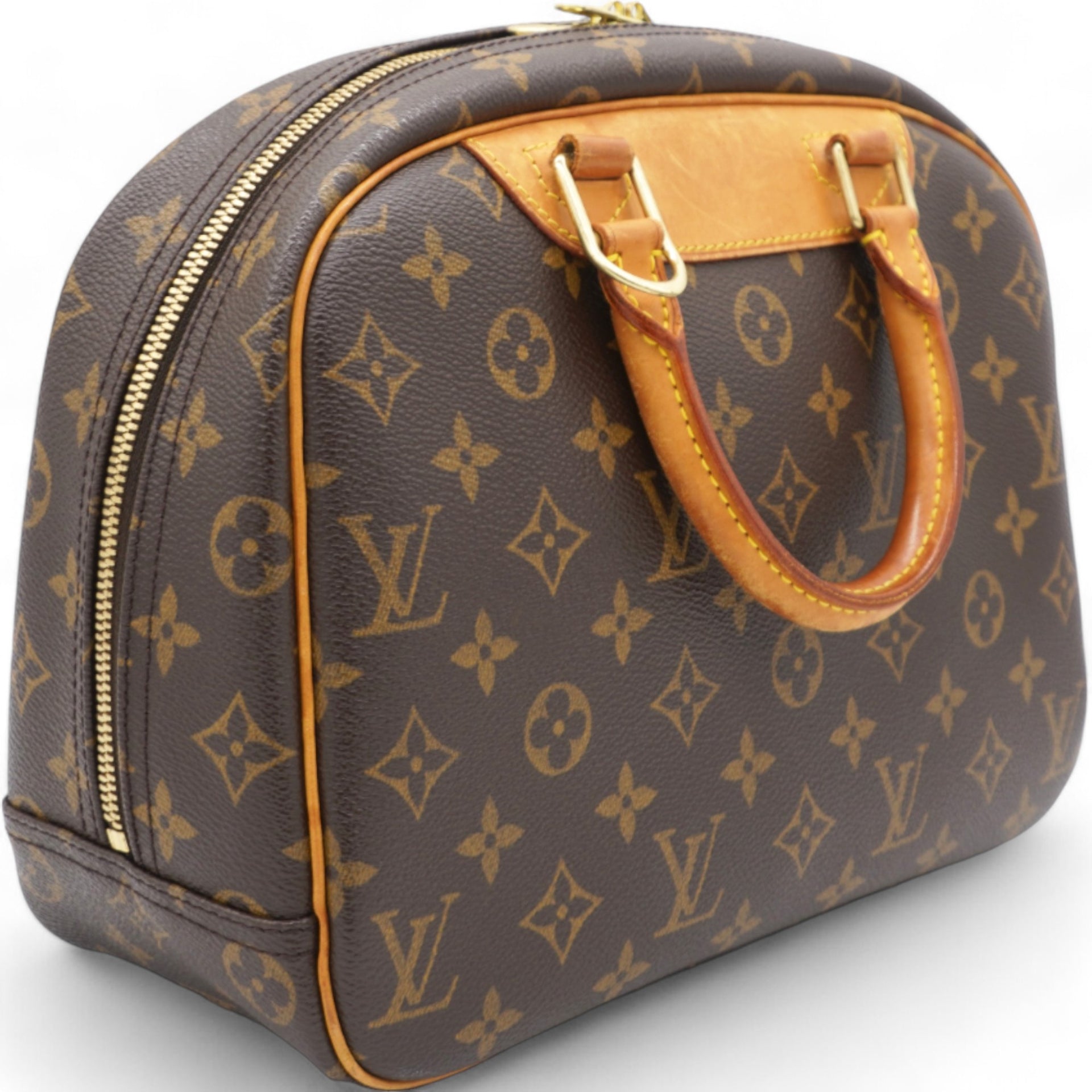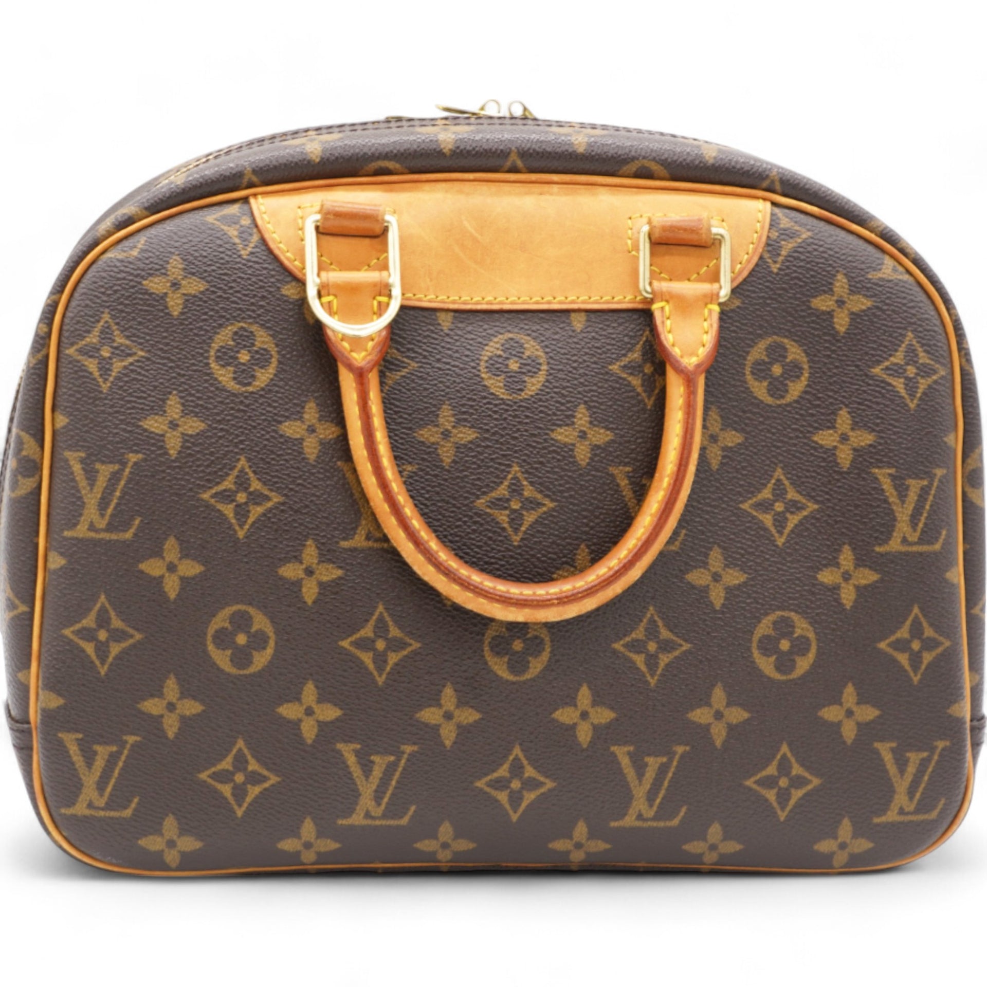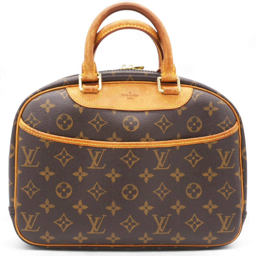 | The Louis Vuitton Trouville bag is an investment-worthy creation. Made of monogram canvas and leather, this LV bag is added with two leather handles, a zip-enclosed canvas interior, and gold-tone hardware. |