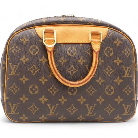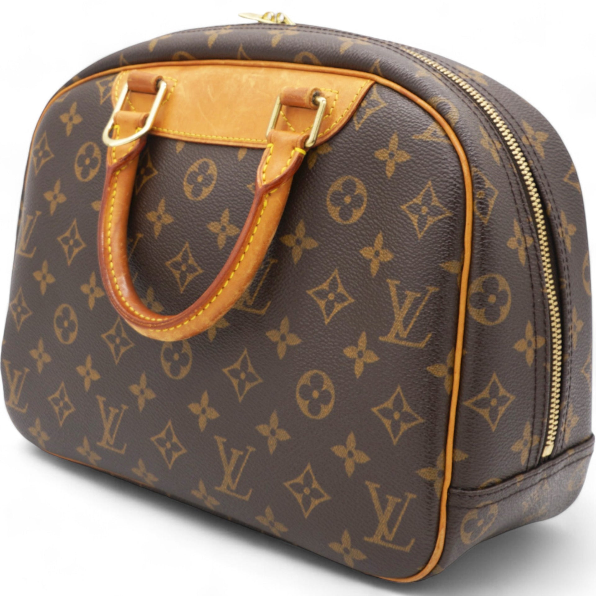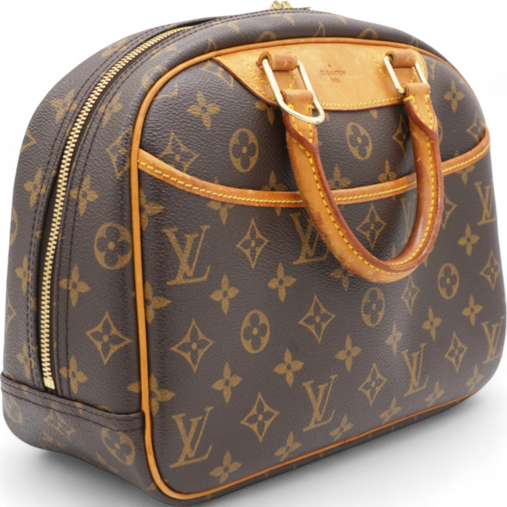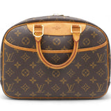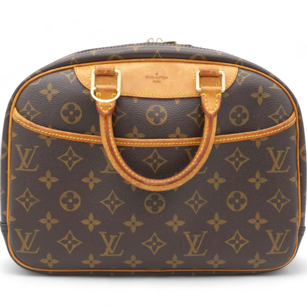 | The Louis Vuitton Trouville bag is an investment-worthy creation. Made of monogram canvas and leather, this LV bag is added with two leather handles, a zip-enclosed canvas interior, and gold-tone hardware. |