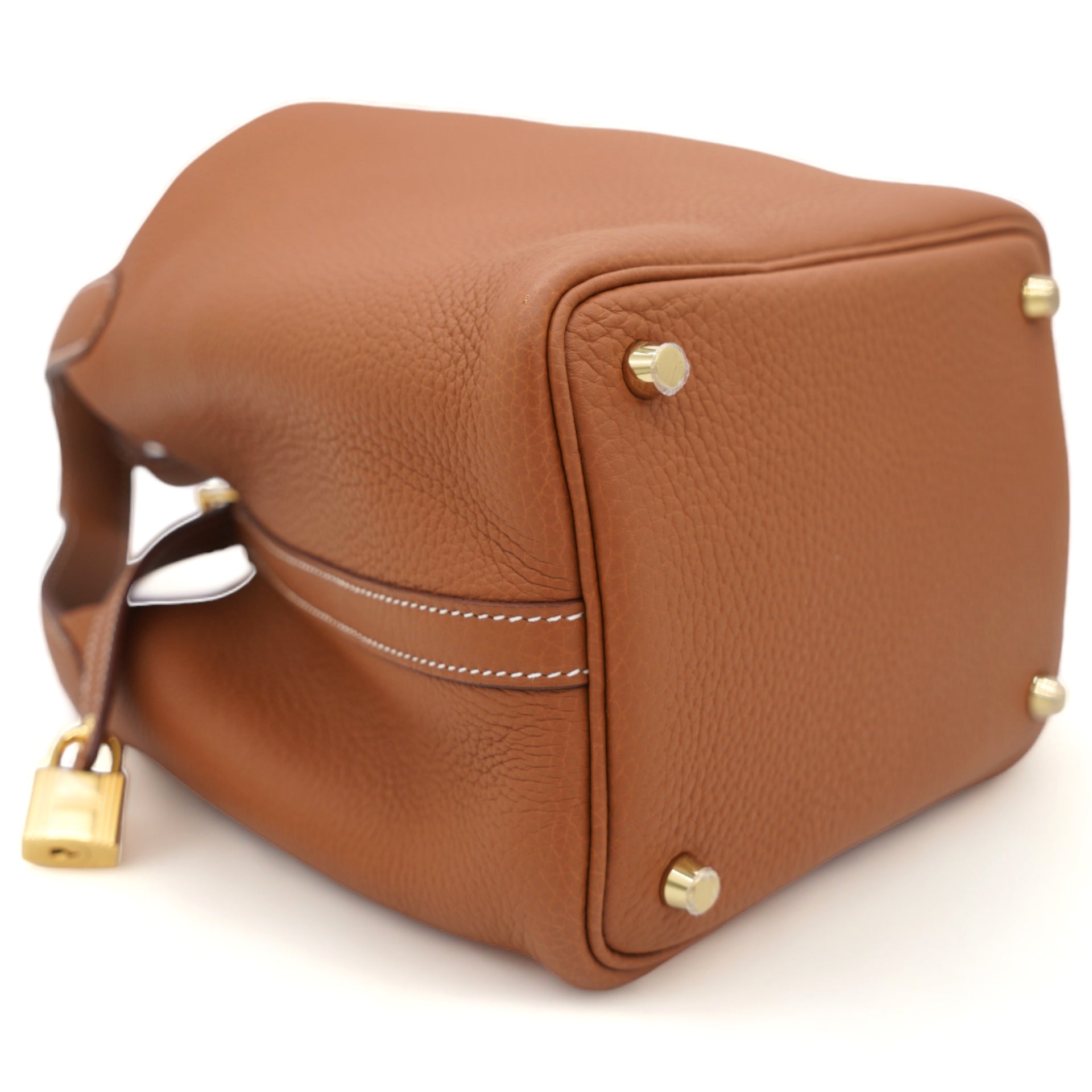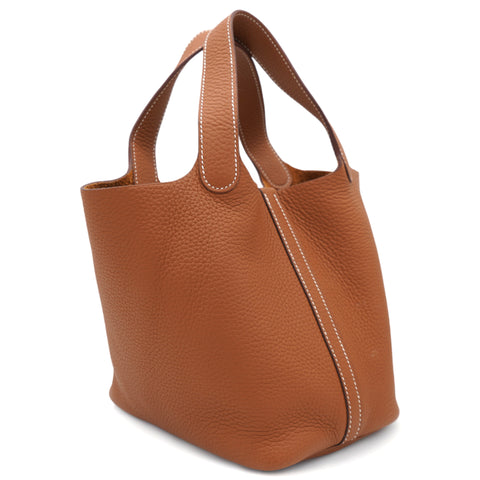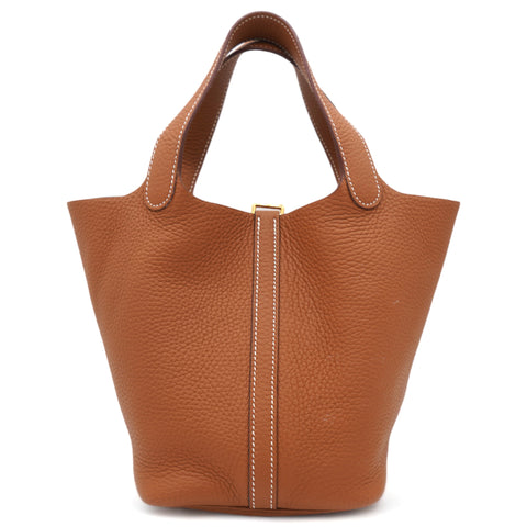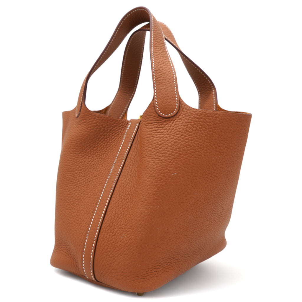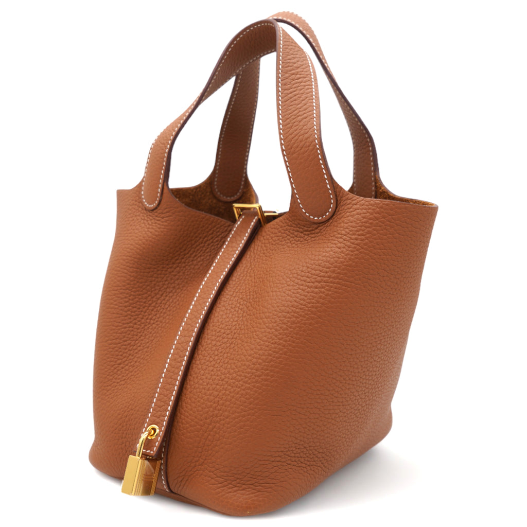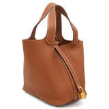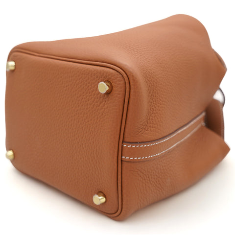 Clemence Leather Picotin Lock 18 Bag Gold
