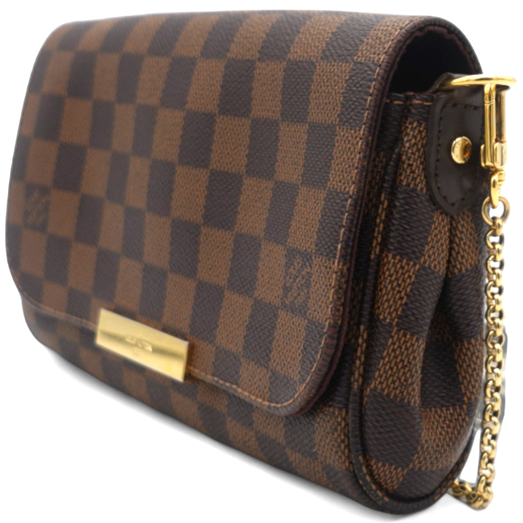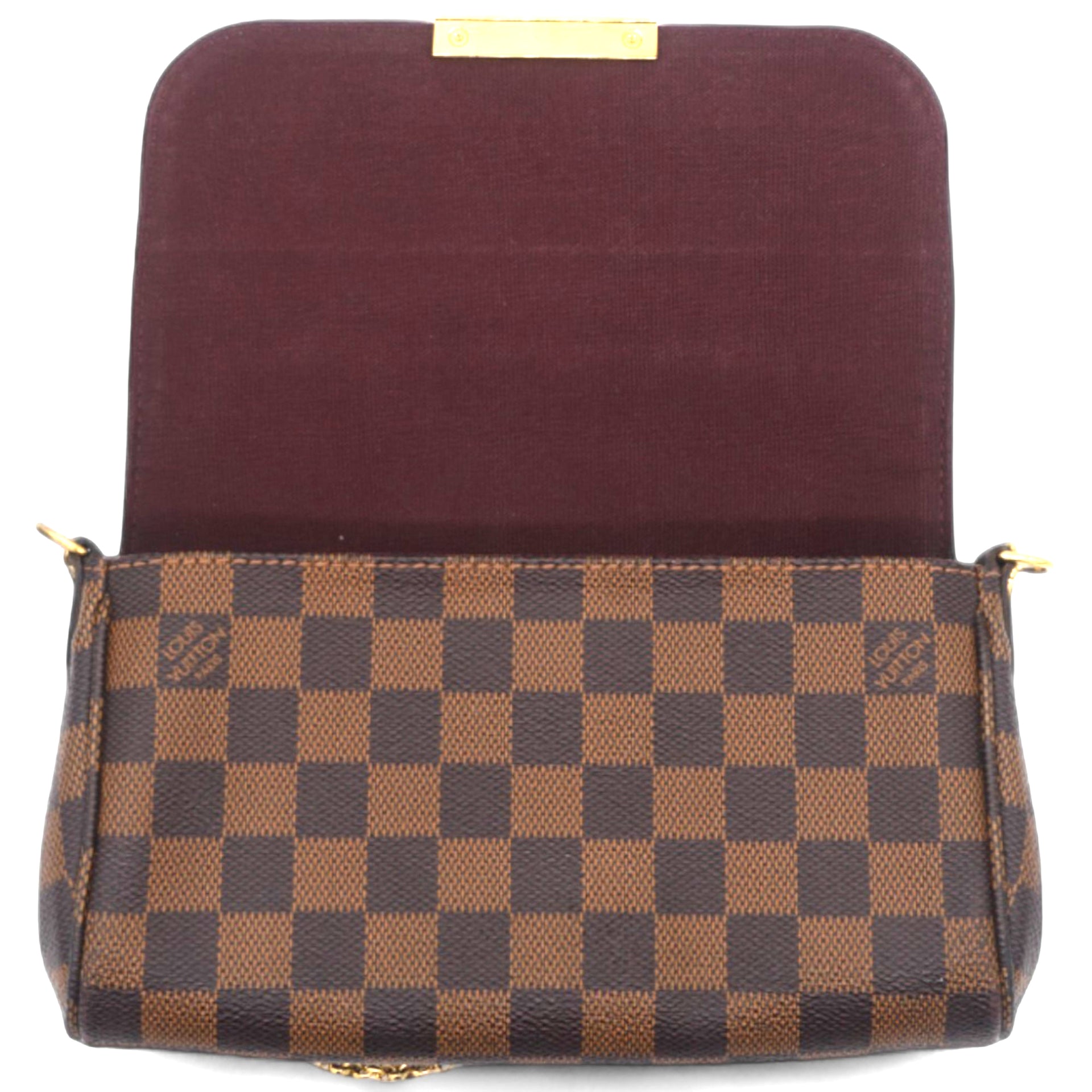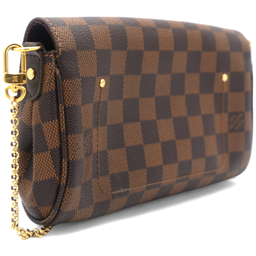 | This chic clutch or shoulder bag is crafted of Louis Vuitton Damier canvas. As a clutch it has a gold wrist chain and as a shoulder bag a leather strap and the front flap opens to a ruby red fabric interior. This has room for all of your day or evening necessities with the luxury and style only from Louis Vuitton |