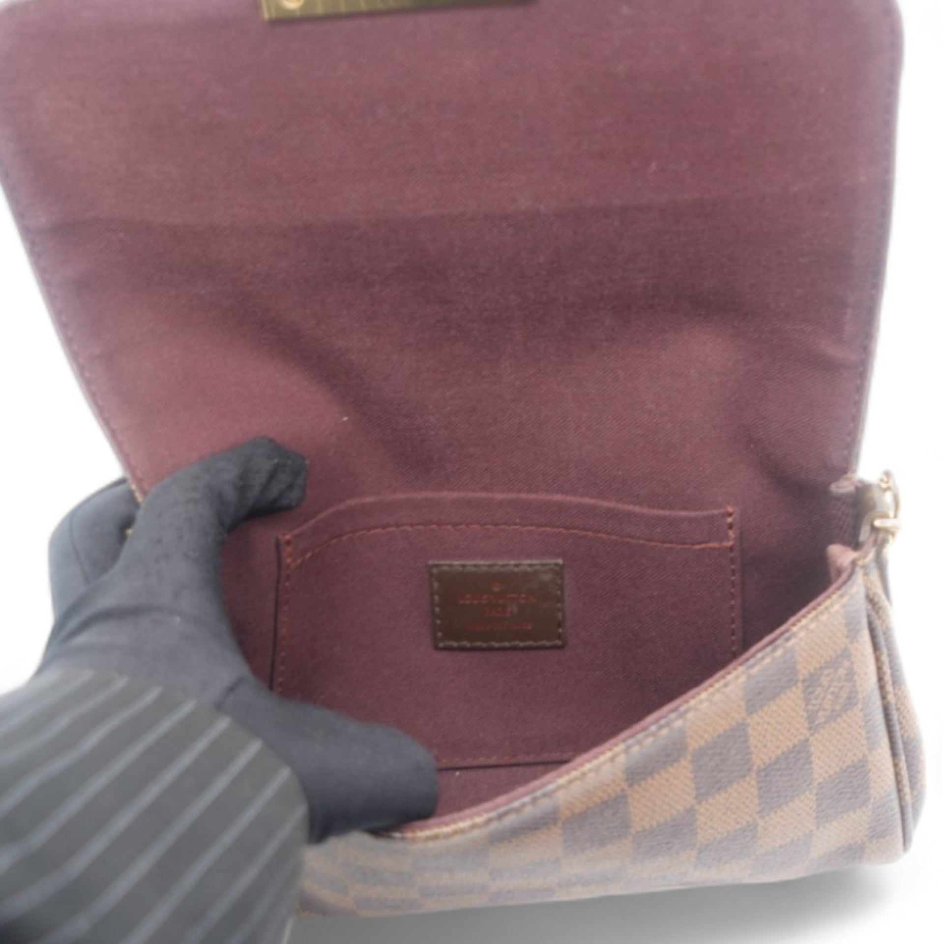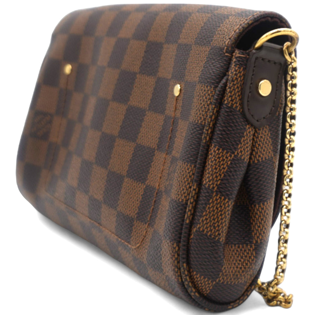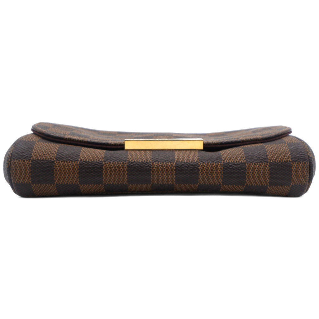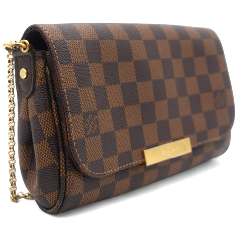 | This chic clutch or shoulder bag is crafted of Louis Vuitton Damier canvas. As a clutch it has a gold wrist chain and as a shoulder bag a leather strap and the front flap opens to a ruby red fabric interior. This has room for all of your day or evening necessities with the luxury and style only from Louis Vuitton |