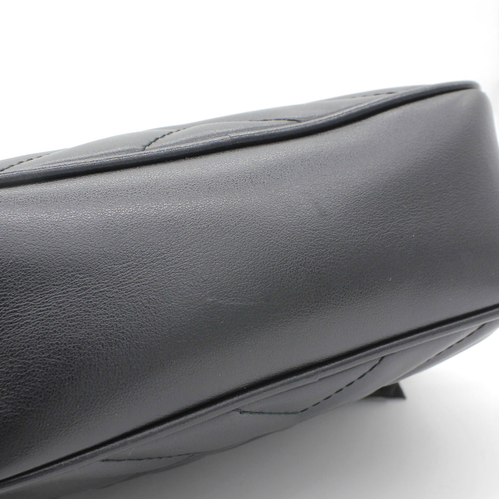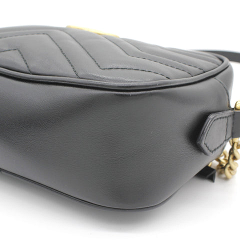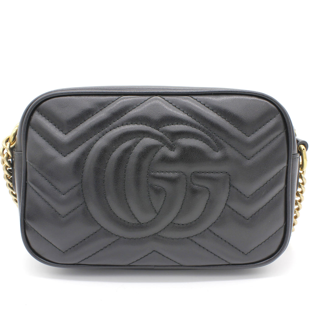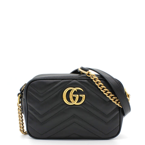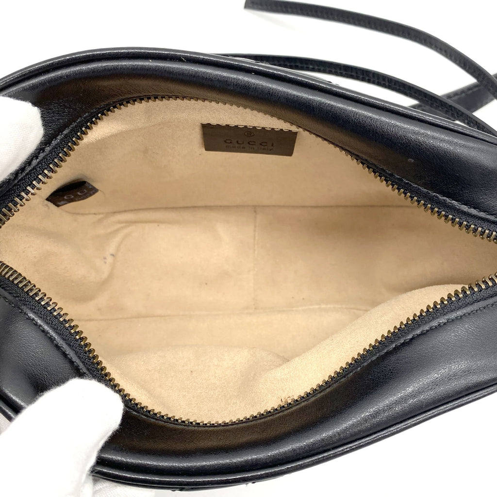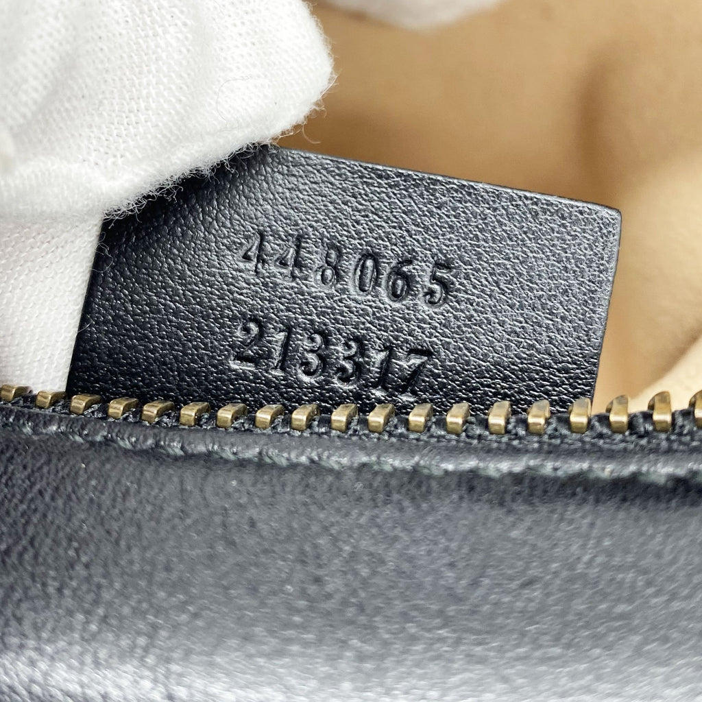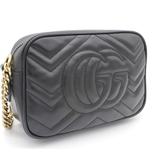 Exterior Material: Black matelassé leather exterior with double G on the front and chain shoulder strap. Interior Material: Beige Microfibre lining with one main compartment and one slip pocket. Accessories: Dust Bag; Serial Number: 448065.213317 Bought Year: 2019 |