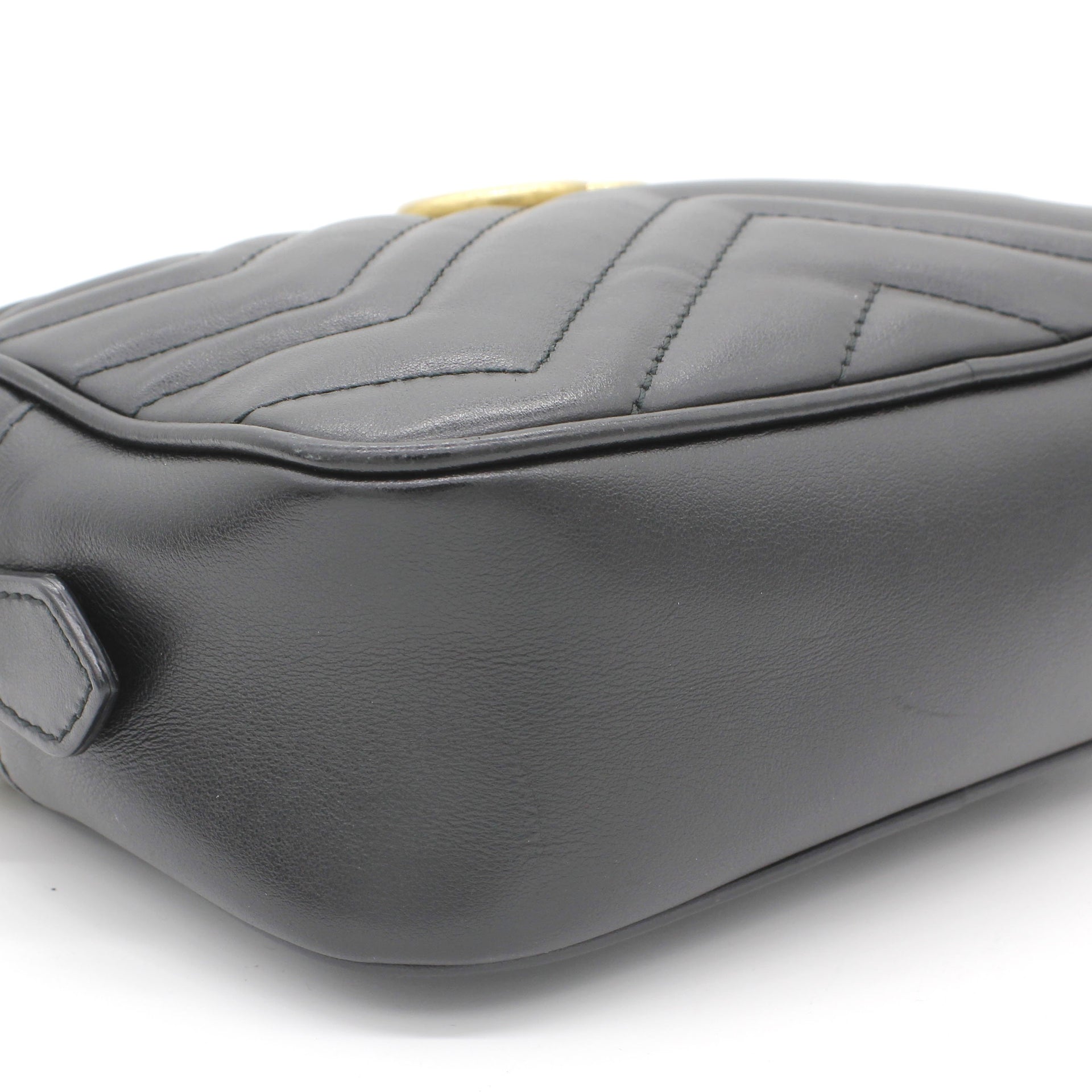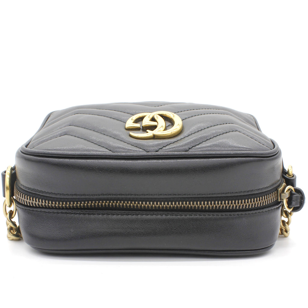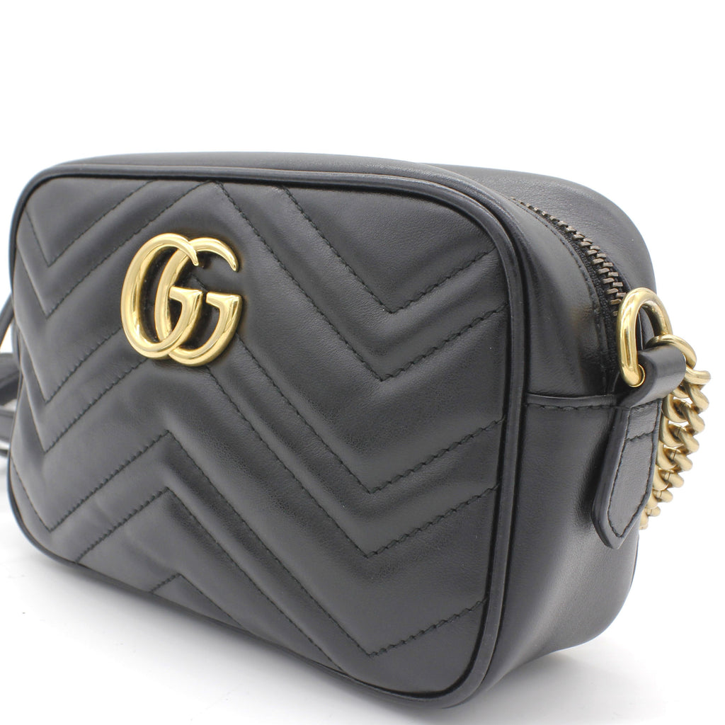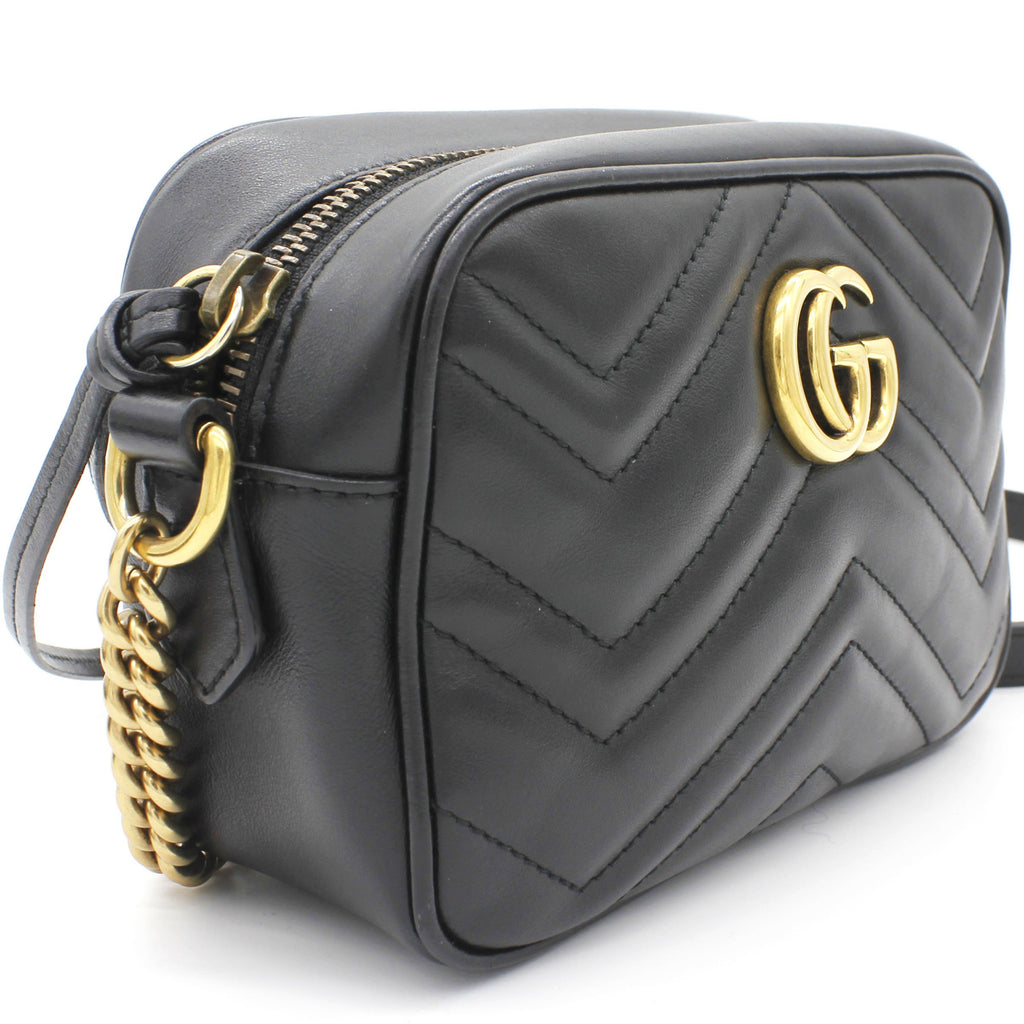 Exterior Material: Black matelassé leather exterior with double G on the front and chain shoulder strap. Interior Material: Beige Microfibre lining with one main compartment and one slip pocket. Accessories: Dust Bag; Serial Number: 448065.213317 Bought Year: 2019 |