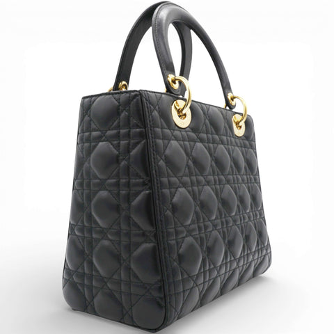 Lambskin Cannage Lady Dior Black Medium Tote
